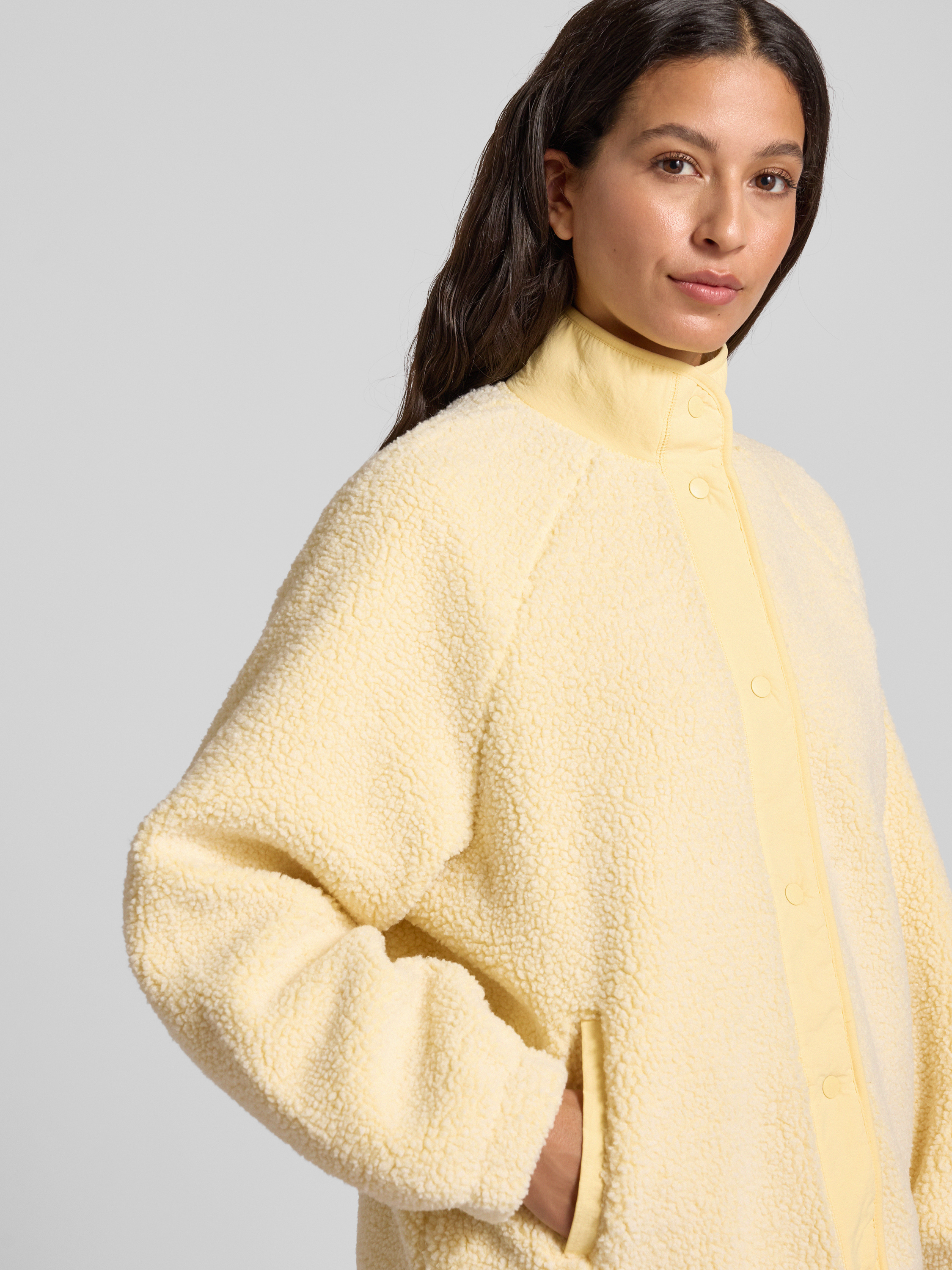 Jake*s CasualFleecejacke mit Stehkragen und Eingrifftaschen in hellgelb