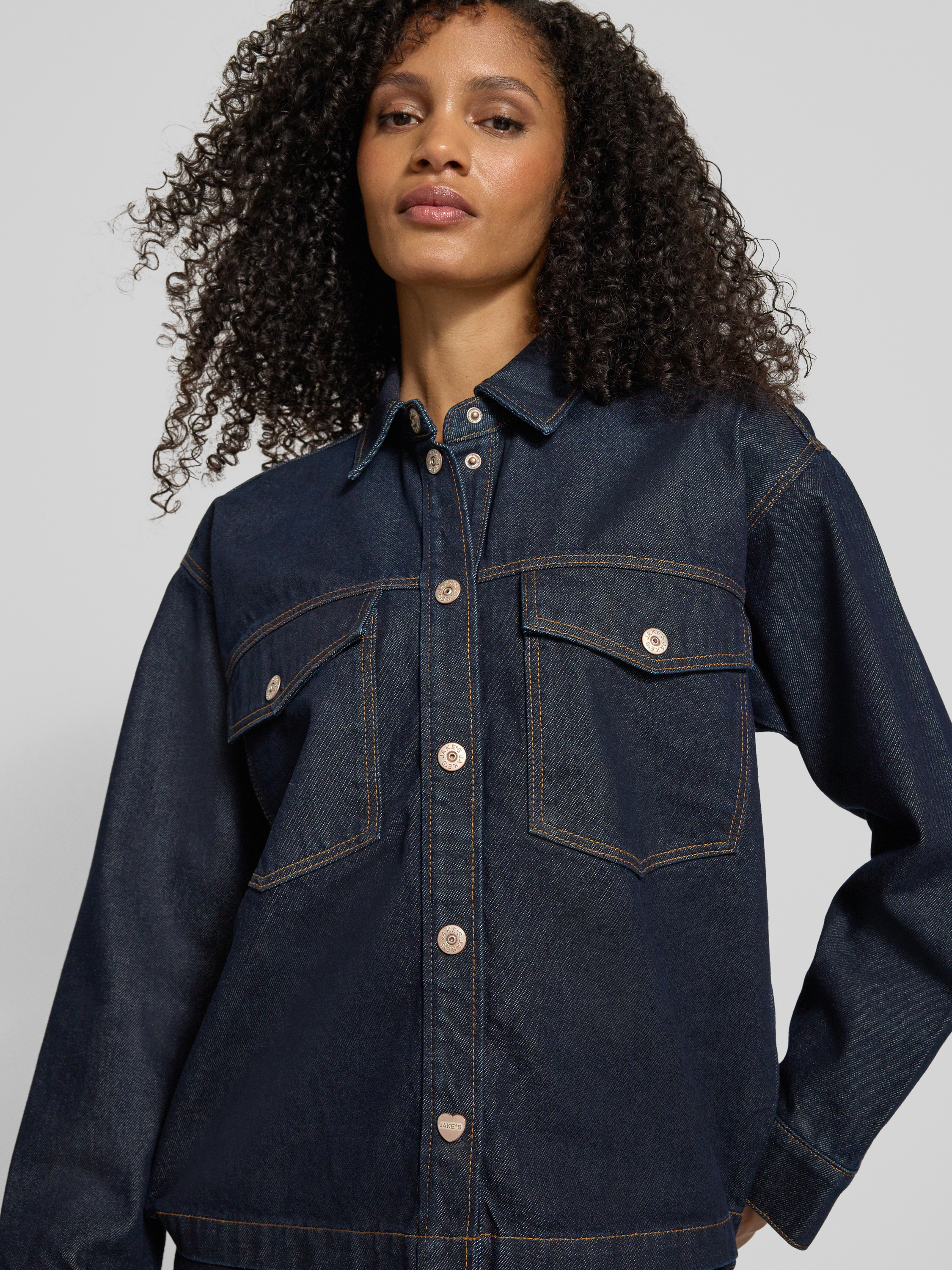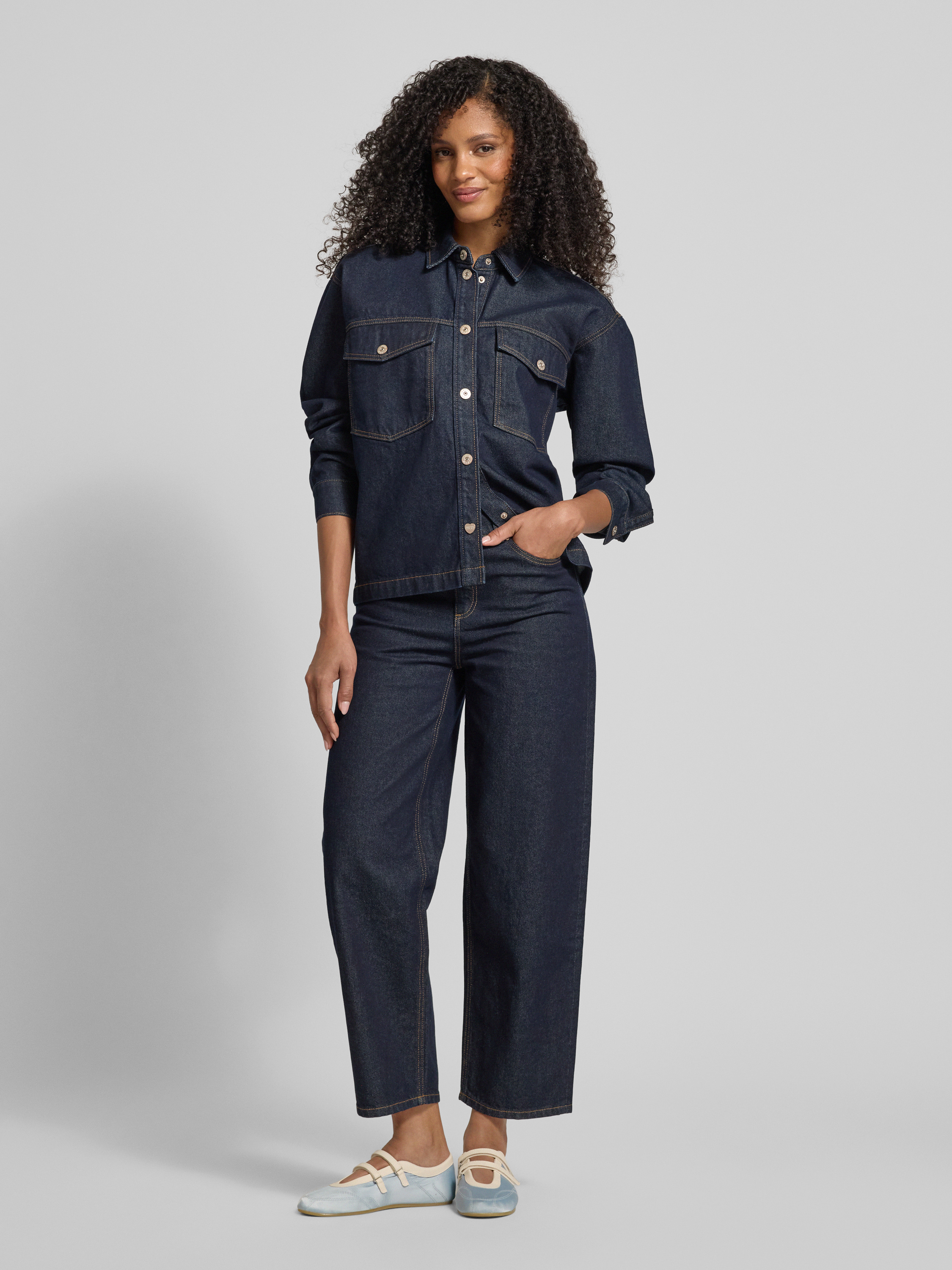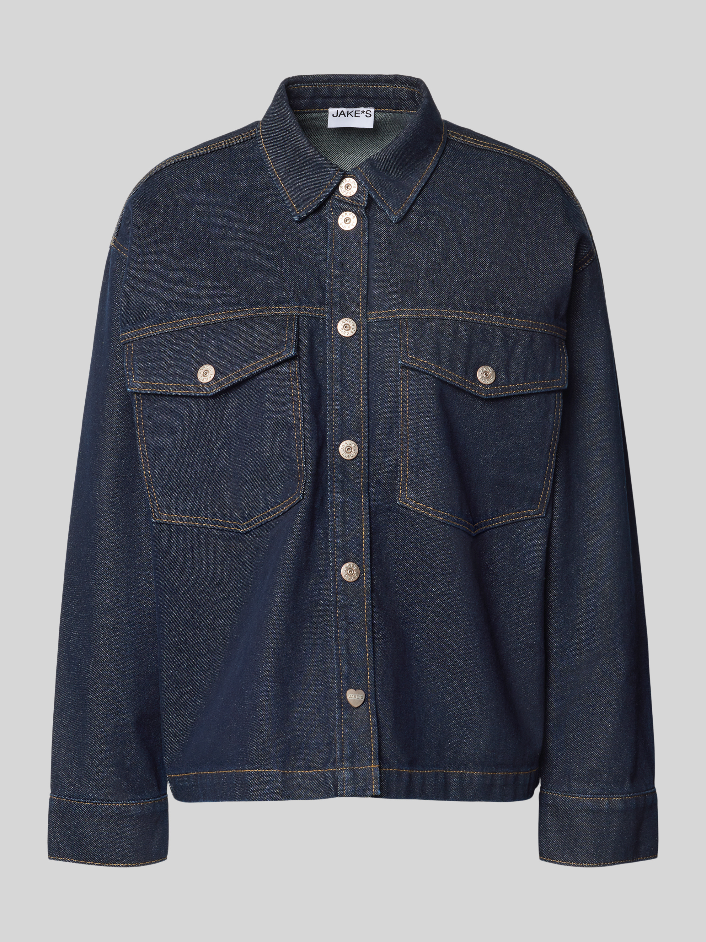 Die Damen Hemdbluse von Jake*s Casual präsentiert sich in einer lässigen Denim-Optik, die sich ideal für entspannte Alltagskombinationen eignet. Der lockere Schnitt bietet angenehme Bewegungsfreiheit, während der klassische Hemdblusenkragen und die praktischen Brusttaschen für eine zeitlose Note sorgen.