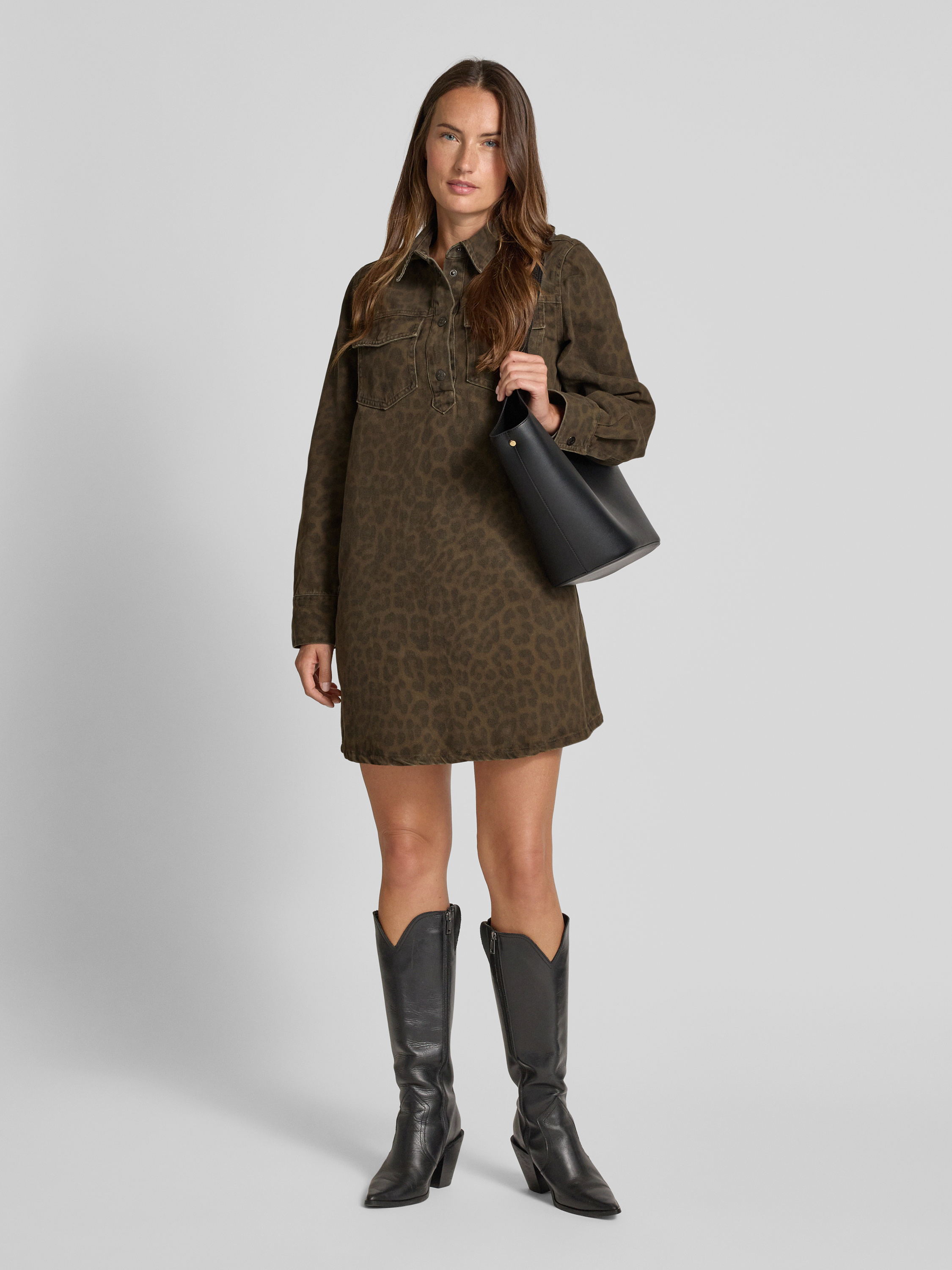 Das Hemdblusenkleid von Jake*s Casual setzt mit seiner Leo-Optik einen lebendigen Akzent im Alltag und bleibt dabei angenehm zurückhaltend. Reine Baumwolle sorgt für ein natürliches Tragegefühl, während der gerade Schnitt und praktische Brusttaschen für Bewegungsfreiheit und Stauraum stehen. Mit dem Umlegekragen und der Minikleid-Länge eignet sich dieses Modell besonders gut für unkomplizierte Casual-Styles.