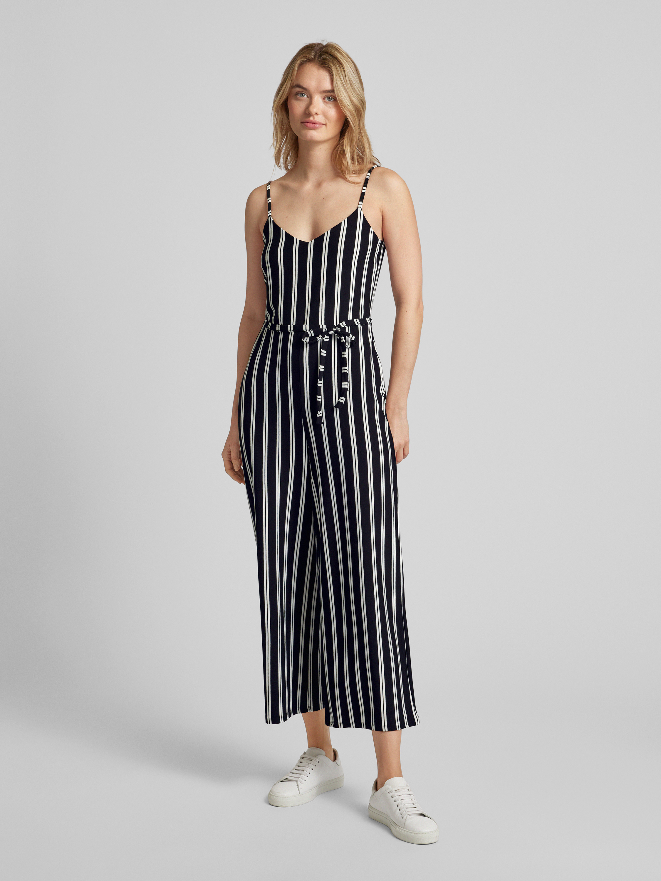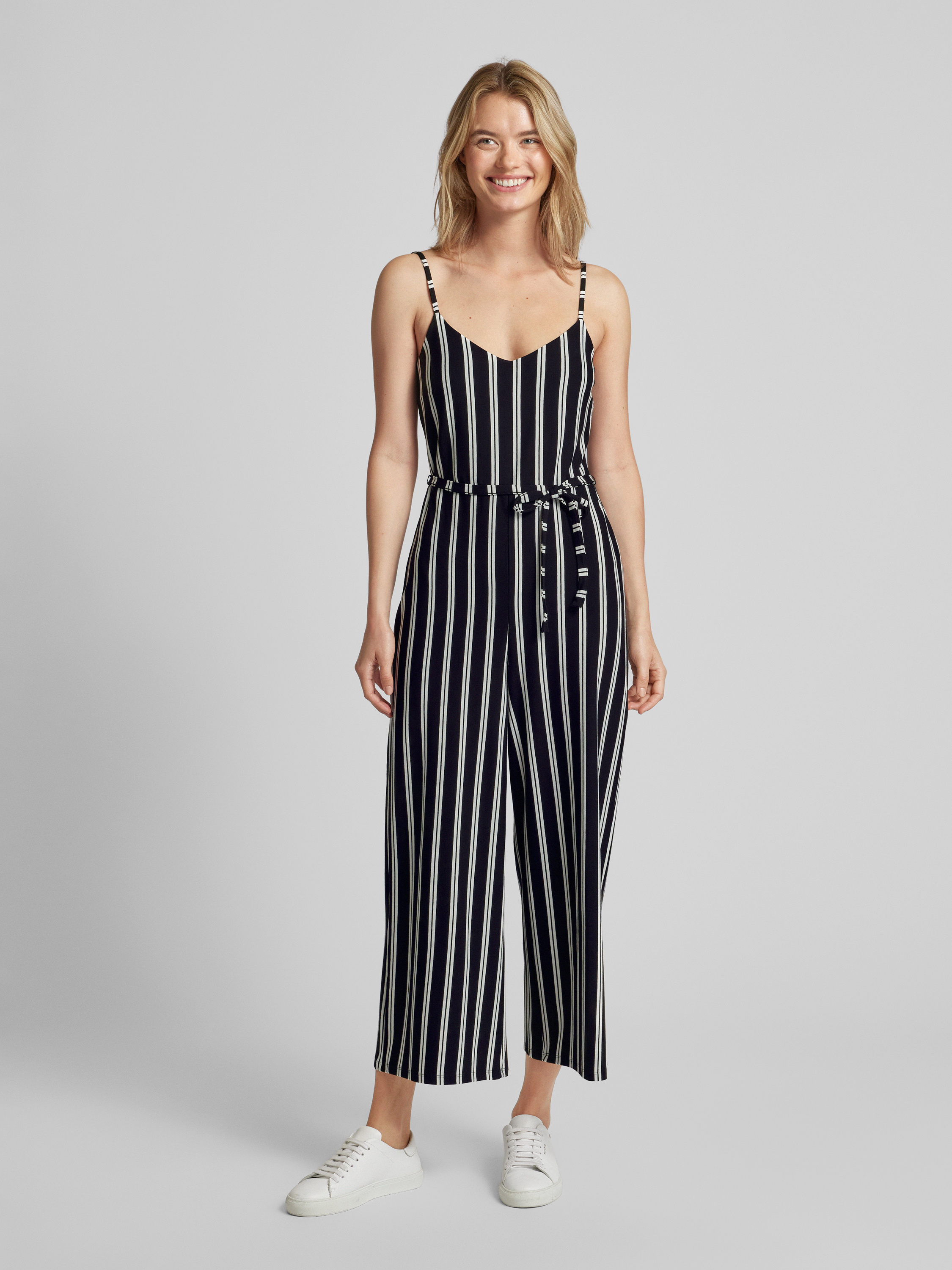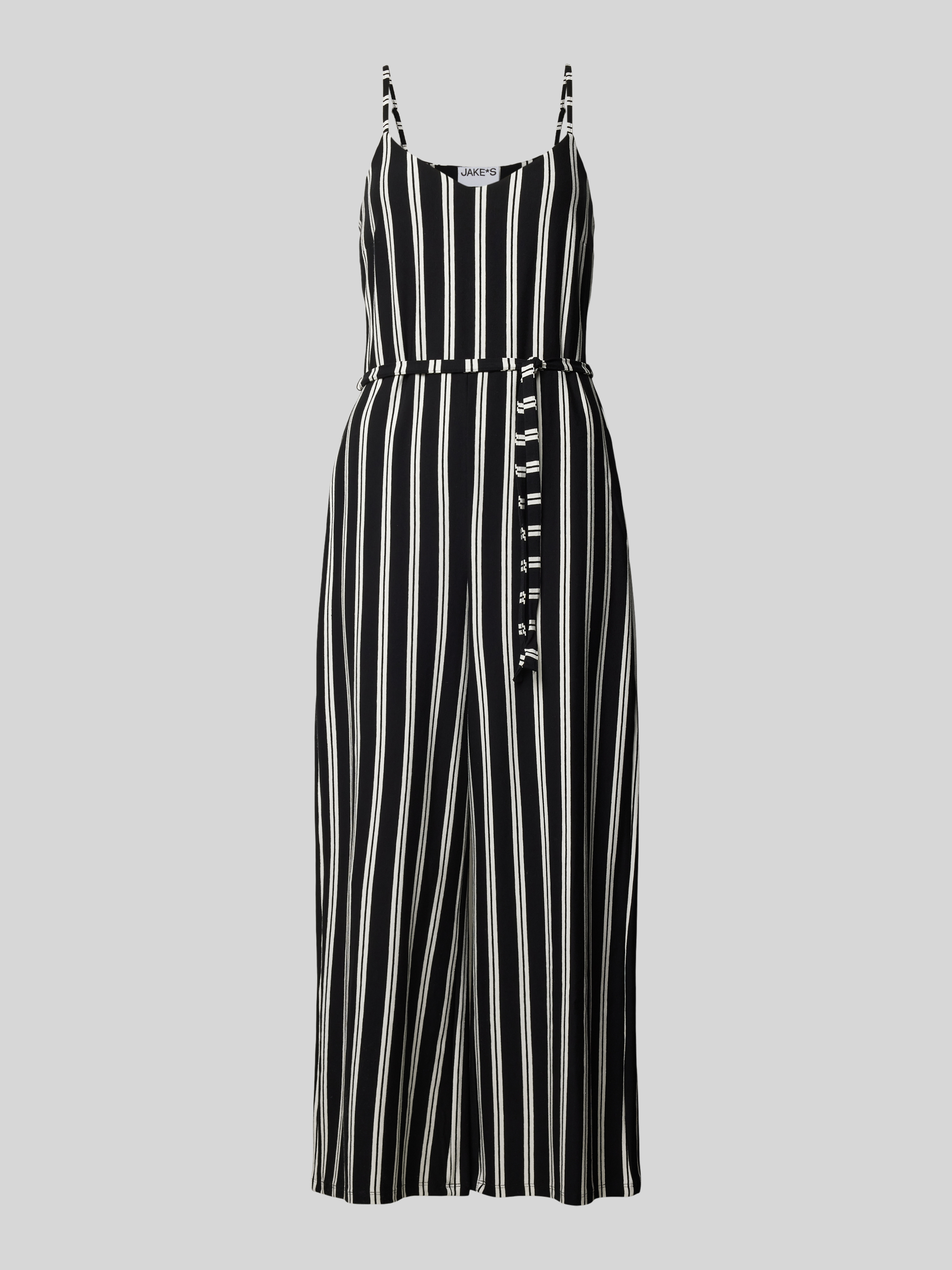 Der Jumpsuit von Jake*s Casual kombiniert ein charmantes Streifenmuster mit einem luftigen Viskose-Elasthan-Mix, der für einen angenehmen Tragekomfort sorgt. Durch den Regular Fit und die Spaghettiträger erhält das Modell eine lässige Passform. Ein Bindegürtel ermöglicht eine individuelle Anpassung der Silhouette.
