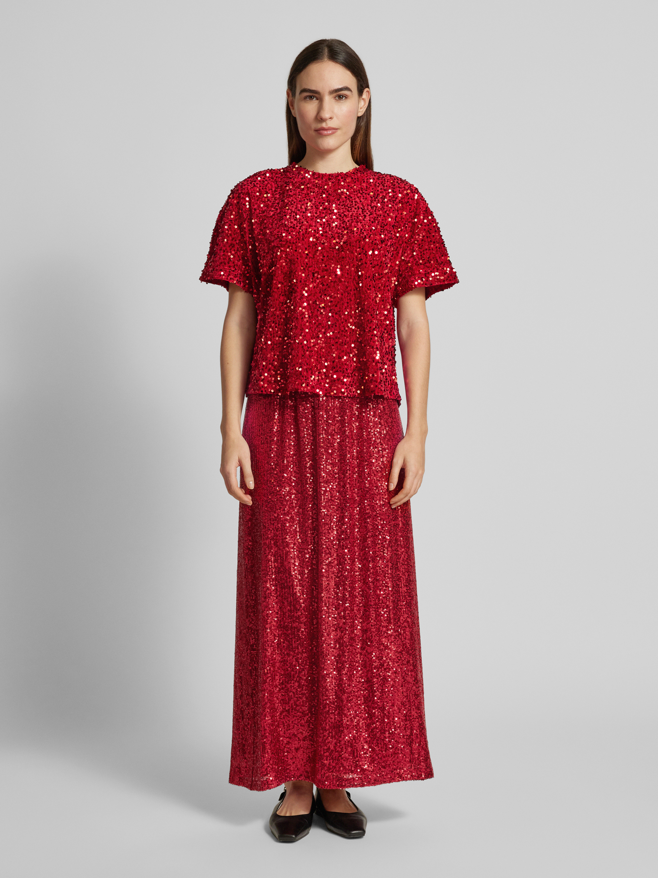 Jake*s CasualMaxirock mit Pailletten und elastischem Bund in kirsche