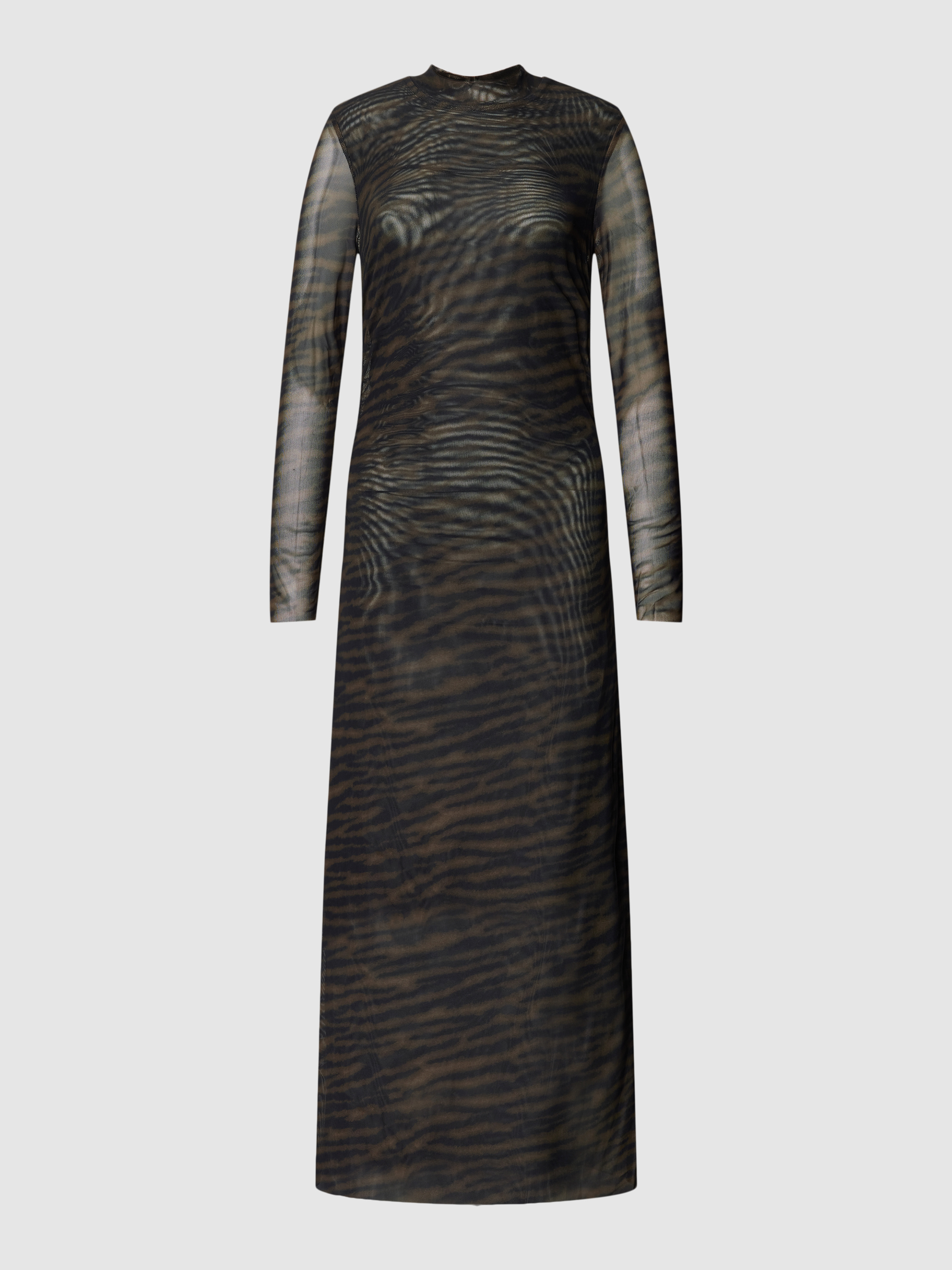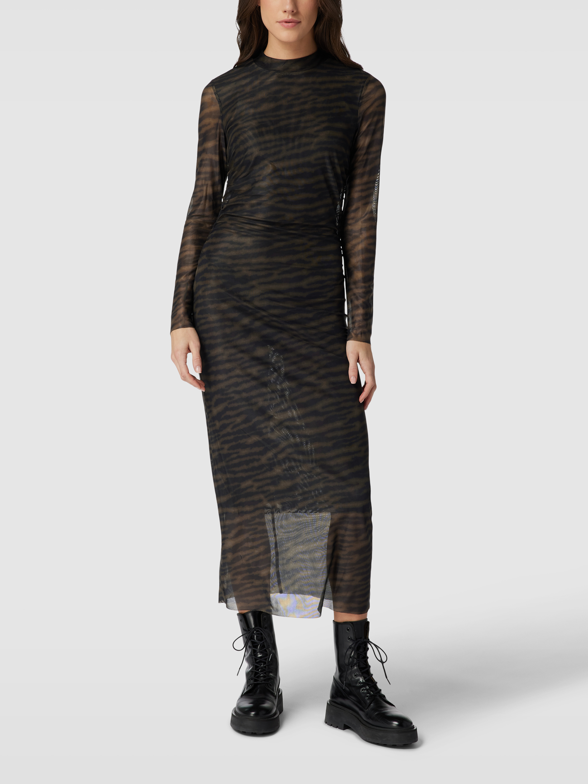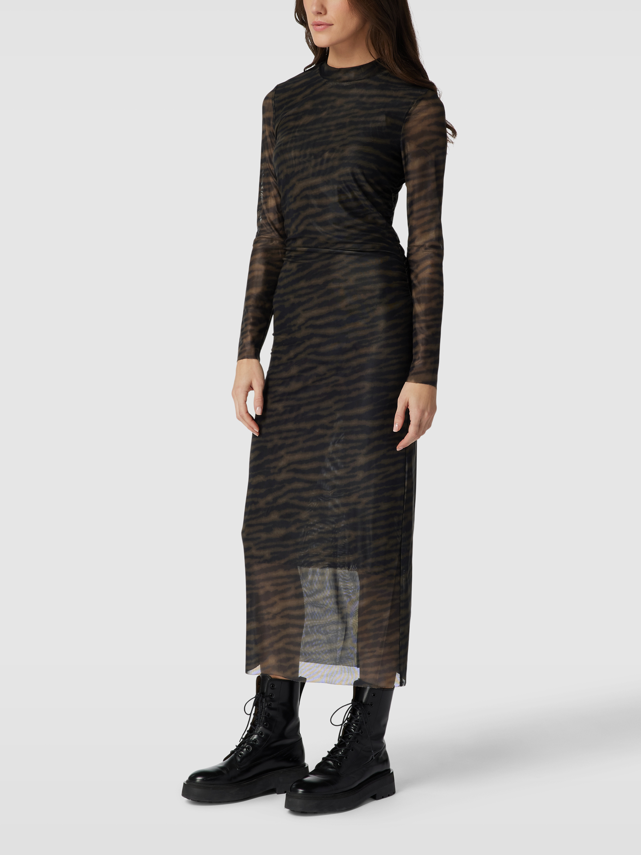 Das Midikleid von Jake*s Casual legt sich durch seinen körpernahen Schnitt angenehm an und bringt durch das lebendige Allover-Muster Abwechslung in den Alltag. Dezente Raffungen und ein Stehkragen ergänzen den modernen Look, während ein blickdichtes Unterkleid für ein angenehmes Tragegefühl sorgt.