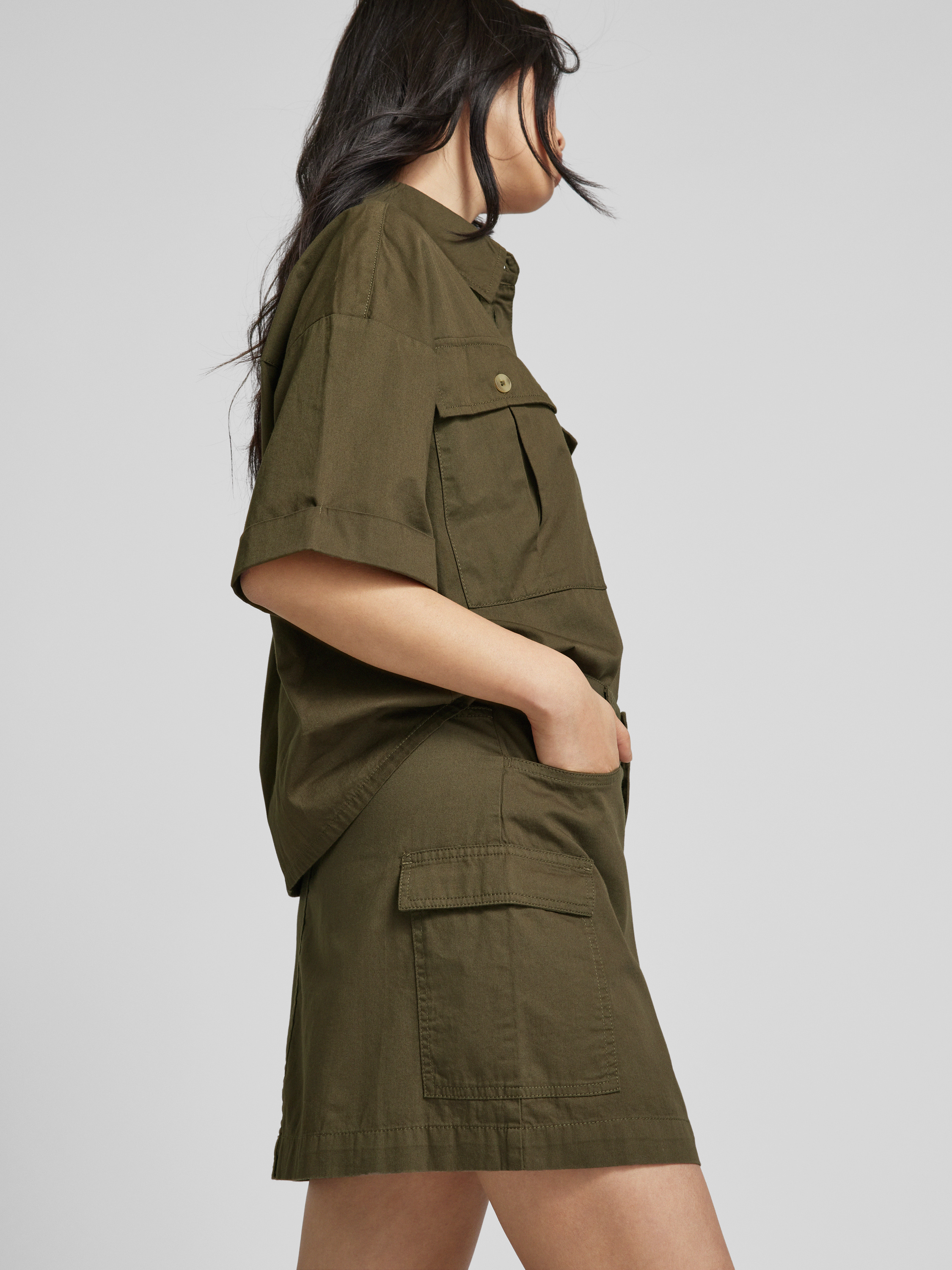 Der Minirock von Jake's Casual beeindruckt durch seinen A-Linien-Schnitt, der eine schmeichelhafte Silhouette schafft und viel Bewegungsfreiheit lässt. Hergestellt aus reiner Baumwolle, bietet er ein angenehmes Tragegefühl. Praktische Pattentaschen und Eingrifftaschen unterstreichen den lässigen Stil.