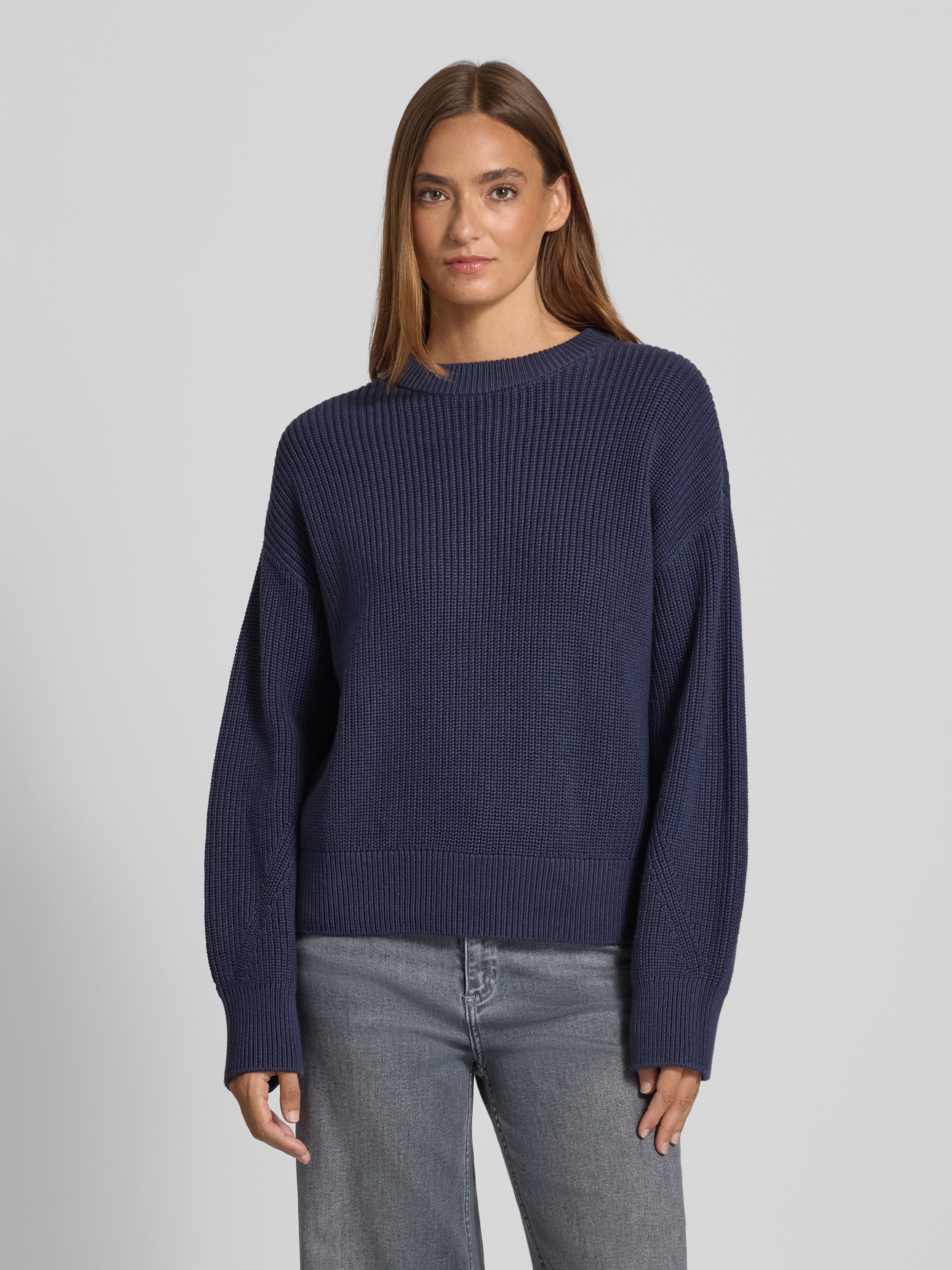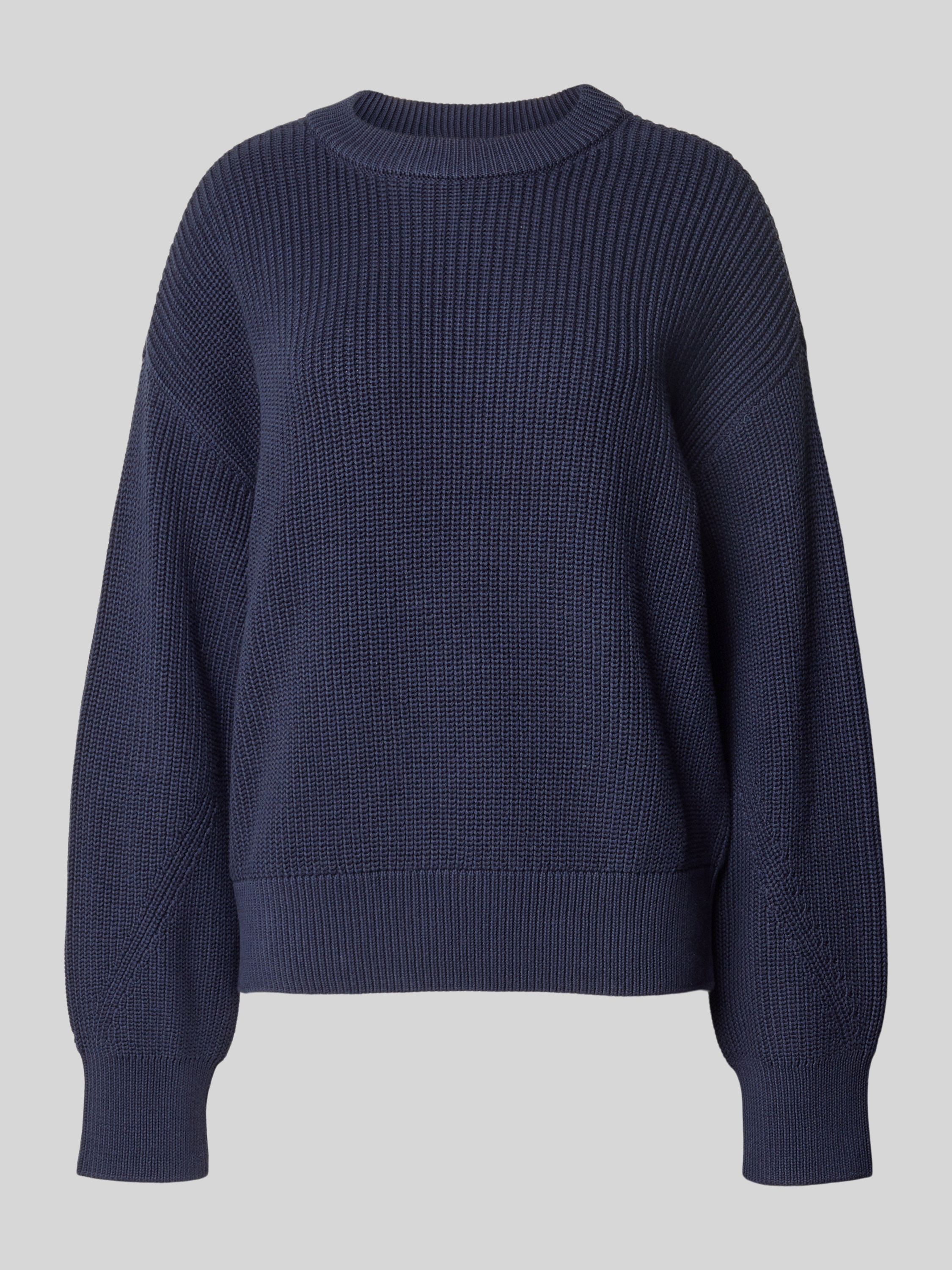 Jake*s CasualOversized Strickpullover mit gerippten Abschlüssen in dunkelblau