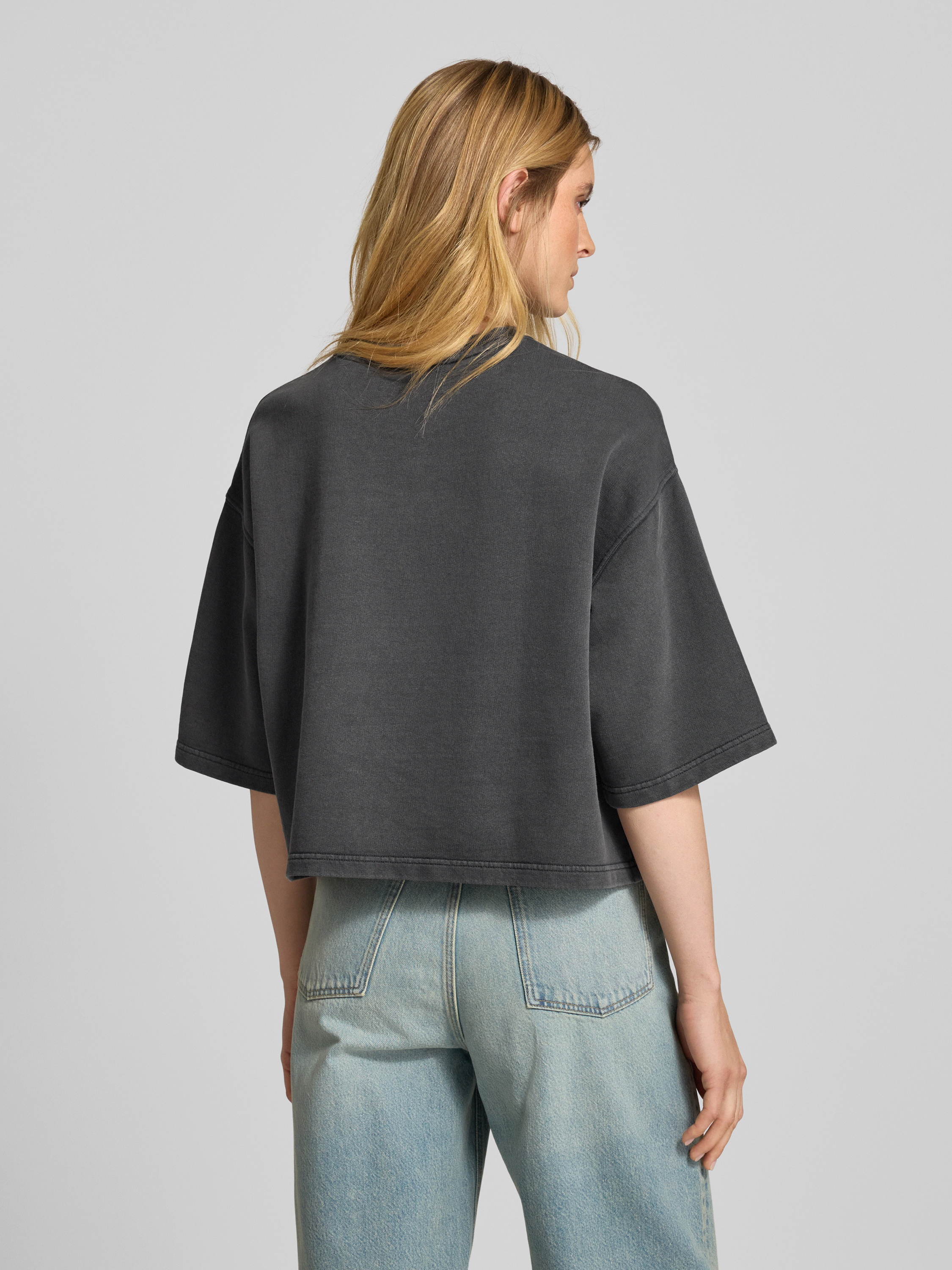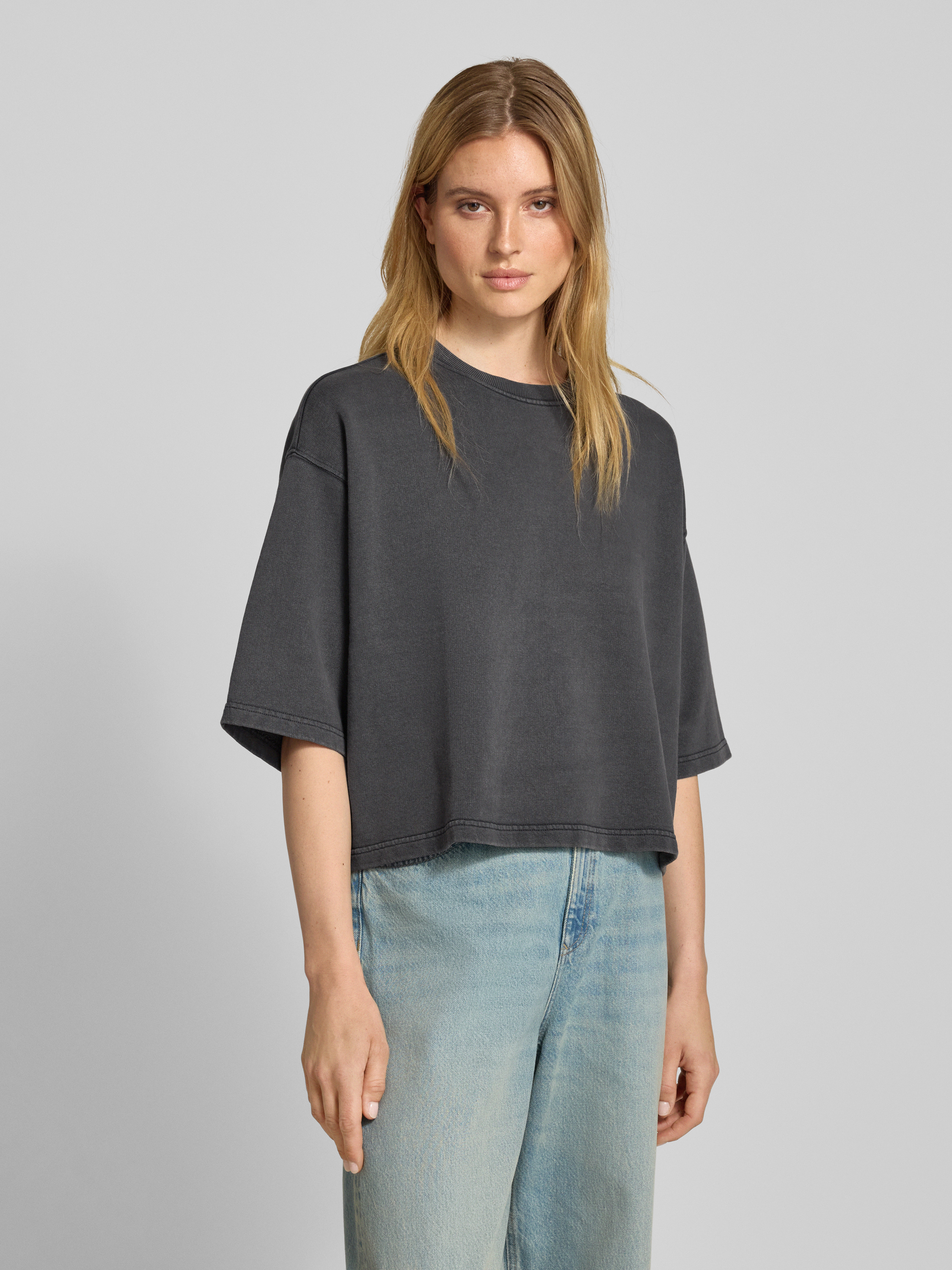 Jake*s CasualOversized Sweatshirt mit gerippten Abschlüssen in dunkelgrau