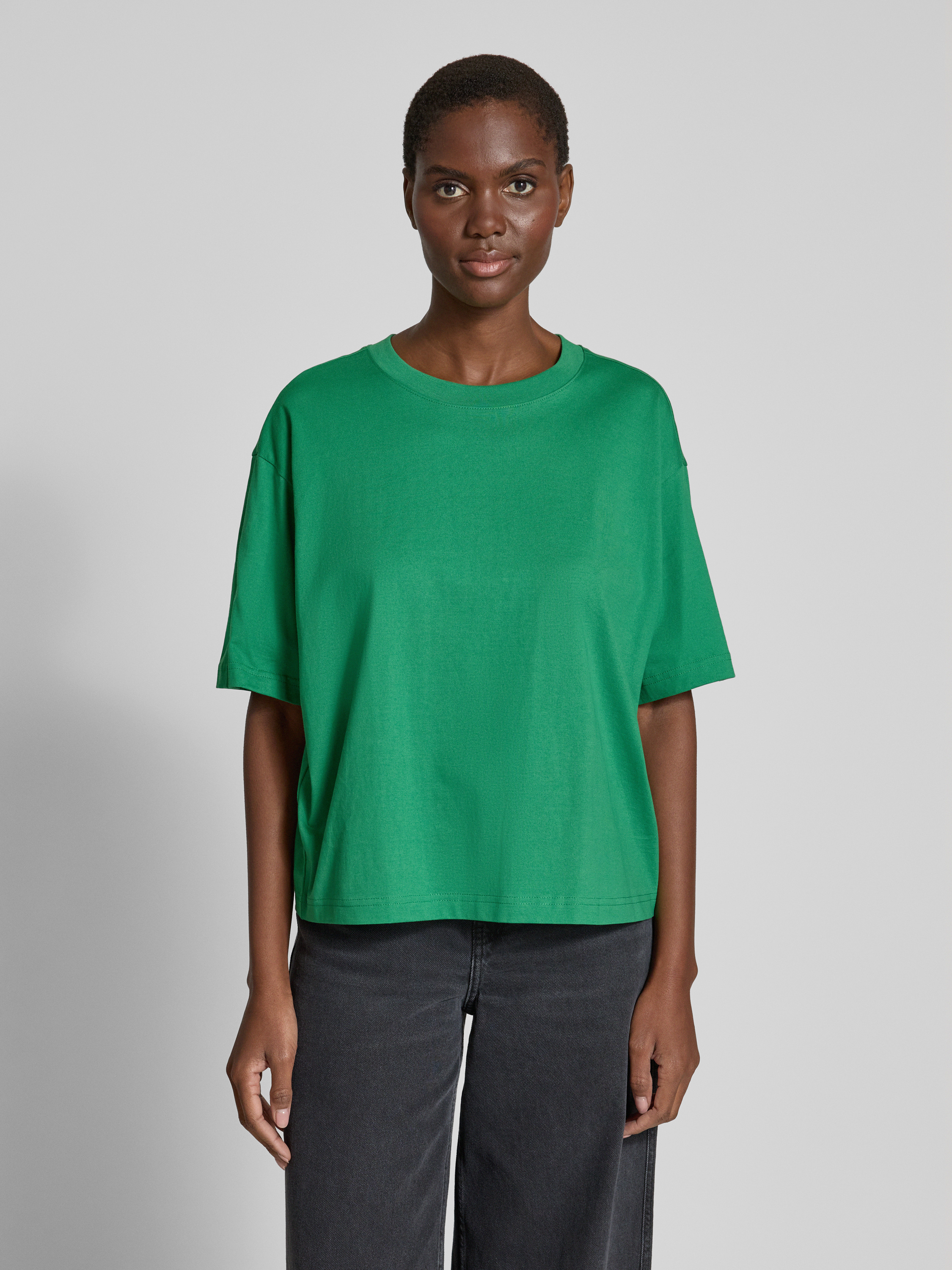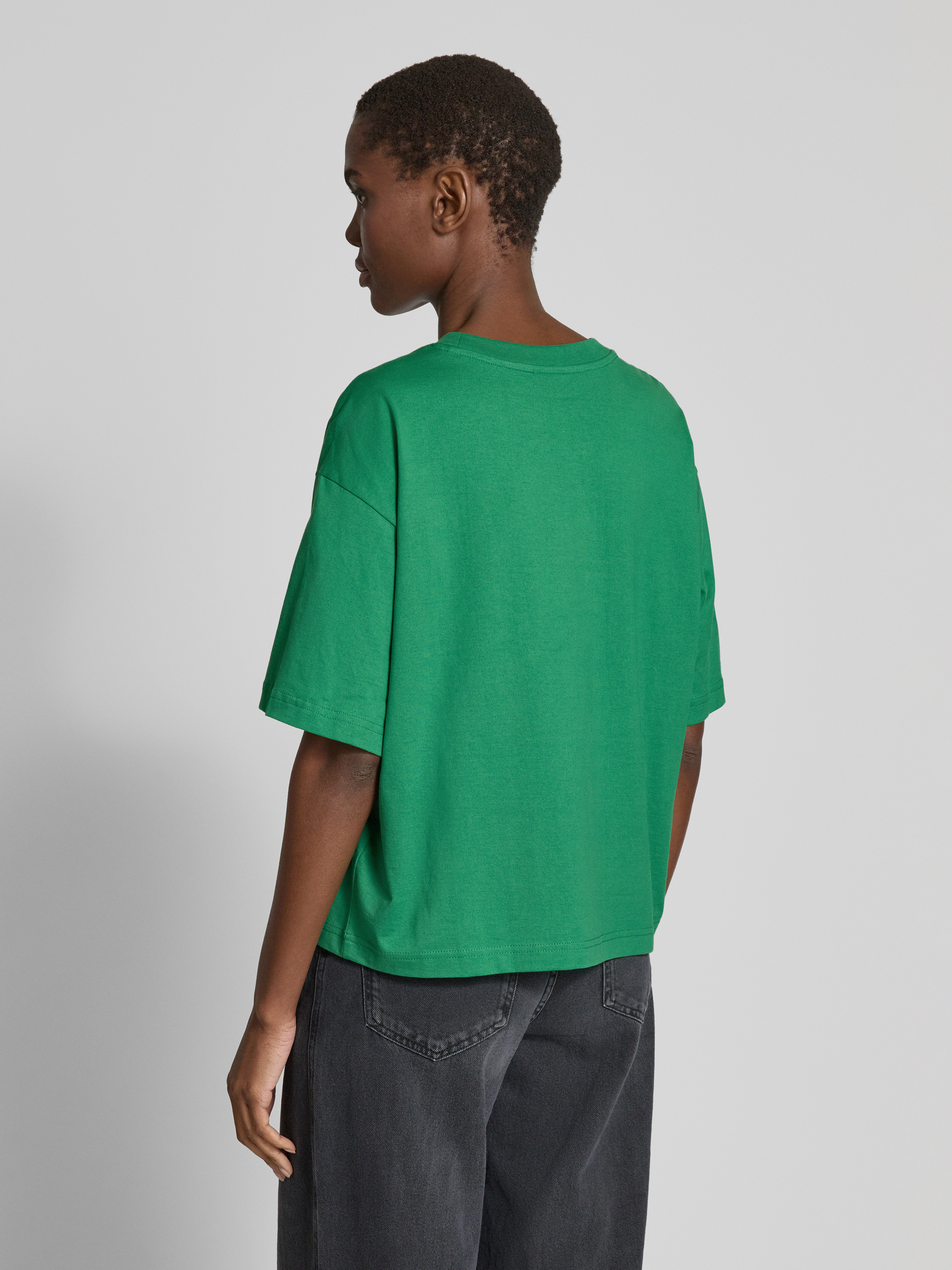 Jake*s CasualOversized T-Shirt mit geripptem Rundhalsausschnitt in grass