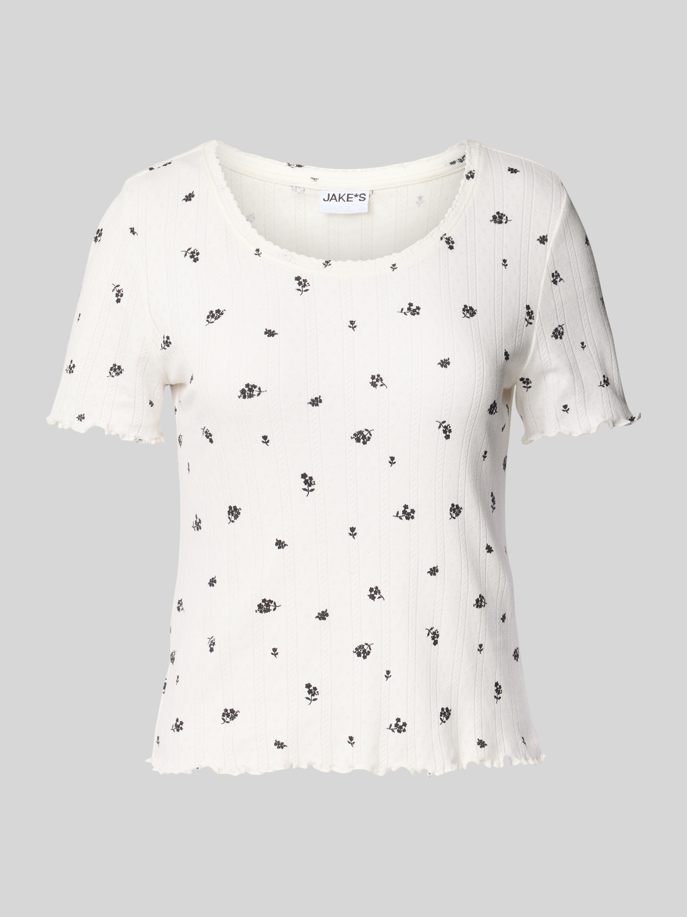 Jake*s CasualPyjama-Oberteil mit Rundhalsausschnitt und Wellensaum in offwhite