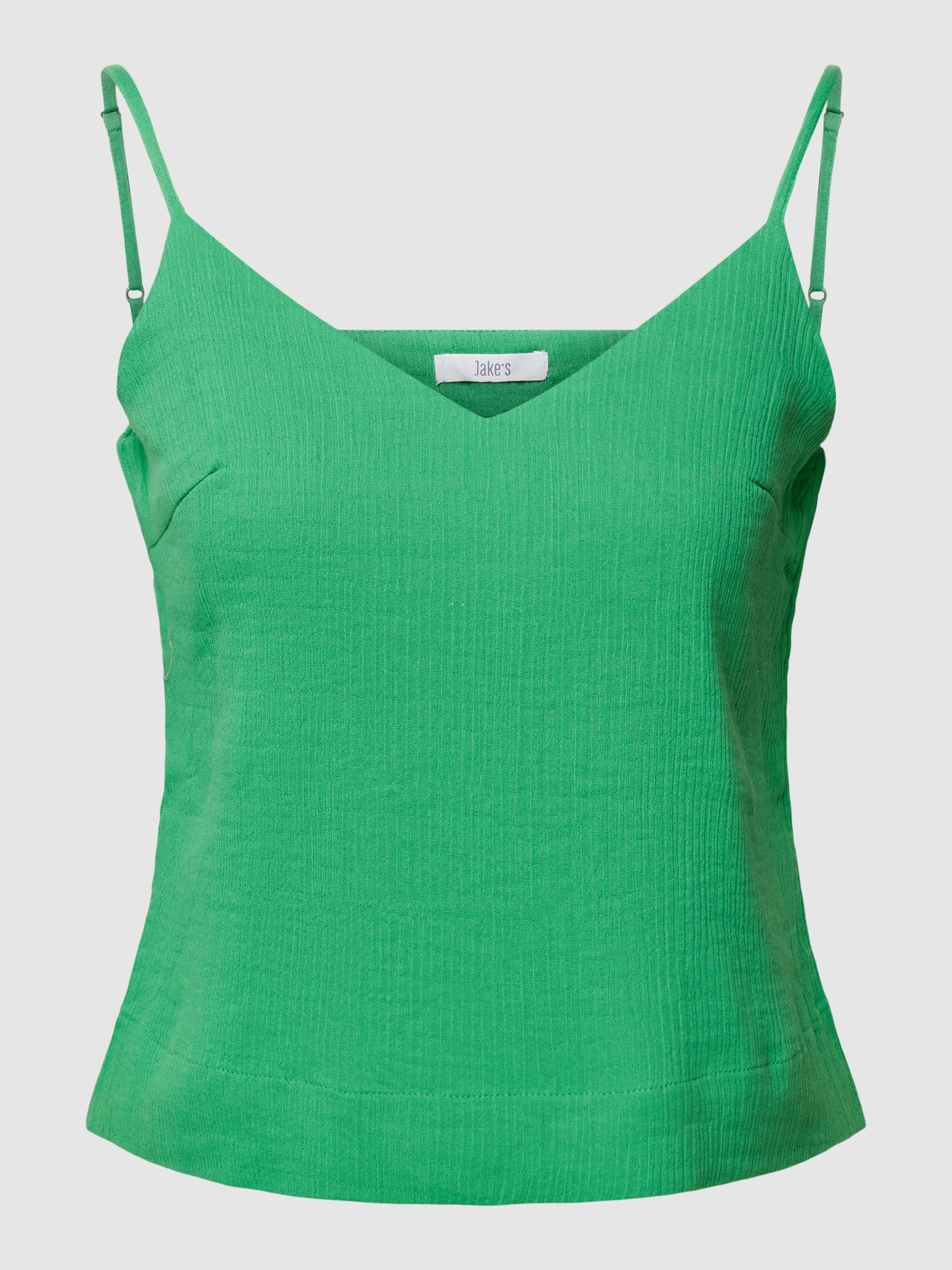 Das Damen Pyjama-Top von Jake*s Casual vereint einen lockeren Schnitt mit einem dezenten Strukturmuster. Durch die feinen Spaghettiträger und den V-Ausschnitt erhält es eine leichte und luftige Passform. Das unifarbene Design sorgt für einen entspannten Look, der vielseitig kombinierbar ist.