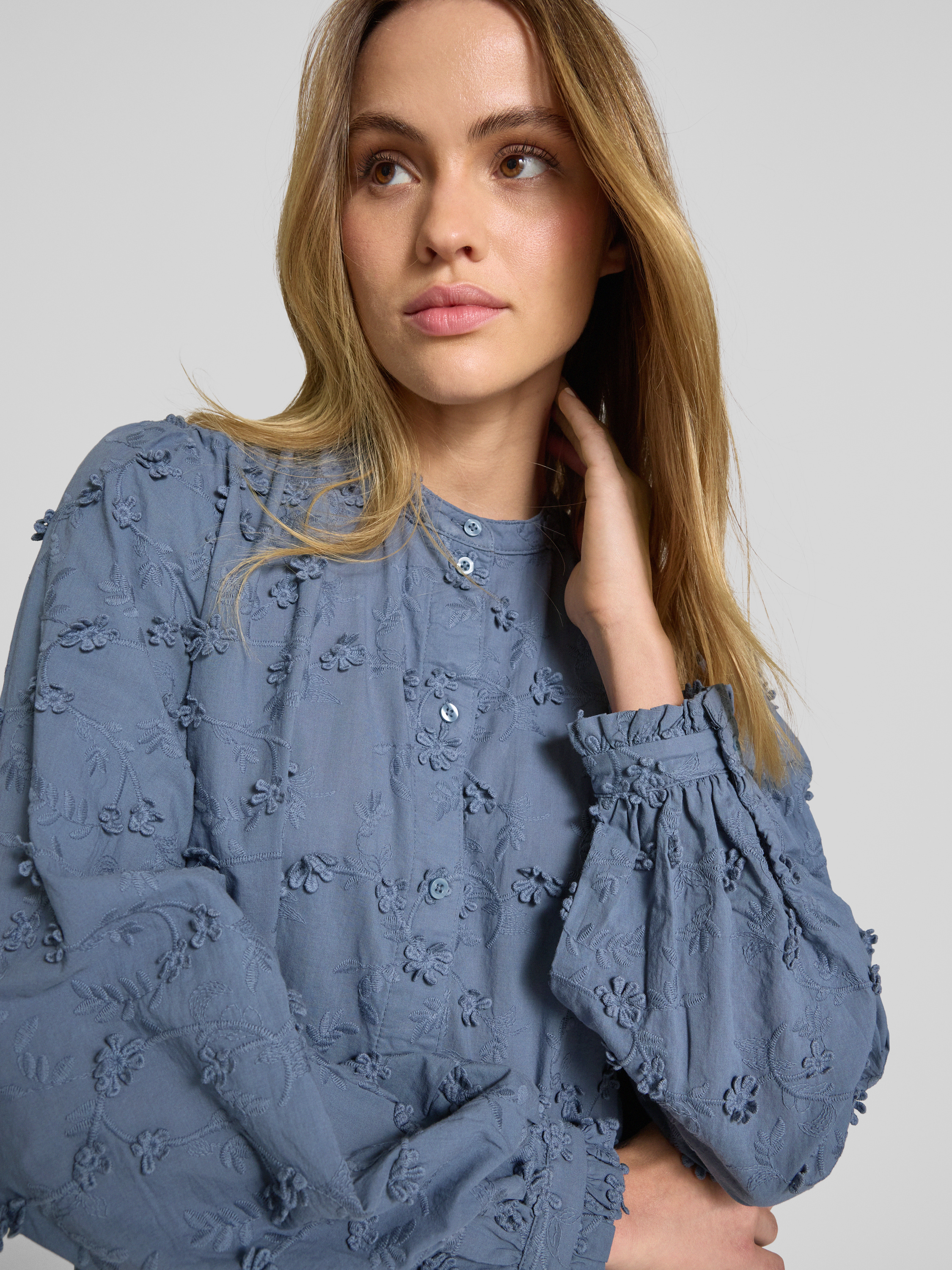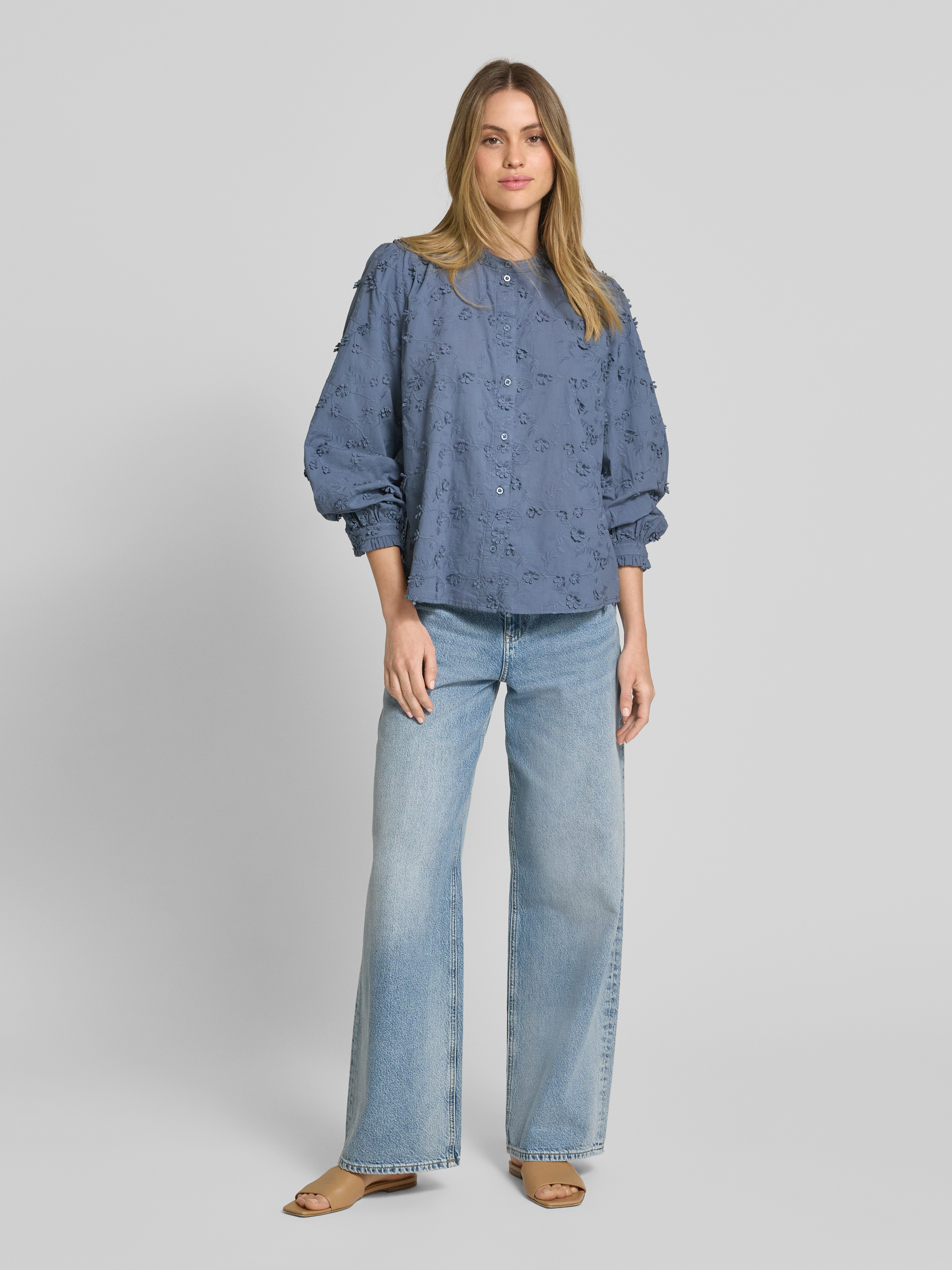 Die Regular Fit Bluse von Jake*s Casual kombiniert eine entspannte Passform mit einem modernen Maokragen, was sie vielseitig einsetzbar macht. Aus reiner Baumwolle gefertigt, sorgt sie für angenehmen Tragekomfort. Die floralen Applikationen und die eleganten Ballonärmel verleihen jedem Outfit eine besondere Note.