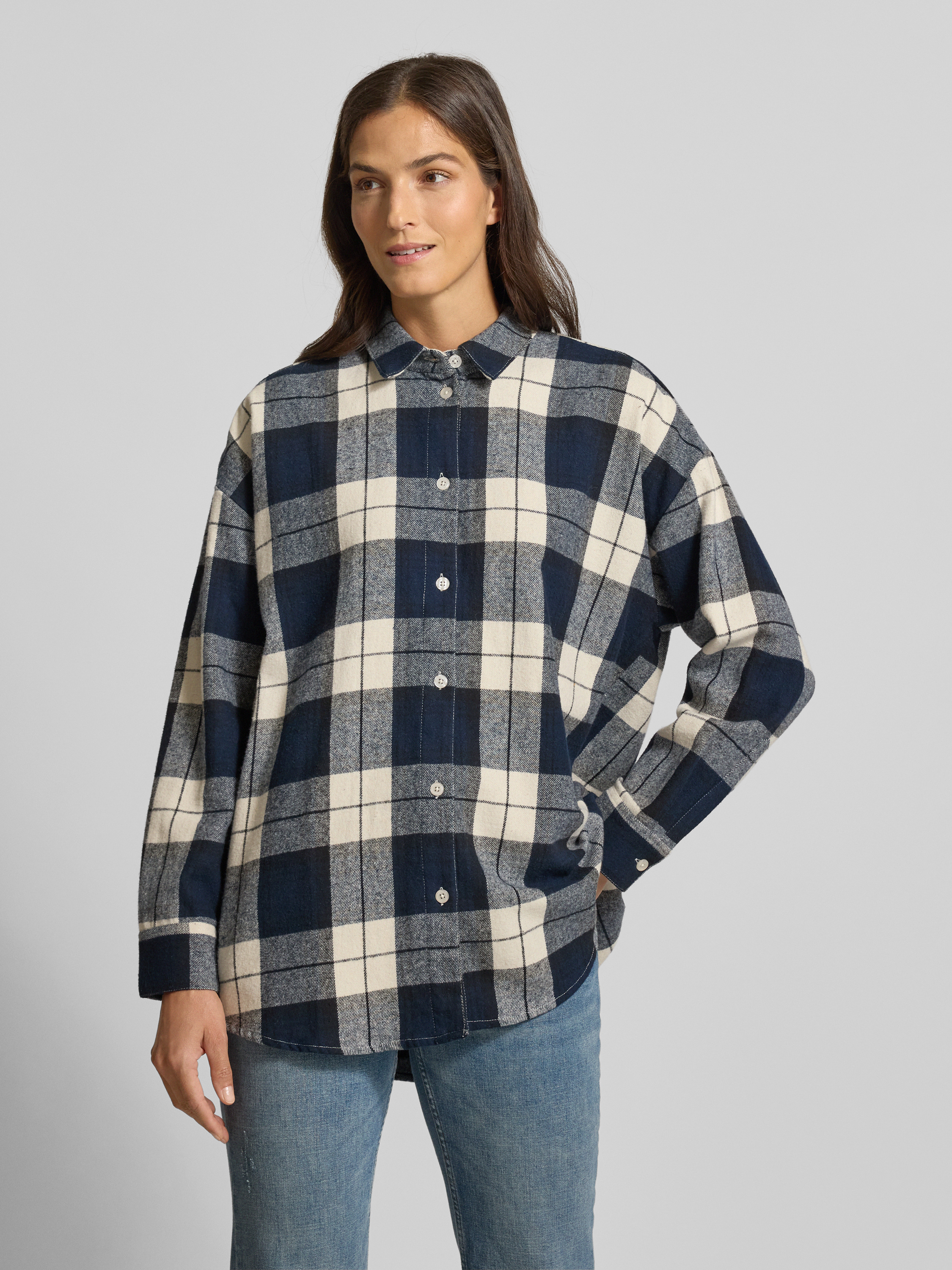 Die Damen Hemdbluse von Jake*s Casual zeigt sich im entspannten Schnitt und legt Wert auf angenehmen Tragekomfort. Reine Baumwolle sorgt für ein natürliches Gefühl auf der Haut, während Hemdblusenkragen und Manschetten dem Look eine klassische Note verleihen. So lässt sich der Alltag vielseitig gestalten.