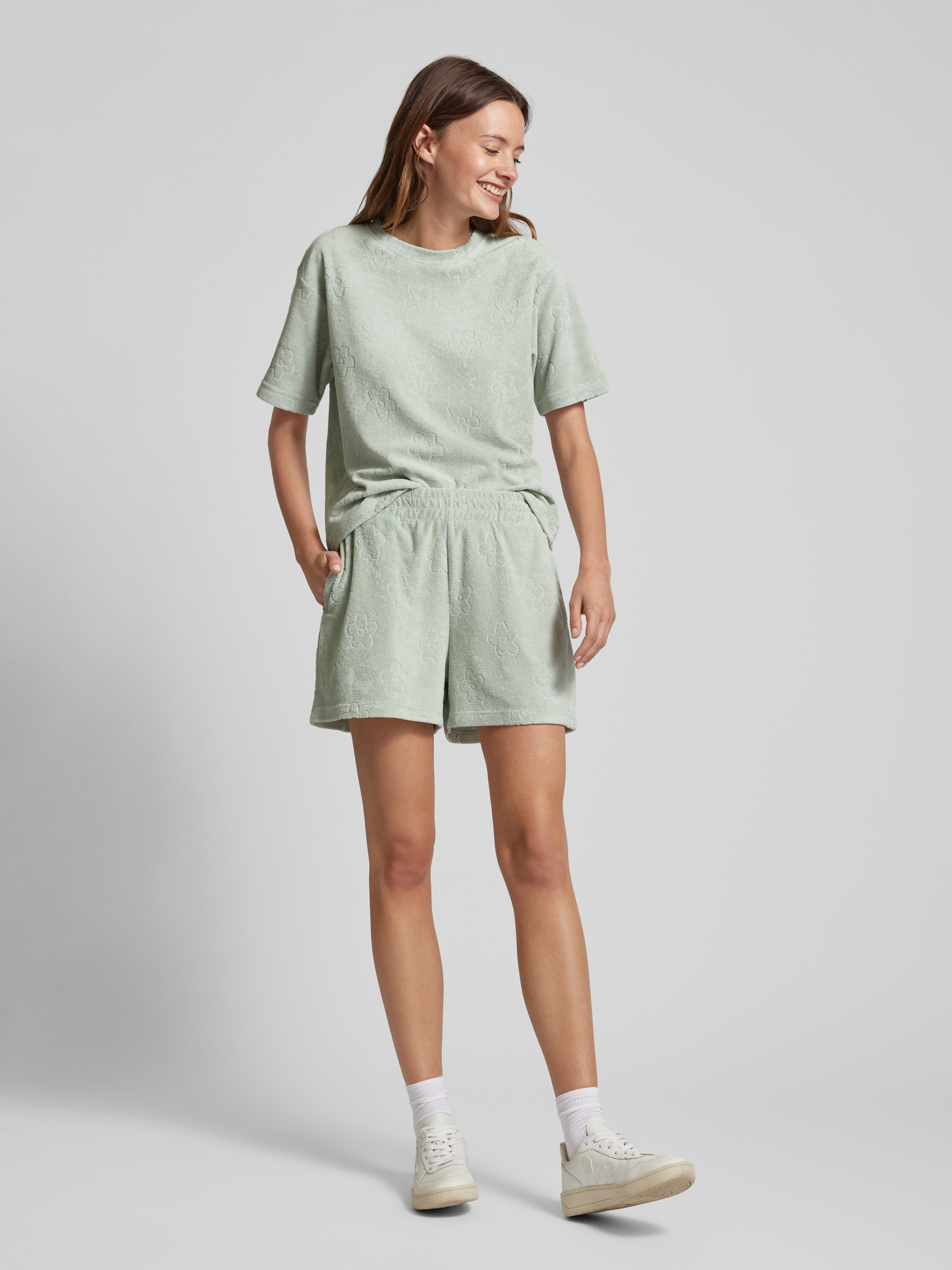 Jake*s CasualShorts aus Frottee mit floralem Muster in mint