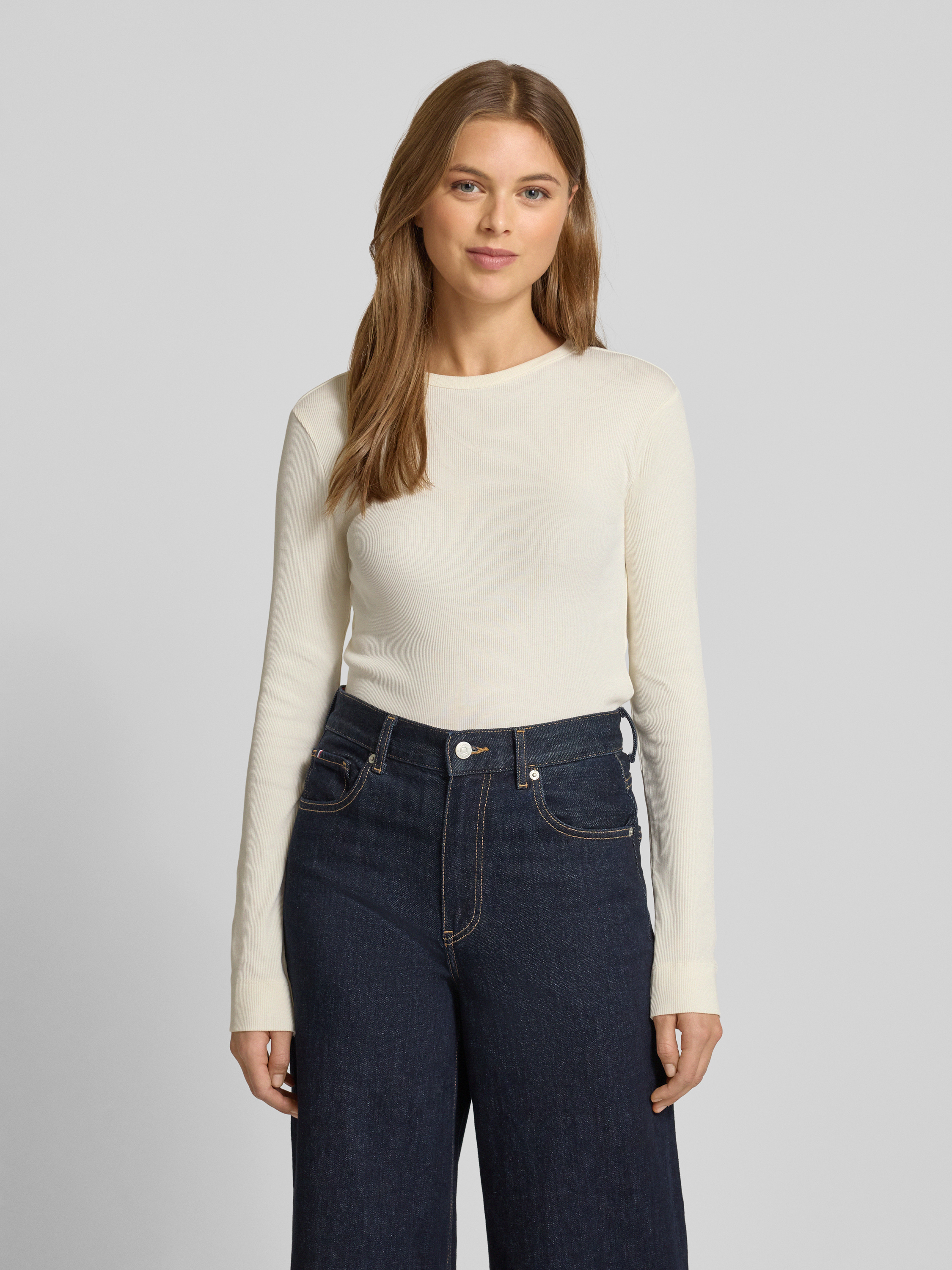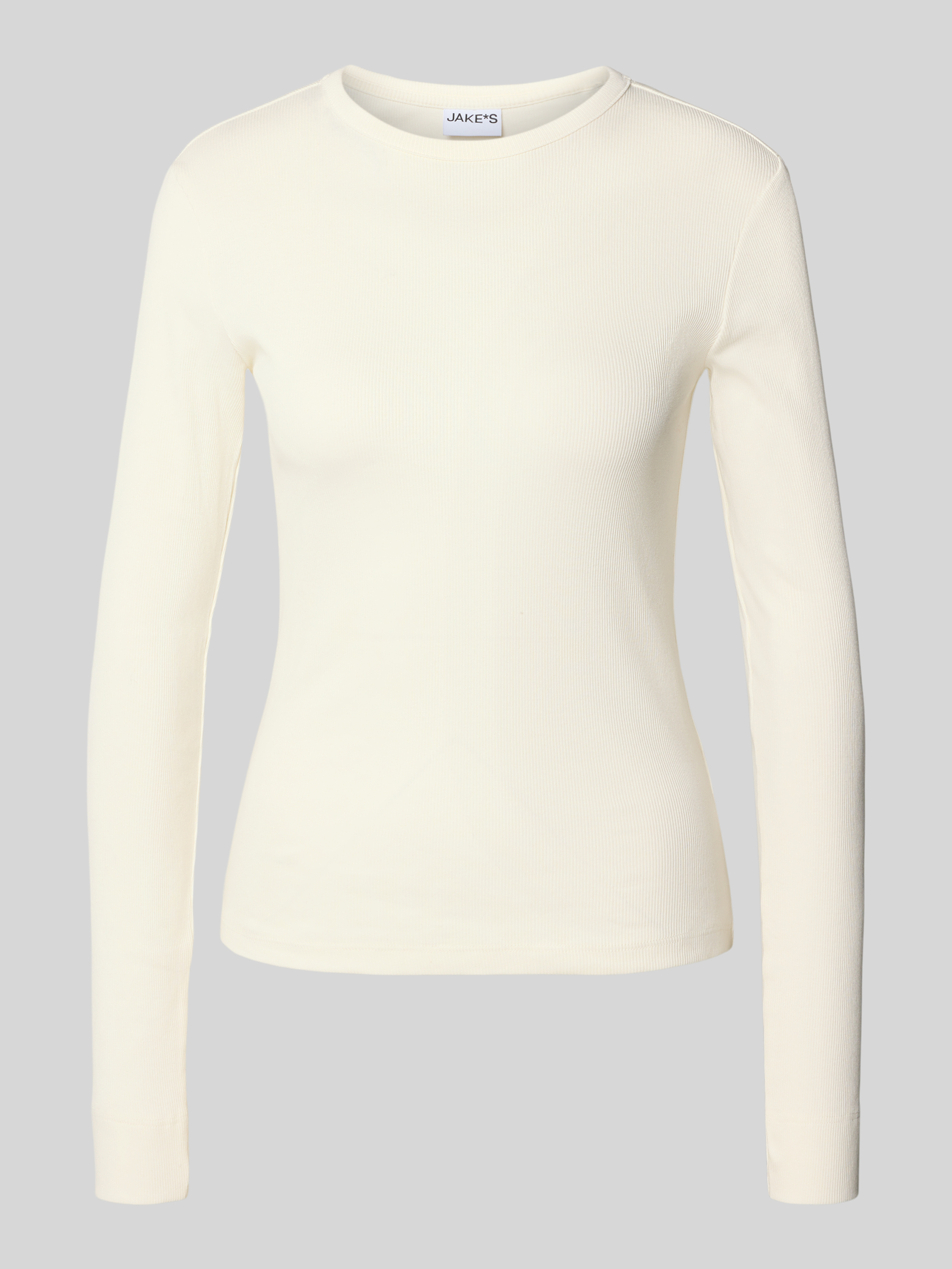 Jake*s CasualSlim Fit Longsleeve mit Strukturmuster in offwhite