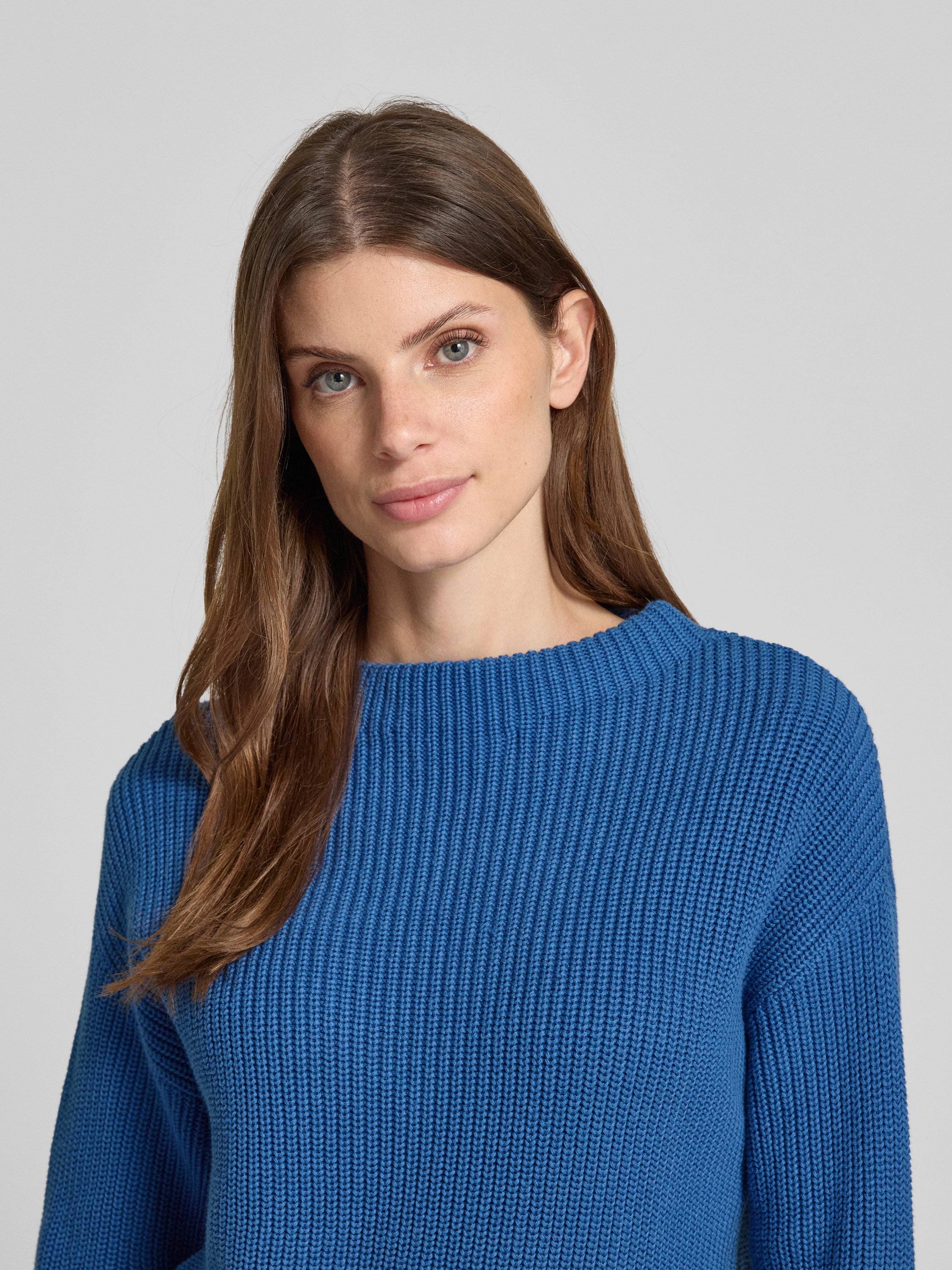 Jake*s CasualStrickpullover mit gerippten Abschlüssen in royal