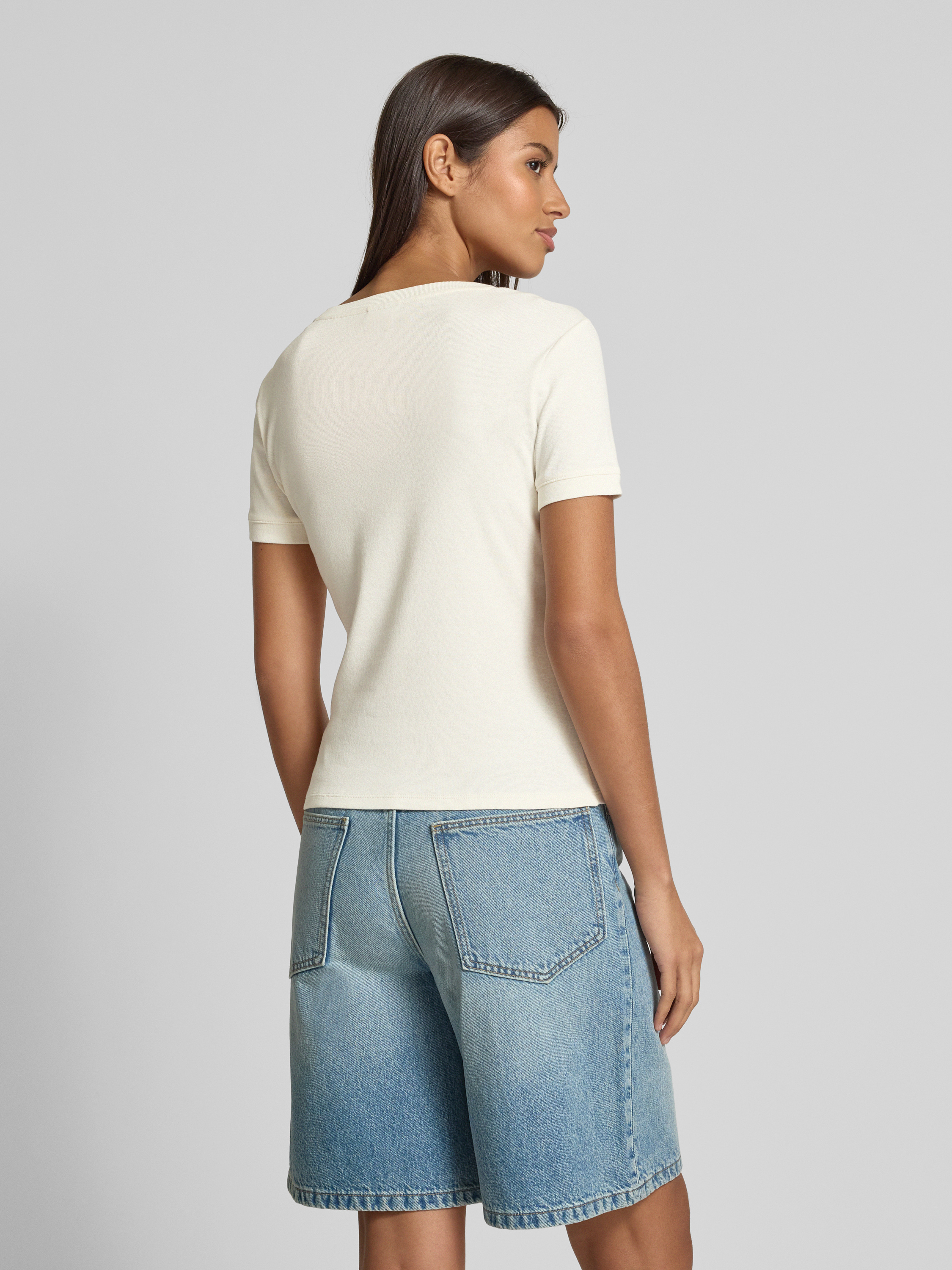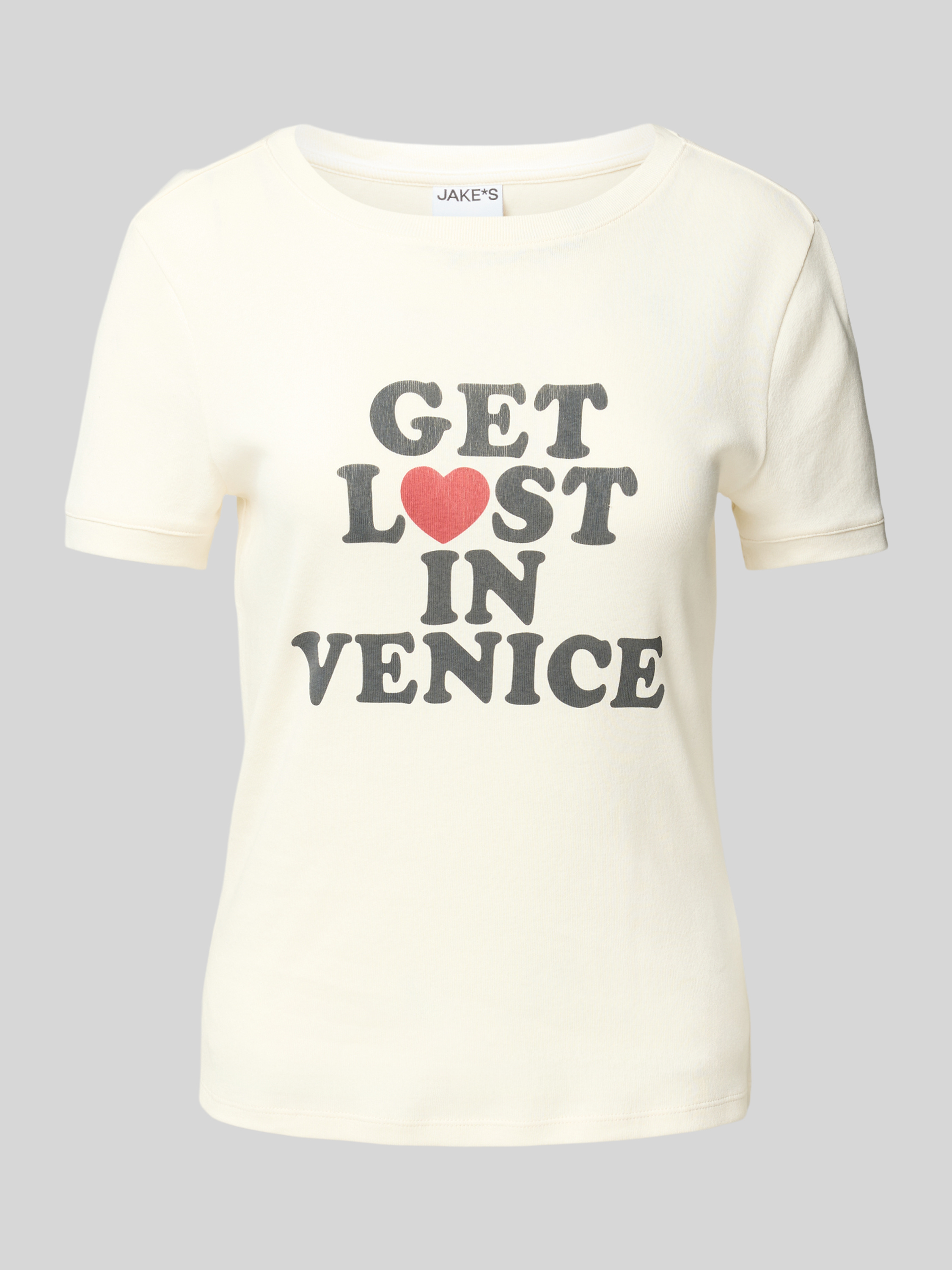 Jake*s CasualT-Shirt in Ripp-Optik mit Schriftzug in offwhite