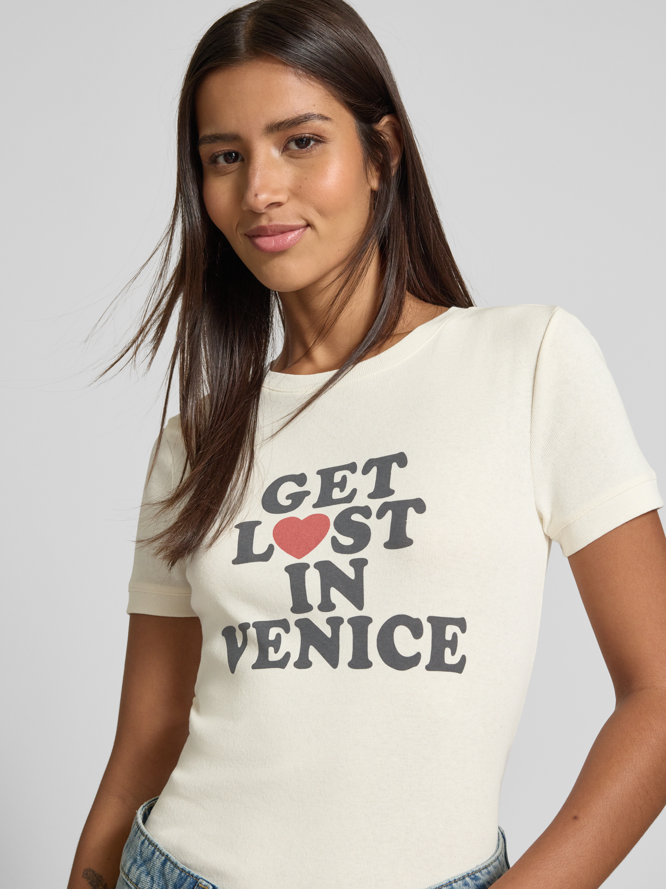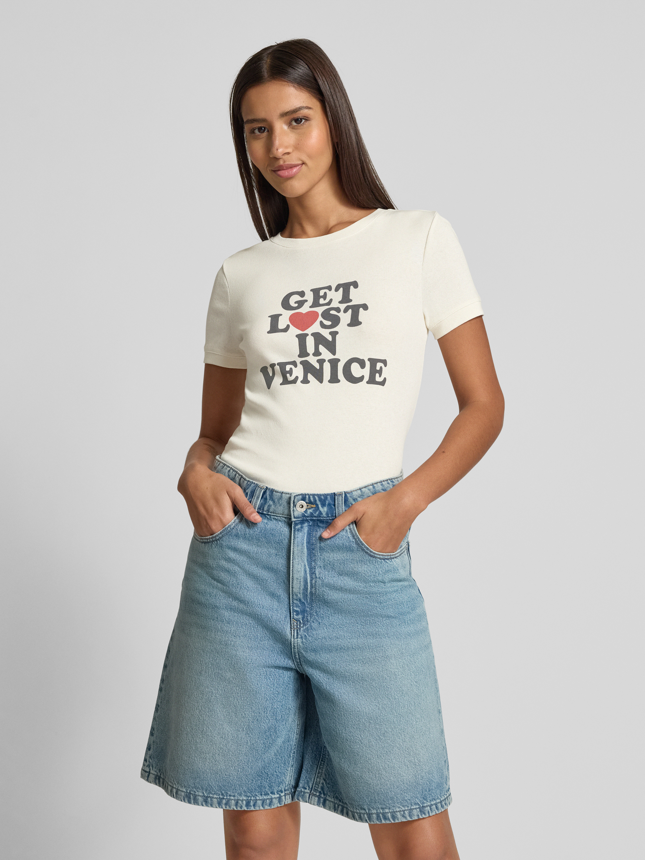 Das Damen T-Shirt von Jake*s Casual besteht aus reiner Baumwolle und fühlt sich angenehm weich auf der Haut an. Durch den Regular Fit und den gerippten Rundhalsausschnitt sitzt das Shirt bequem und unkompliziert. Ein Statement-Print auf der Vorderseite rundet das legere Design ab.