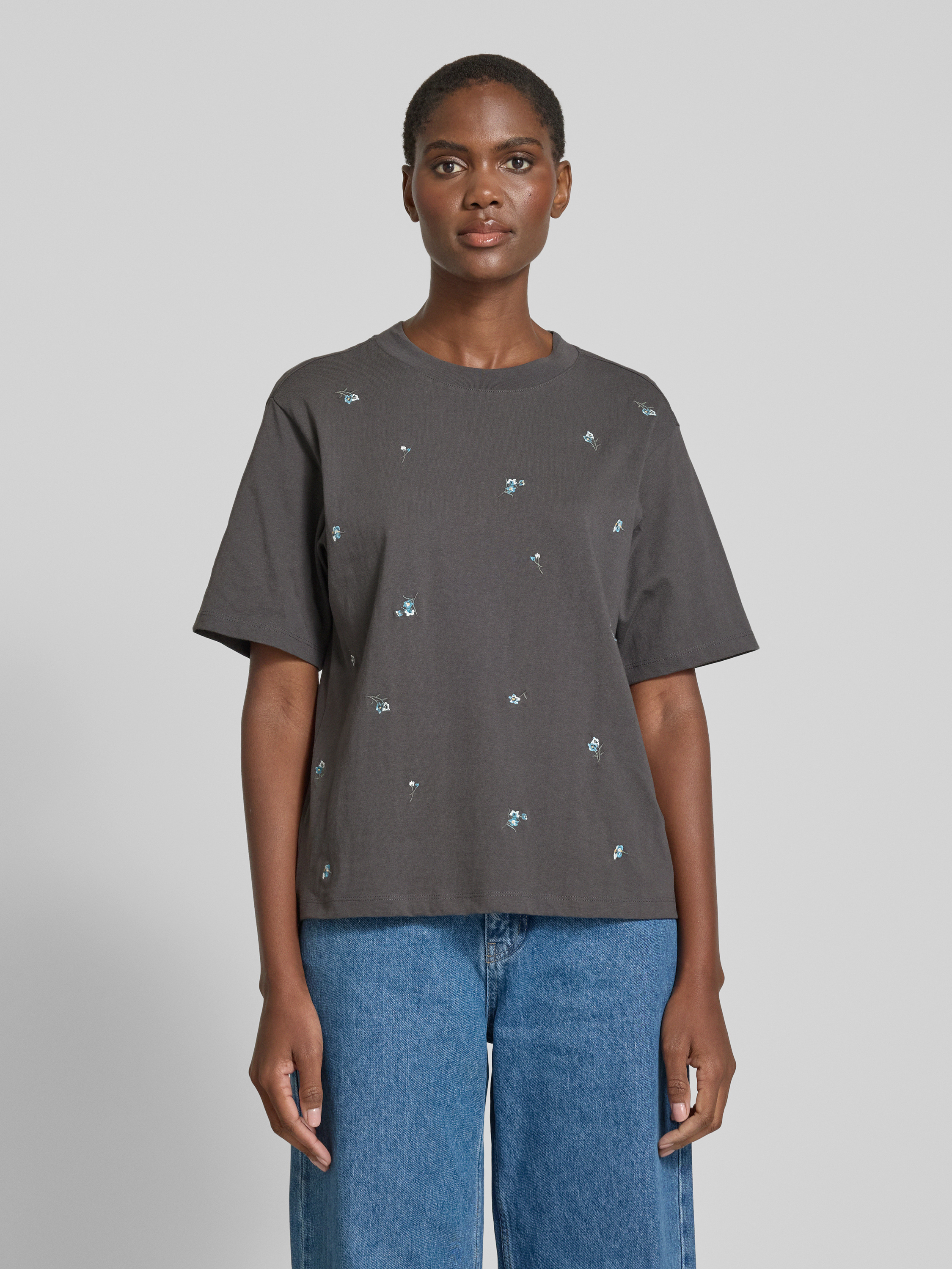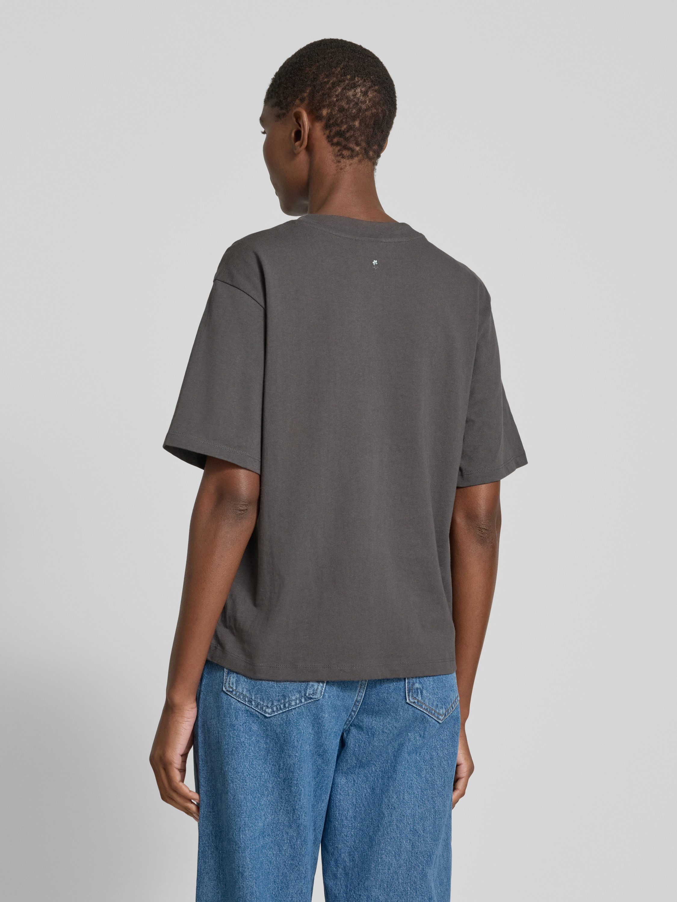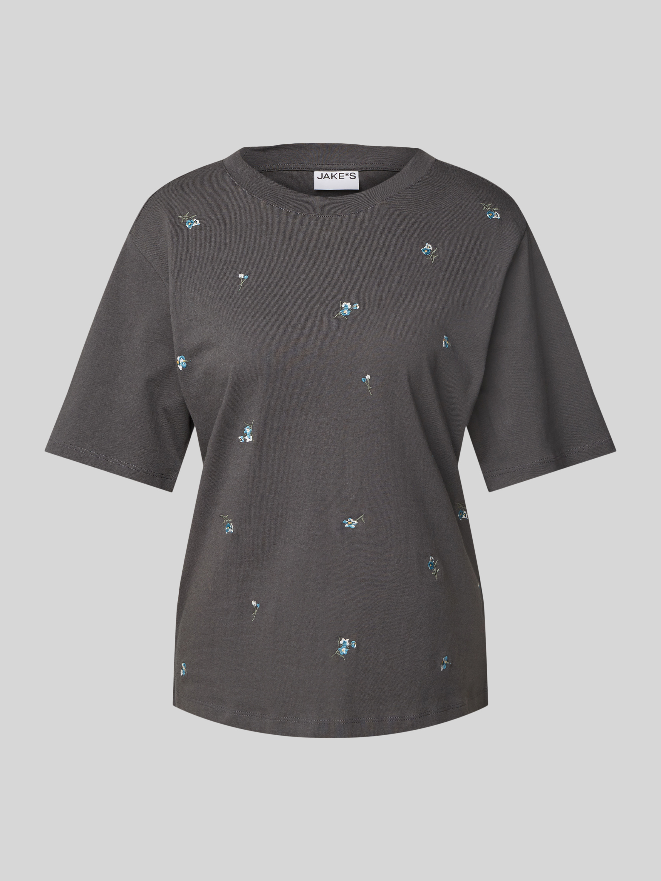 Jake*s CasualT-Shirt mit geripptem Rundhalsausschnitt in dunkelgrau