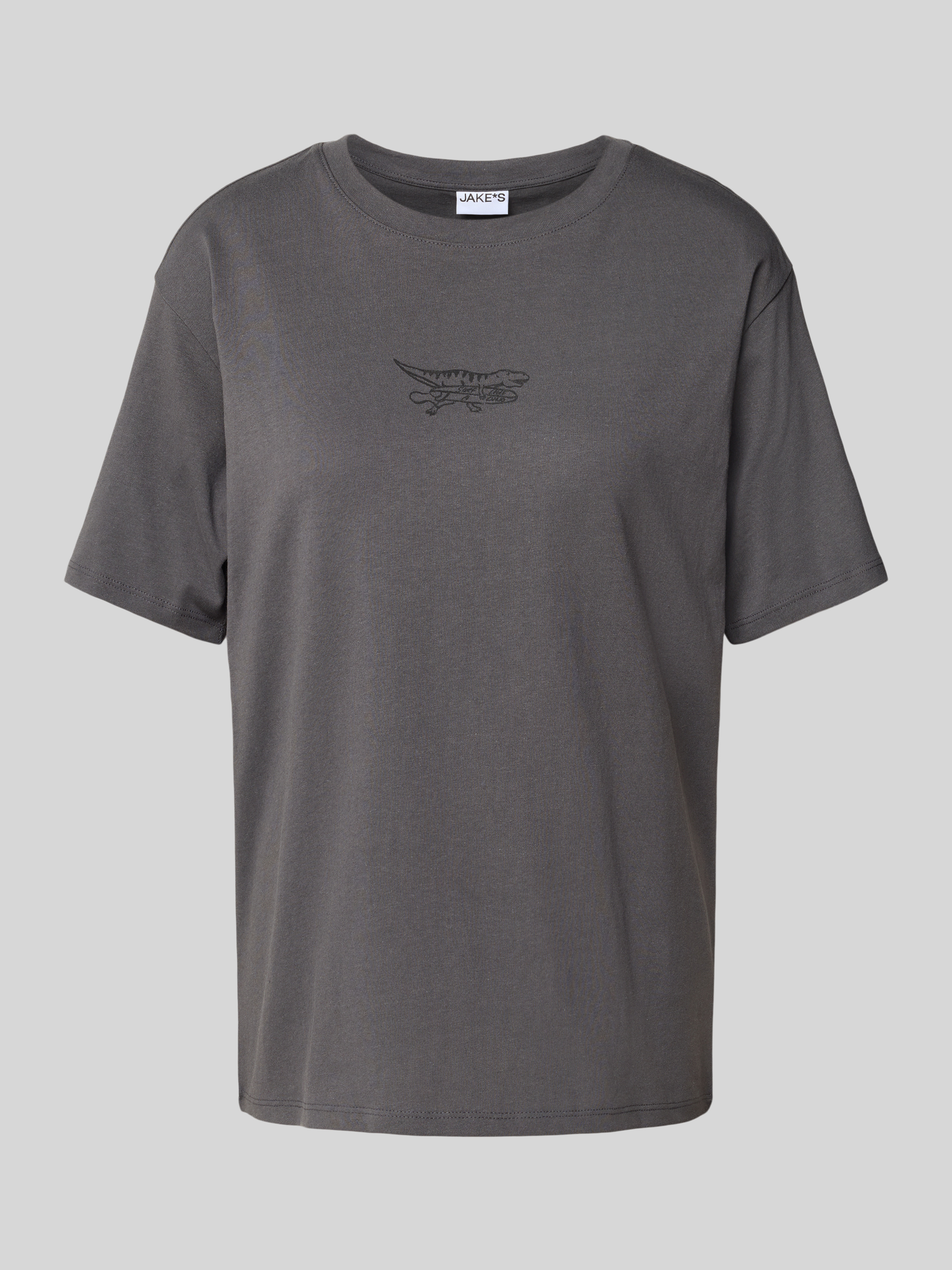 Jake*s CasualT-Shirt mit Motiv-Print in dunkelgrau