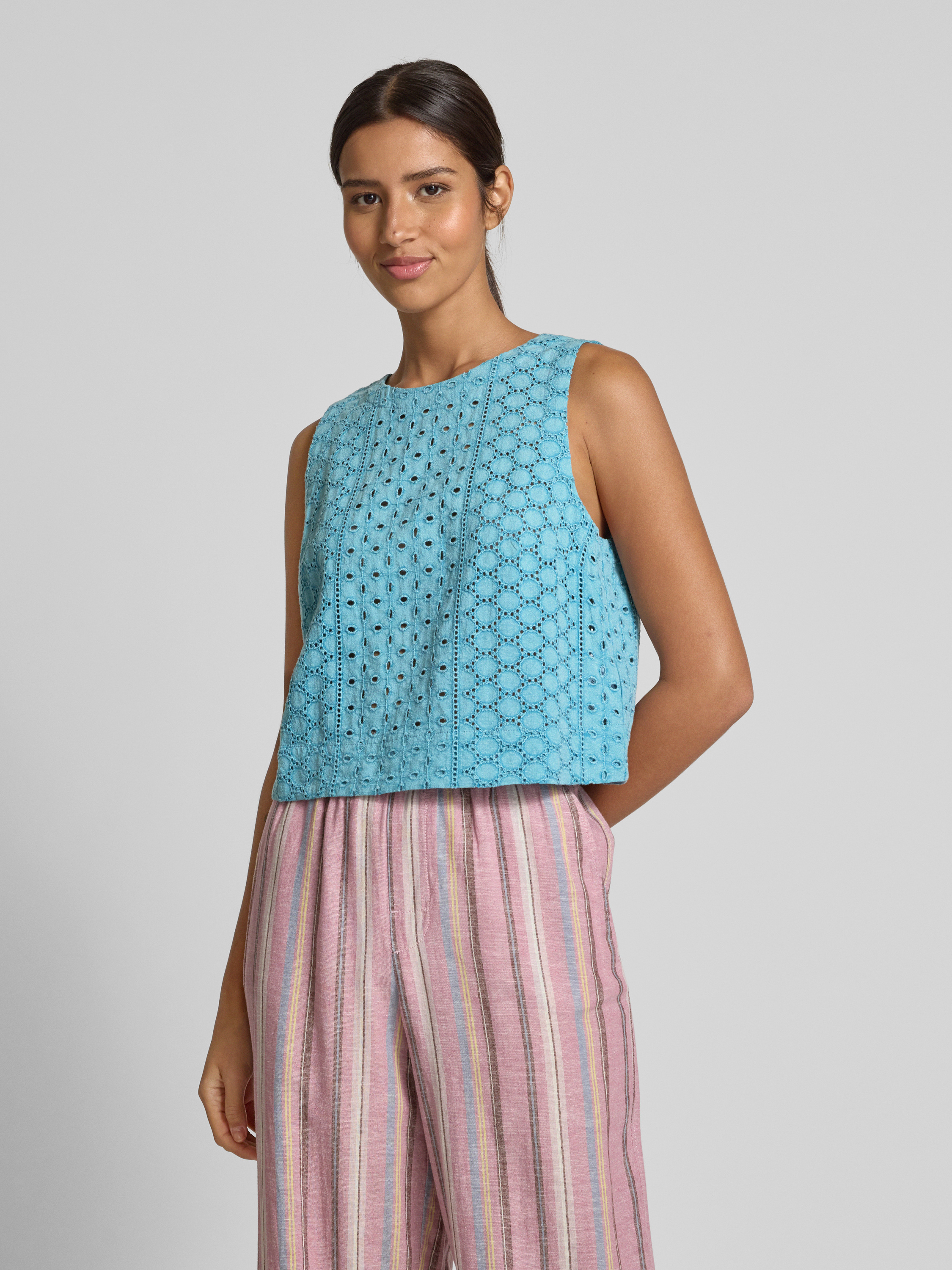 Das Damen Top von Jake*s Casual fällt durch den Batik-Look direkt ins Auge und bringt eine legere Note in den Alltag. Reine Baumwolle sorgt für ein angenehmes Tragegefühl, während der Regular Fit und die dezente Lochstickerei Bewegungsfreiheit und eine unaufdringliche Optik ermöglichen. Kombiniert mit dem klassischen Rundhalsausschnitt entsteht ein vielseitiges Kleidungsstück, das sich unkompliziert in verschiedene Outfits einfügt.