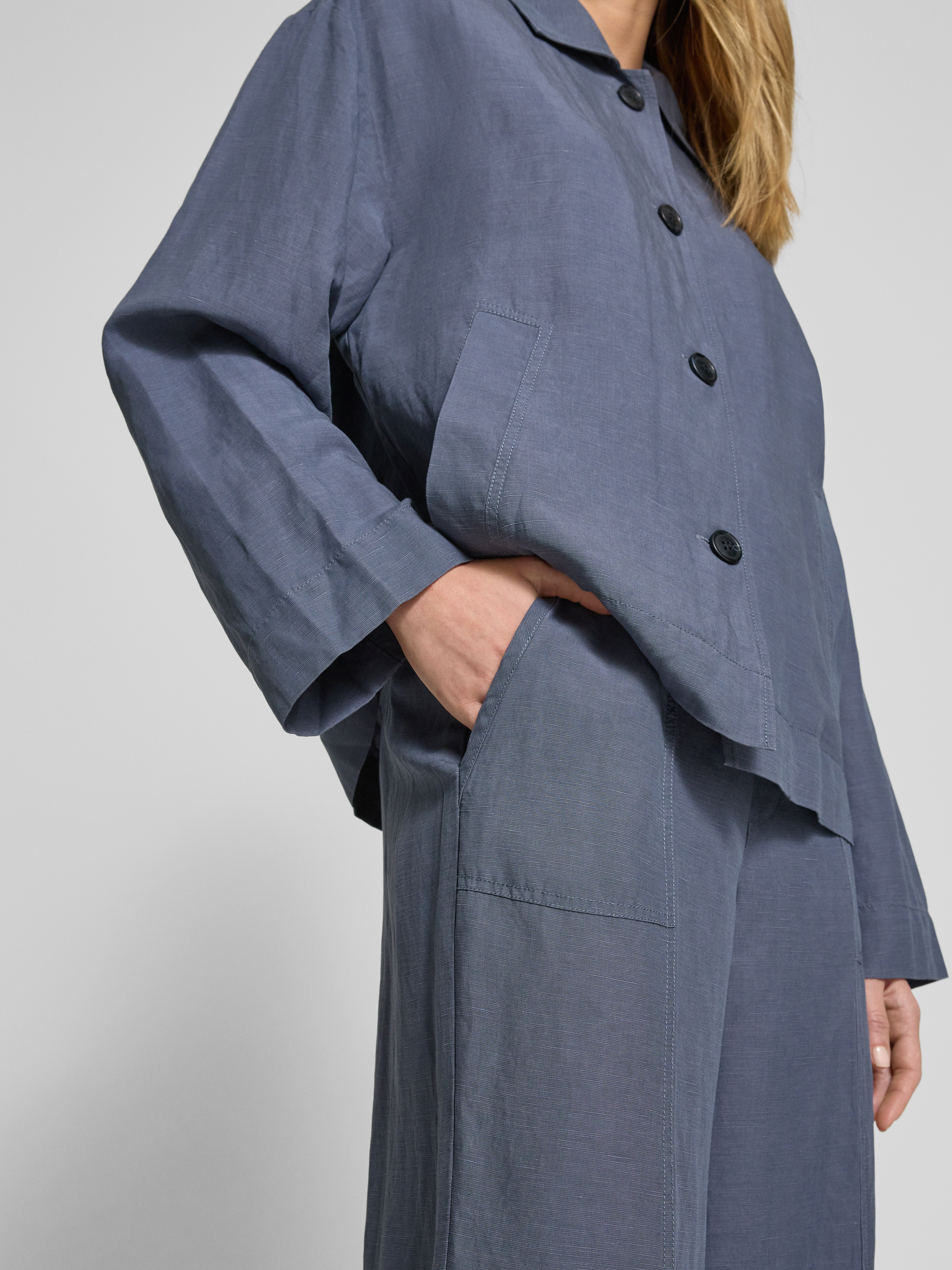 Jake*s CasualWide Leg Stoffhose aus Lyocell-Leinen-Mix in jeansblau
