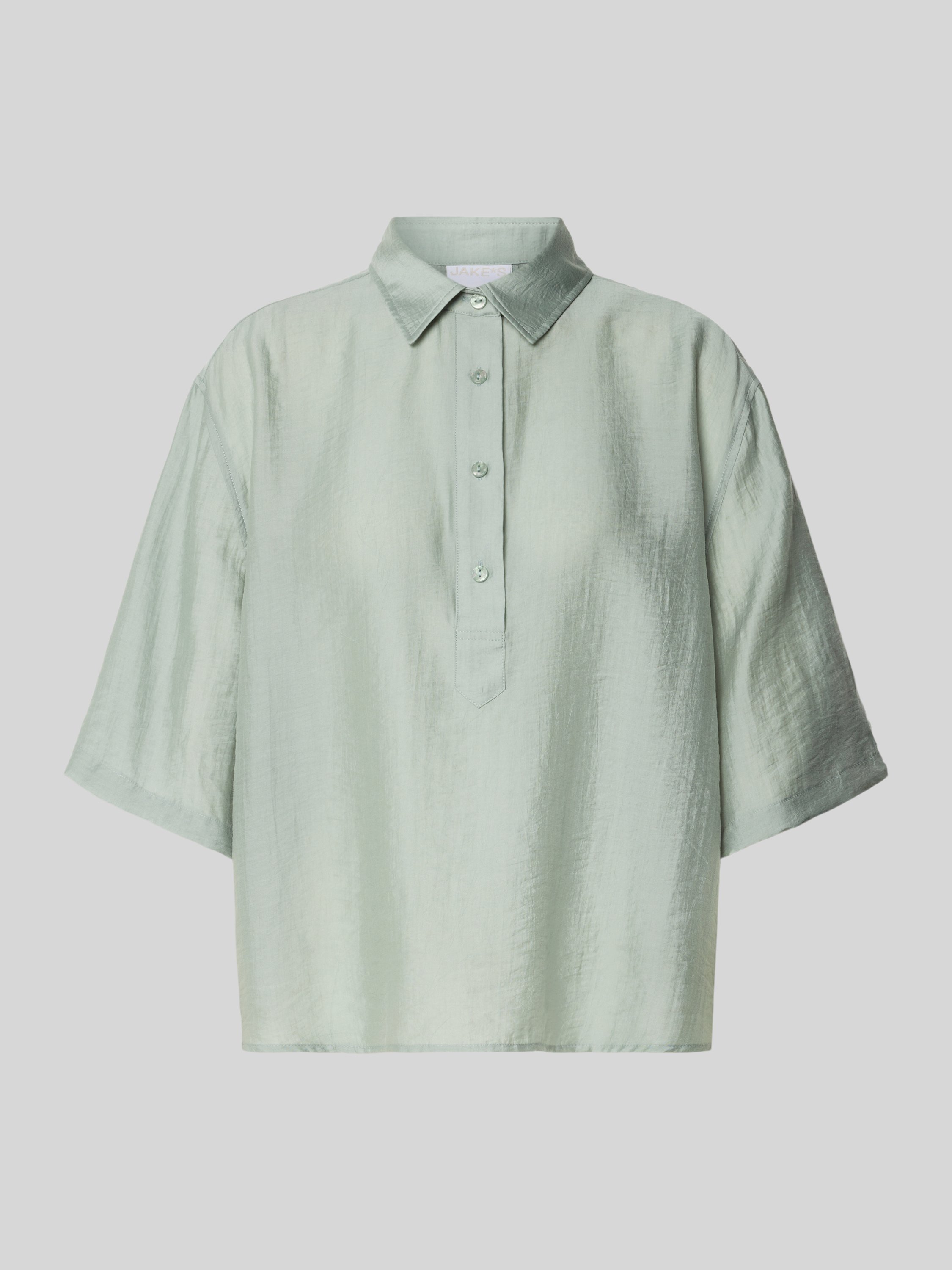 Das Blusenshirt von Jake*s Collection kombiniert einen lockeren Schnitt mit einem eleganten Hemdblusenkragen, was es vielseitig für unterschiedliche Anlässe einsetzbar macht. Der Lyocell-Mix sorgt für ein angenehmes Tragegefühl, während die 3/4-Ärmel eine luftige Leichtigkeit verleihen. Ideal für entspannte sowie formellere Gelegenheiten.