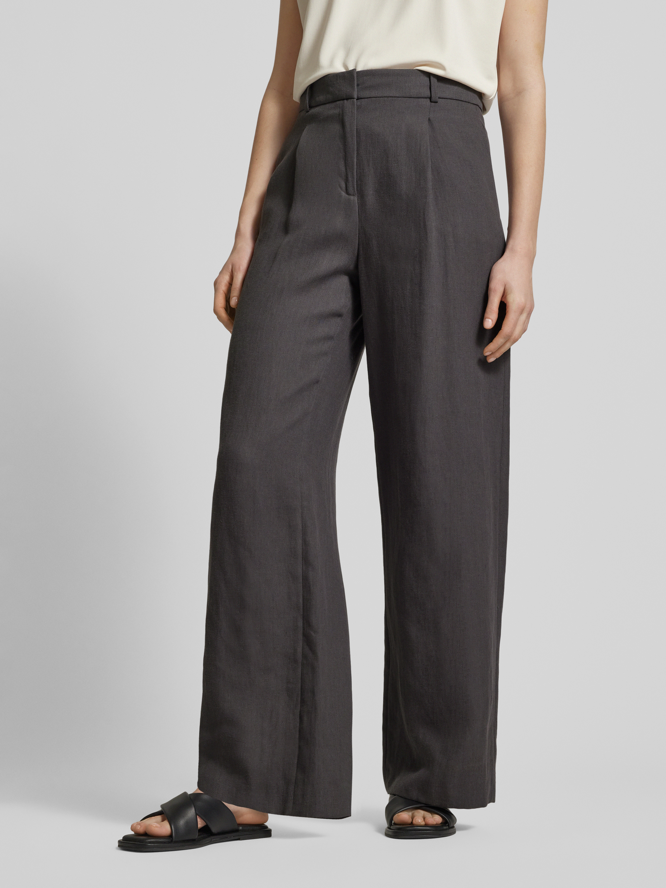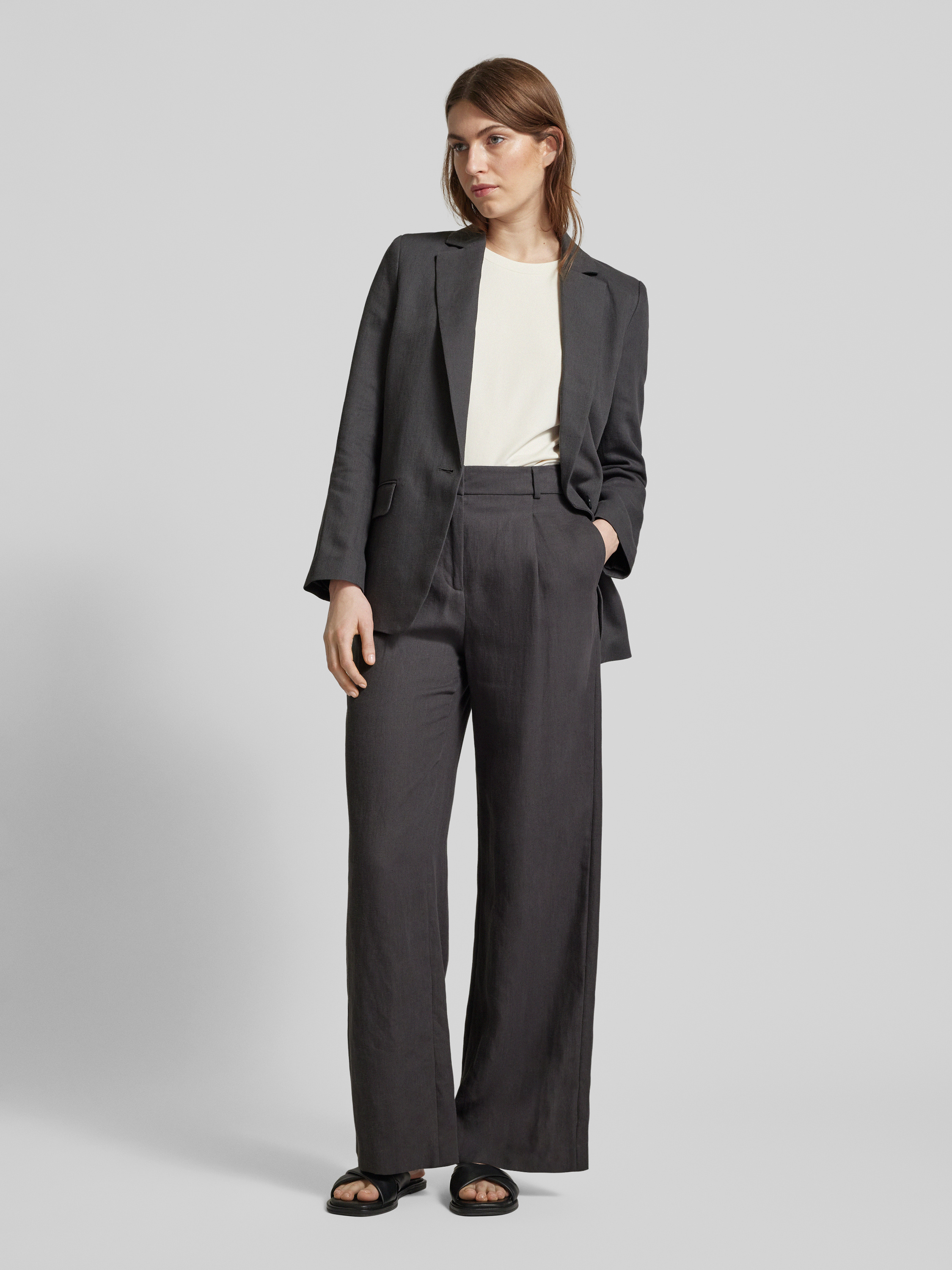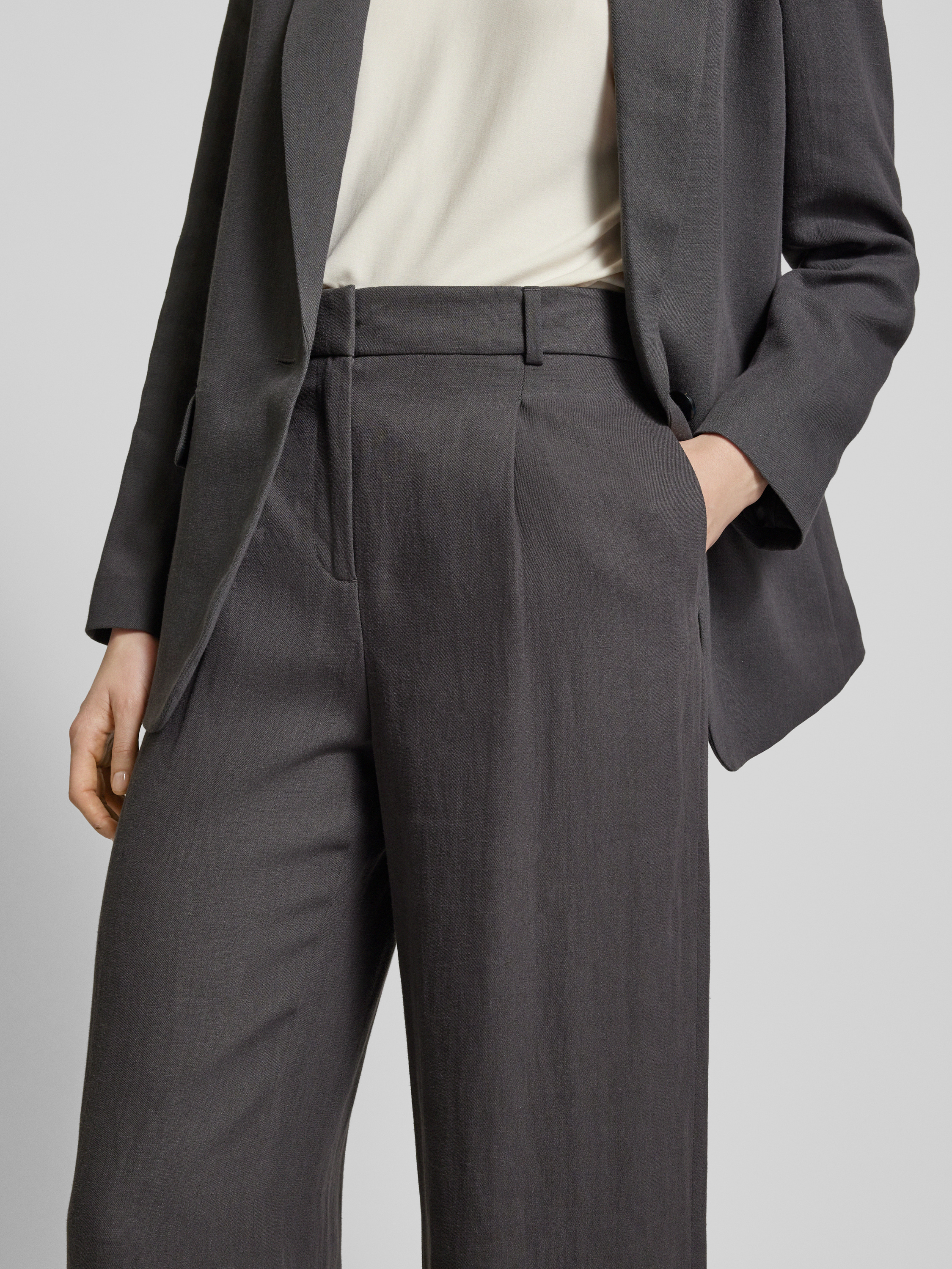 Die Flared Stoffhose von Jake*s Collection vereint zeitlose Eleganz mit angenehmem Tragekomfort. Dank des hochwertigen Leinen-Mixes bietet sie eine leichte, atmungsaktive Passform, die sich ideal für warme Tage eignet. Bundfalten und ein unifarbenes Design runden den Look stilvoll ab.
