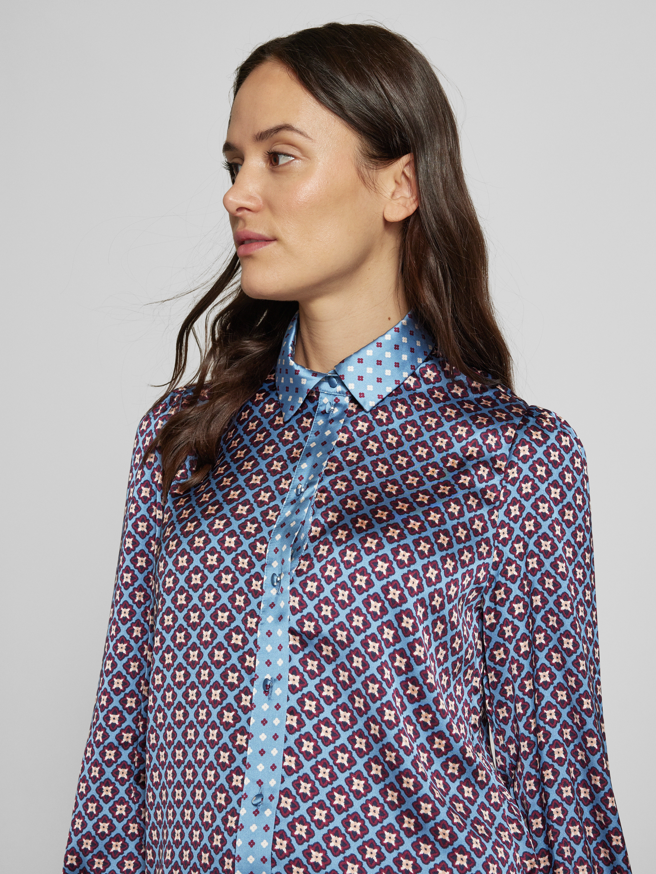Die Hemdbluse von Jake*s Collection verbindet einen lockeren Schnitt mit einem klassischen Hemdblusenkragen und einer durchgehenden Knopfleiste. Aus leichter Baumwolle gefertigt, bietet sie ein angenehmes Tragegefühl. Die Bluse eignet sich ideal für vielseitige Alltagskombinationen und sorgt für einen stilvollen Auftritt.