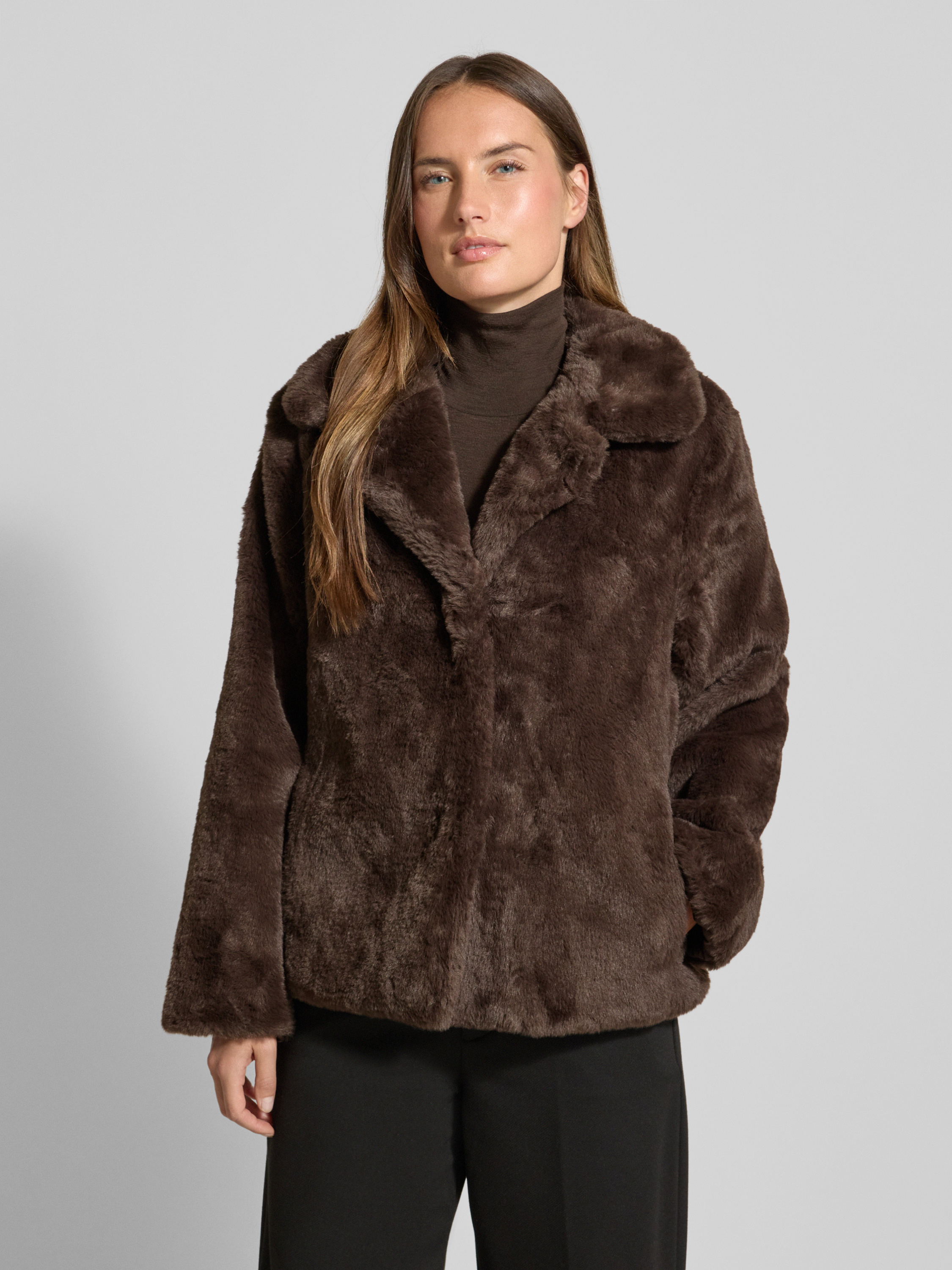Die Damen Jacke von Jake*s Collection zeigt sich im Regular Fit und sorgt durch ihren modernen Schnitt für angenehme Bewegungsfreiheit im Alltag. Das Kunstfell fühlt sich weich an und liegt leicht auf der Haut. Mit dem Reverskragen entsteht ein vielseitig kombinierbarer Look, der zu vielen Gelegenheiten passt.