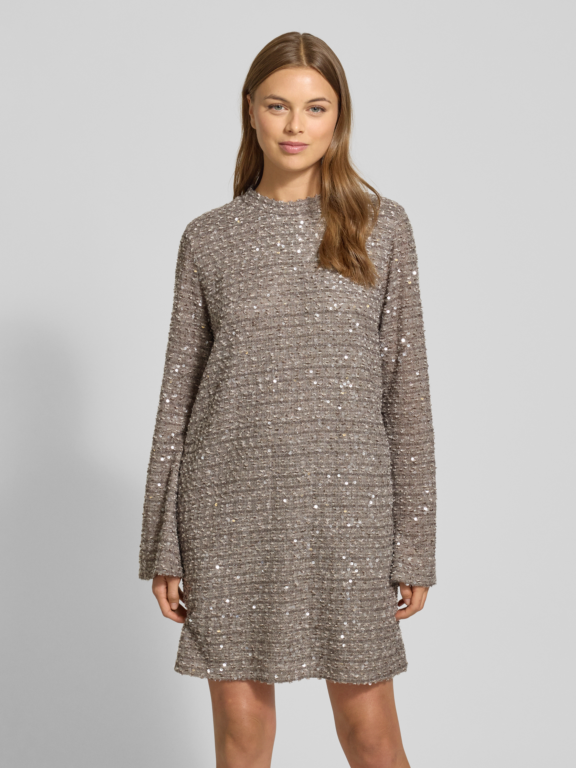 Jake*s CollectionKnielanges Kleid mit Paillettenbesatz in mittelgrau melange