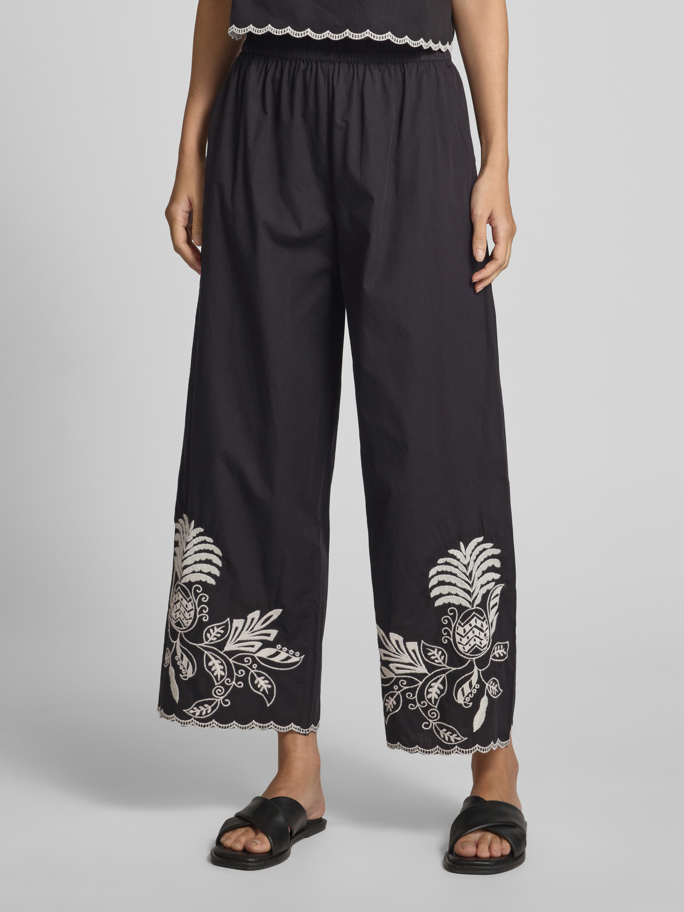 Die Marlenehose von Jake*s Collection überzeugt durch ihren weiten Schnitt und die floralen Stickereien, die jedem Outfit eine besondere Note verleihen. Gefertigt aus reiner Baumwolle, sorgt sie für ein angenehmes Tragegefühl. Praktische Eingrifftaschen bieten zusätzlichen Komfort im Alltag.