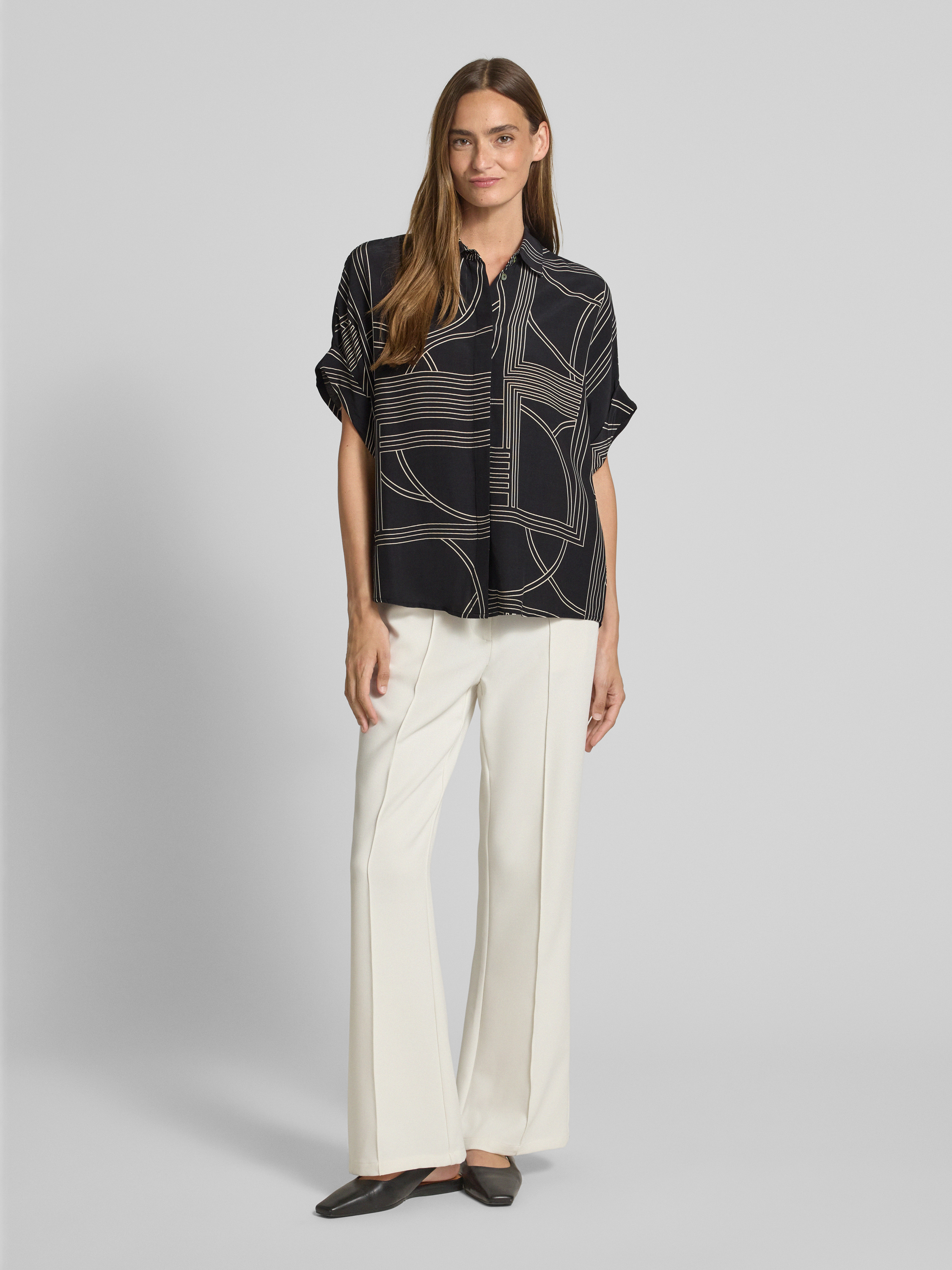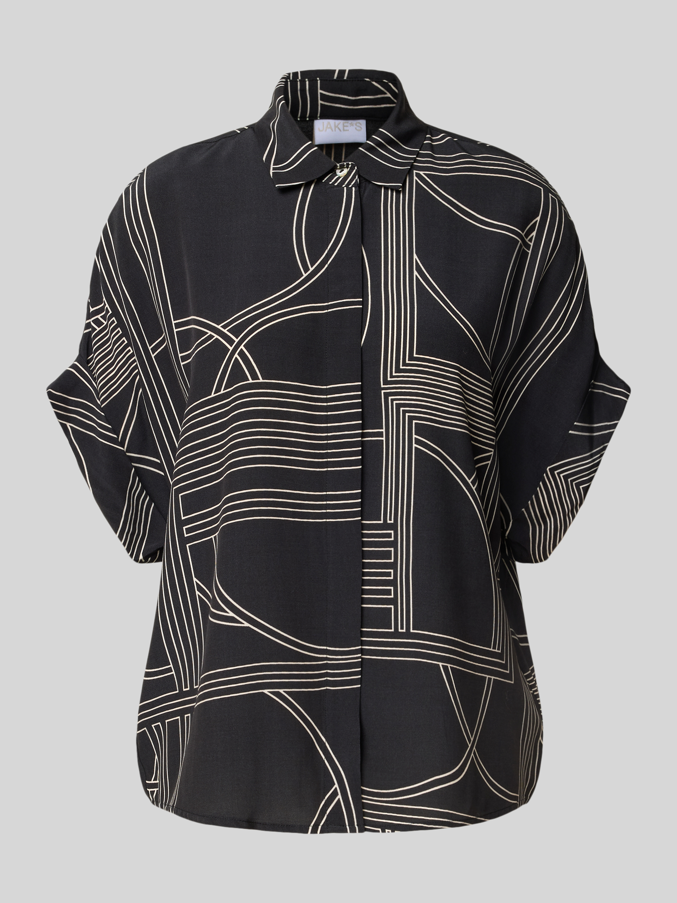 Die Regular Fit Bluse von Jake*s Collection vereint klassischen Stil mit modernem Komfort. Aus reiner Viskose gefertigt, fällt sie weich und angenehm auf der Haut. Der Hemdblusenkragen und die halben Ärmel verleihen ihr einen zeitlosen Charakter, der sich vielseitig kombinieren lässt.