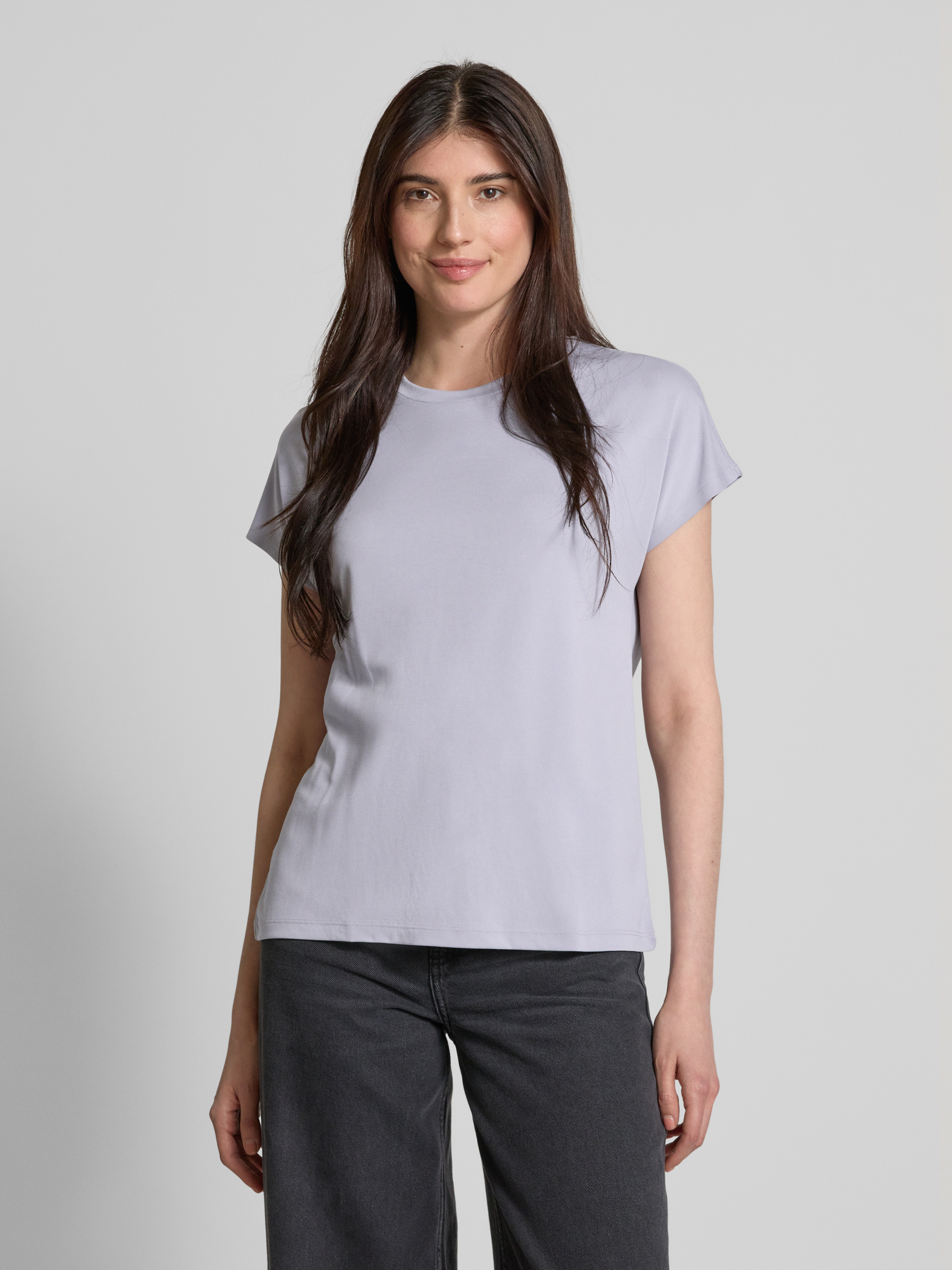 Jake*s CollectionT-Shirt mit geripptem Rundhalsausschnitt in lavender