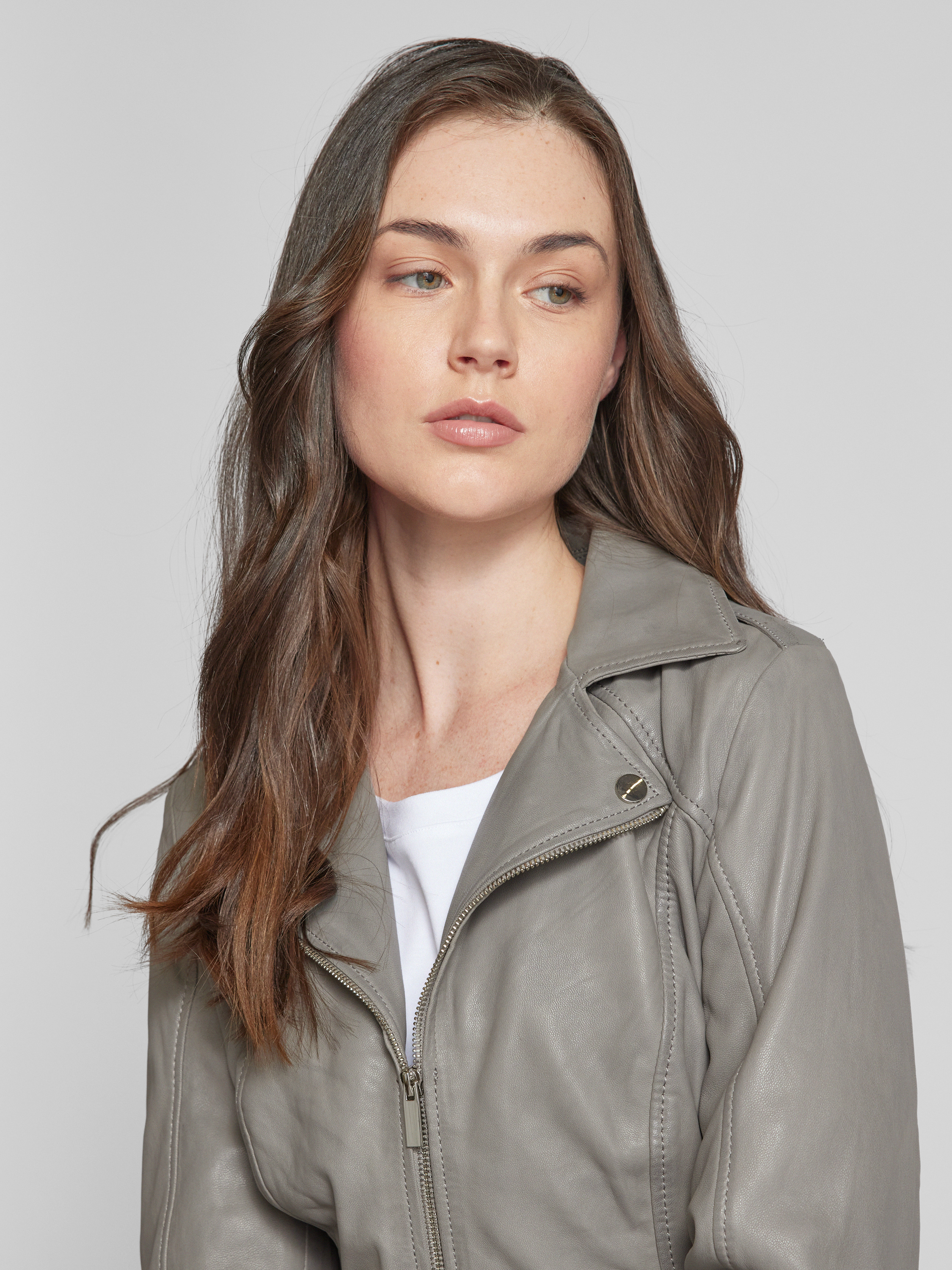 Die Jilani Lederjacke vereint zeitlose Eleganz mit einem taillierten Schnitt, der die Figur dezent betont. Echtes Leder sorgt für eine angenehme Haptik und Langlebigkeit, während das unifarbene Design vielseitige Kombinationsmöglichkeiten eröffnet. Ein Umlegekragen und praktische Taschen runden das Gesamtbild harmonisch ab.
