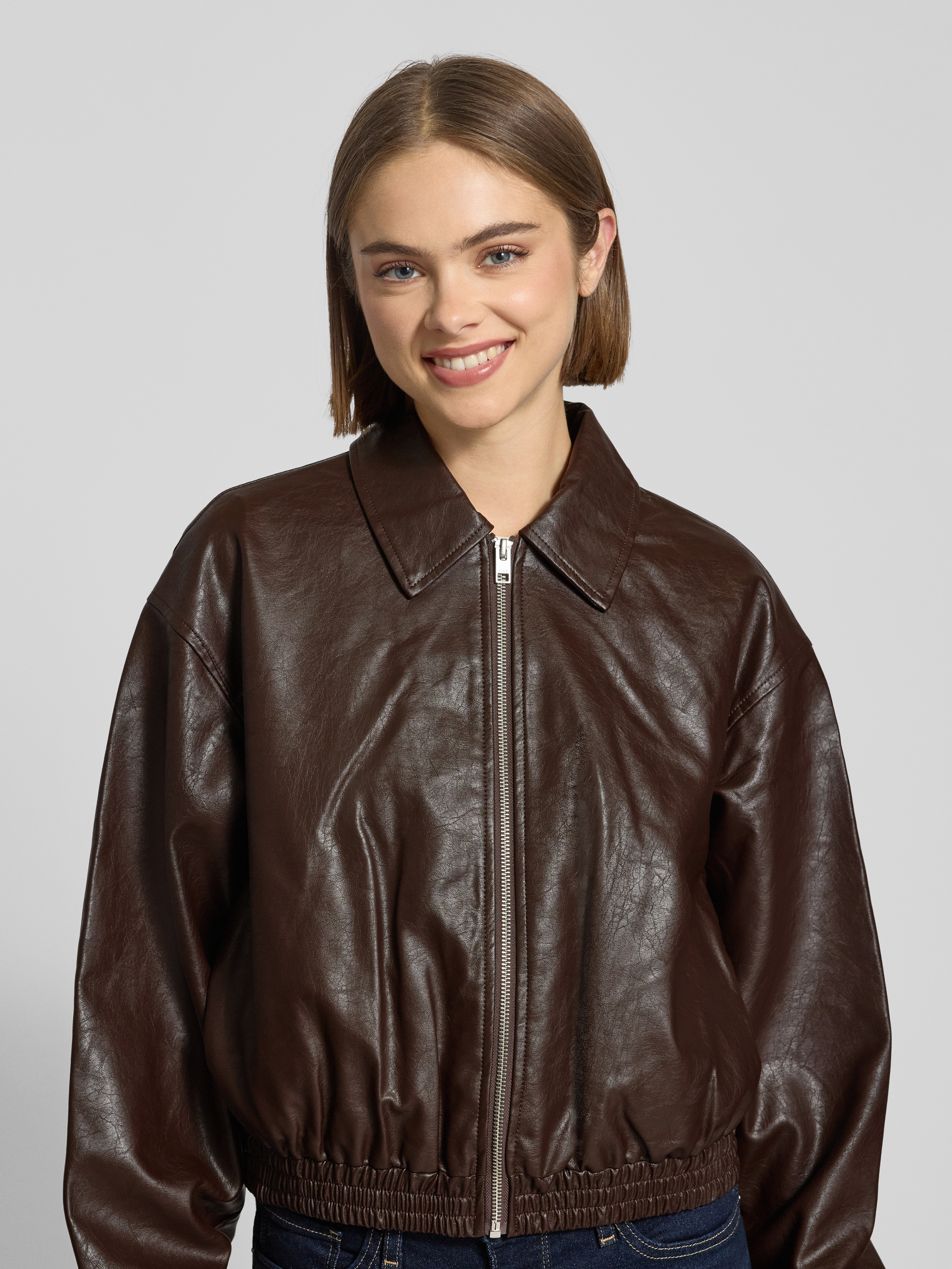 Die Damen Jacke von JJXX Modell 'JODY' zeigt sich in moderner Leder-Optik und fällt durch ihren Regular Fit angenehm lässig aus. Reine Viskose sorgt für ein geschmeidiges Tragegefühl und eine leichte Struktur, die sich vielseitig kombinieren lässt. Ein Umlegekragen verleiht dem Look eine klassische Note, wodurch man flexibel bleibt.
