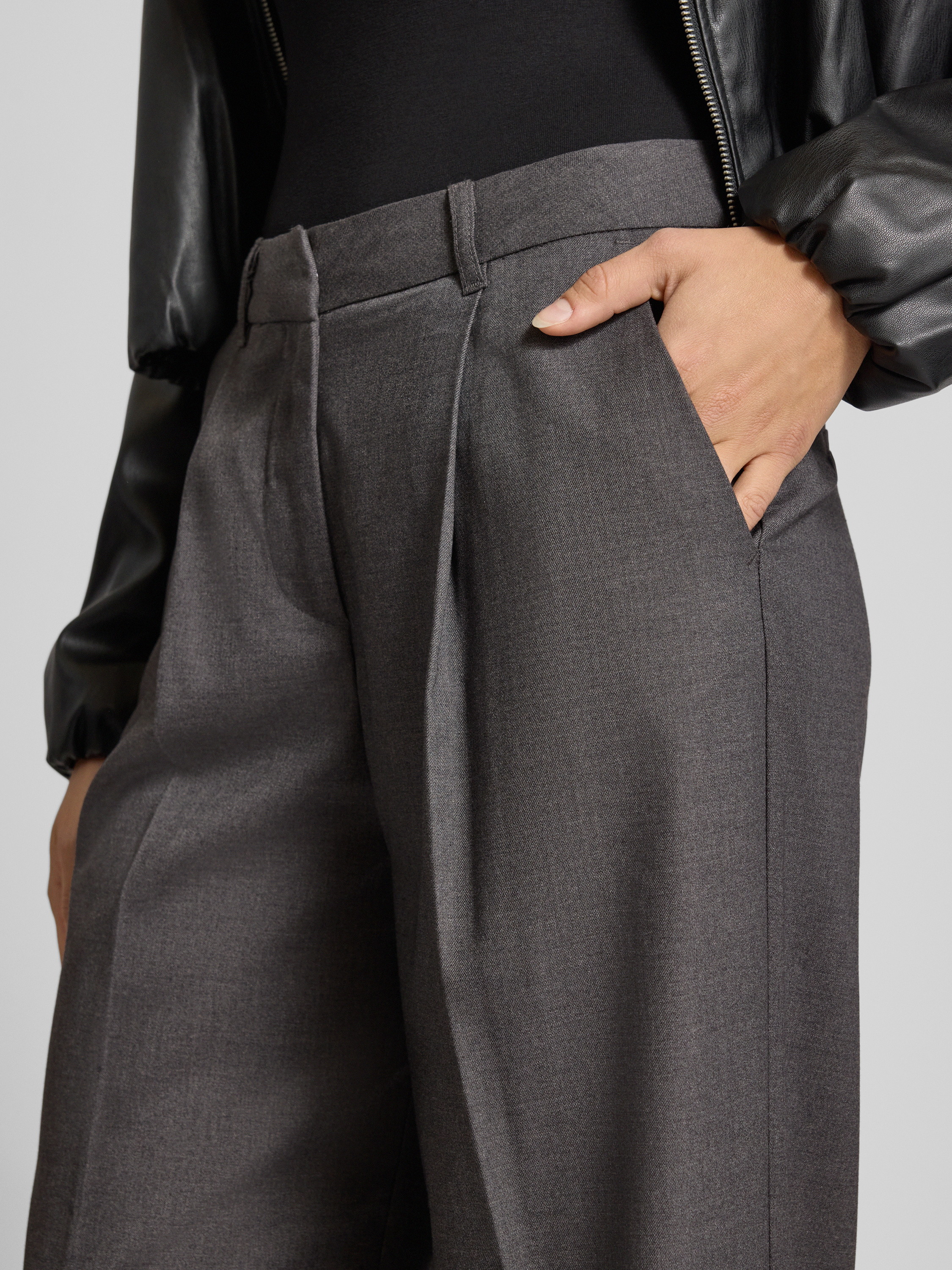 Wide Fit Stoffhose mit Viskose-Anteil Modell 'Ellis' in hellgrau