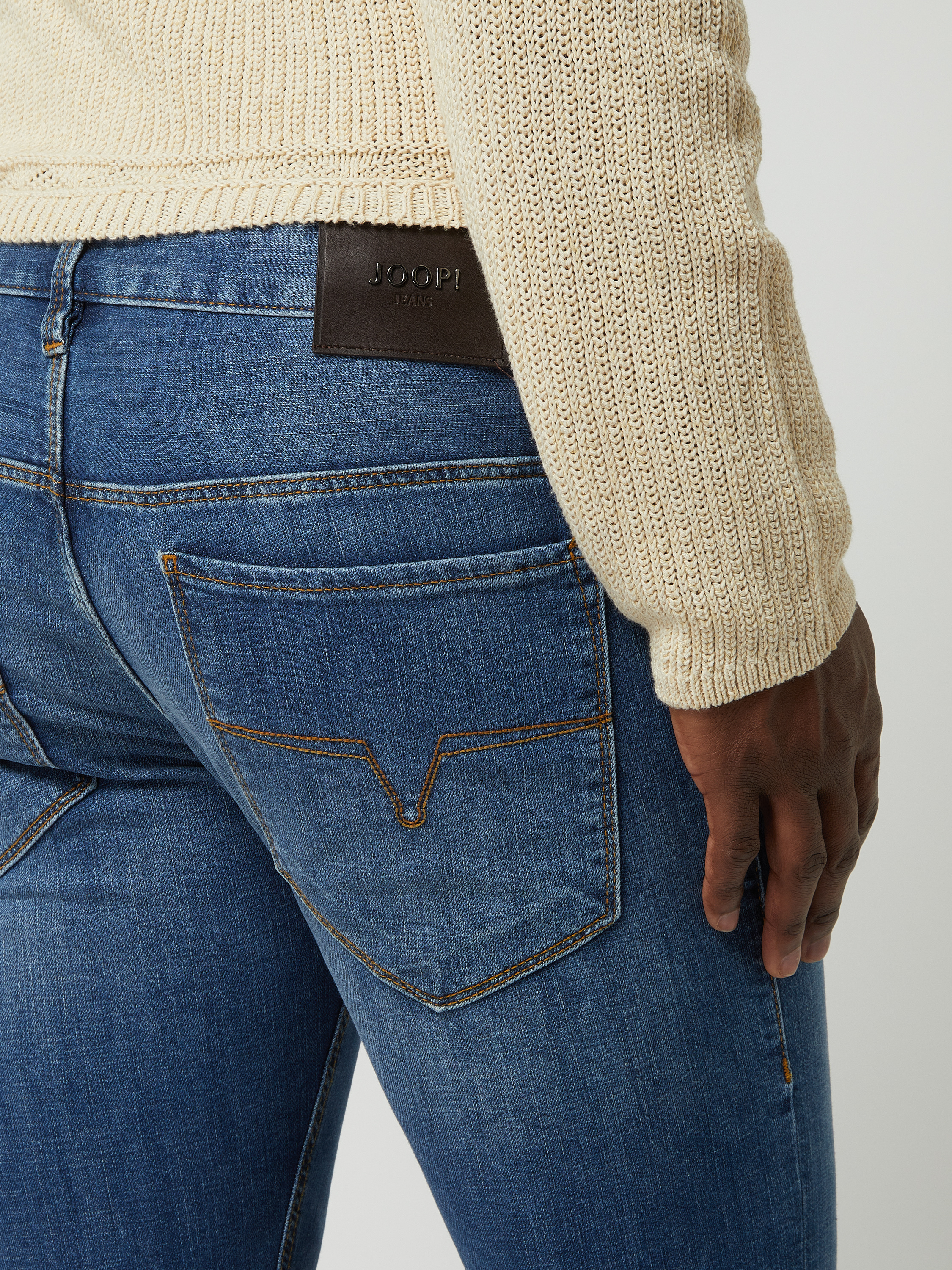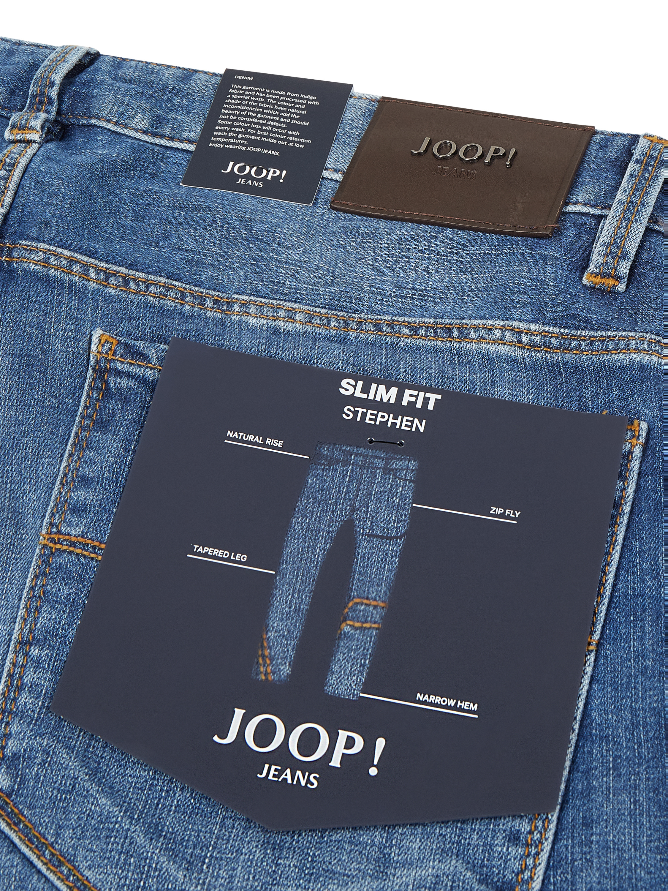 Die Slim Fit Jeans 'Stephen' von JOOP! JEANS besteht aus einem Baumwoll-Elasthan-Mix, der sich angenehm an den Körper anpasst und Bewegungsfreiheit ermöglicht. Durch das 5-Pocket-Design erhält man ausreichend Stauraum, während Ziernähte auf den Gesäßtaschen subtile Akzente setzen.