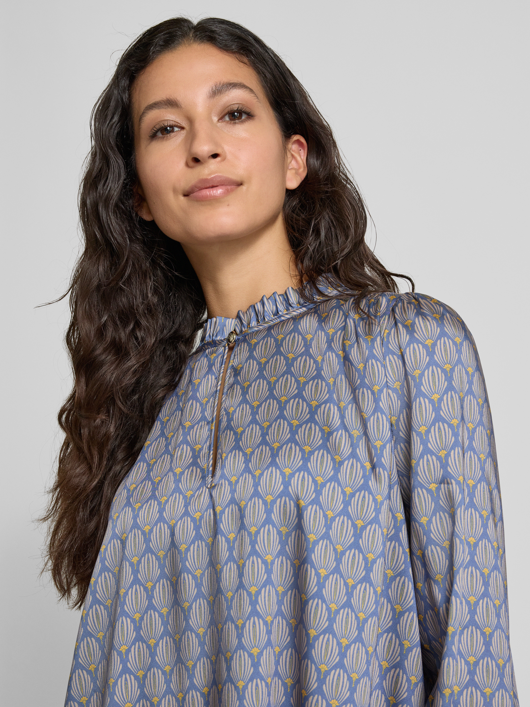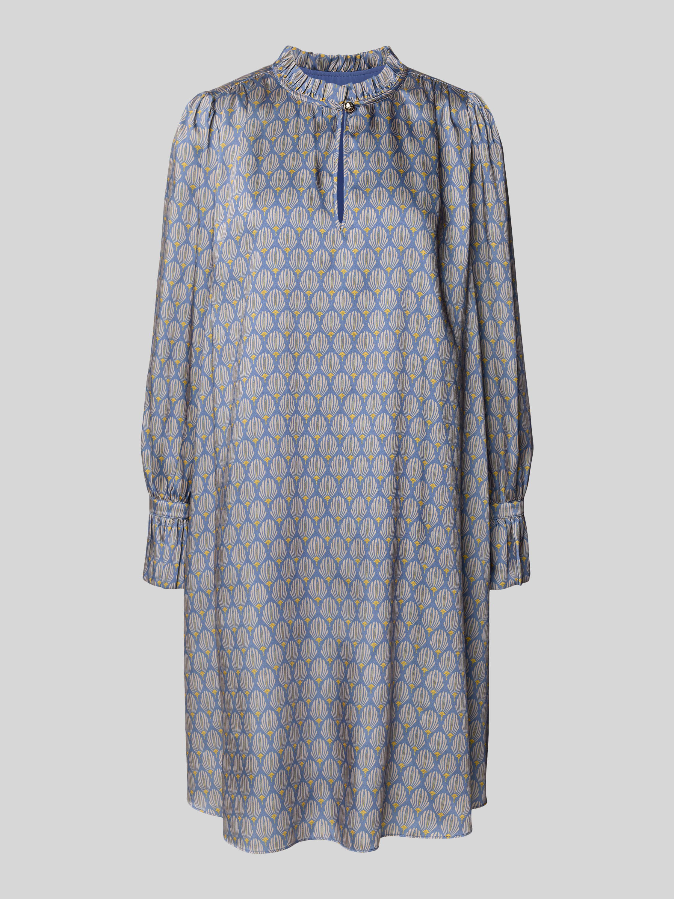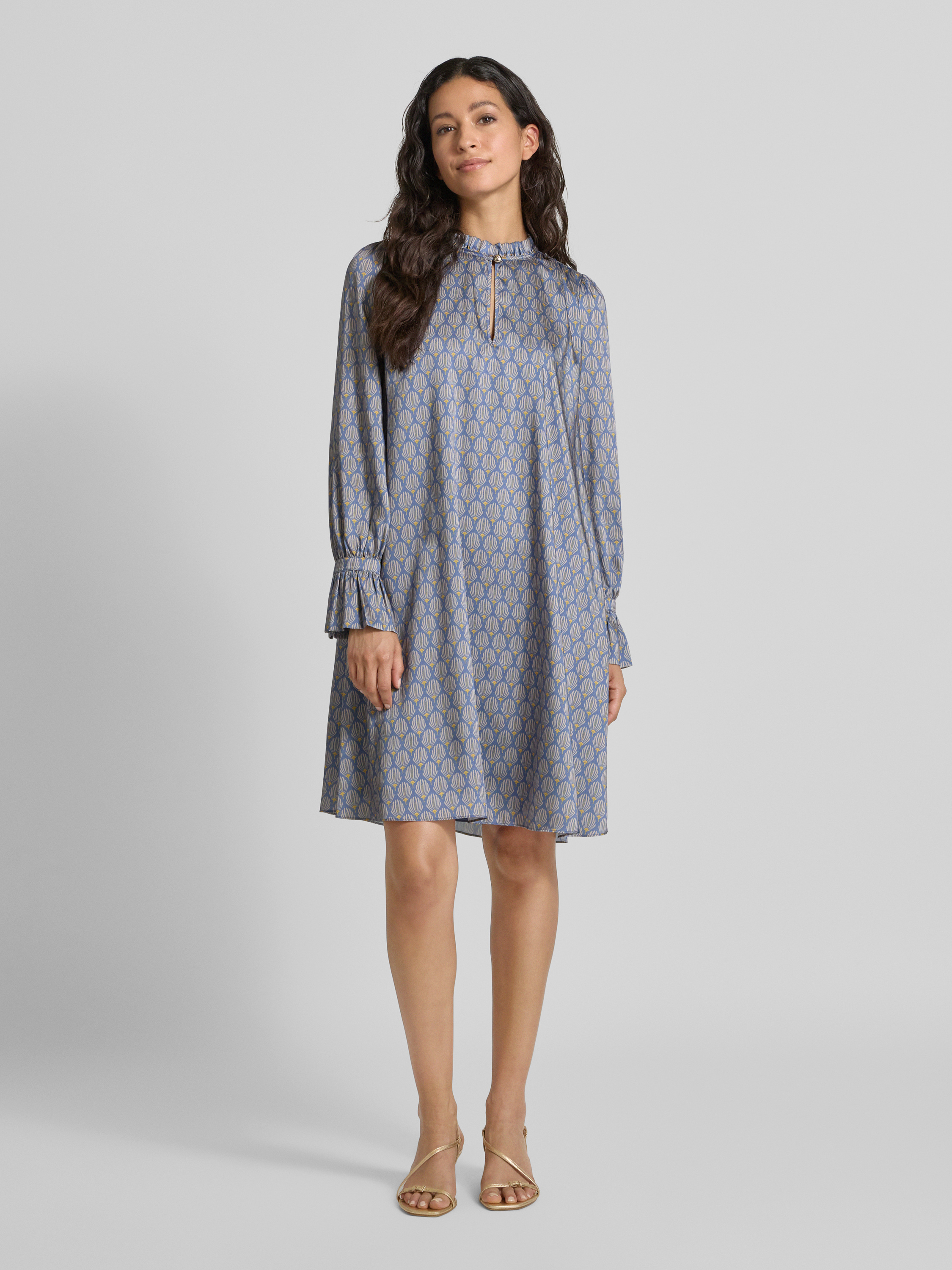 Das knielange Kleid von JOOP! verbindet einen elastischen Material-Mix mit einer weiten Passform und bietet durch den Schlüssellochausschnitt eine interessante Note. Die langen Ärmel enden in gerafften Säumen, während der Stehkragen mit Raffungen für eine elegante Silhouette sorgt. Das Allover-Motiv-Print rundet das Design harmonisch ab und schafft einen stilvollen Look.