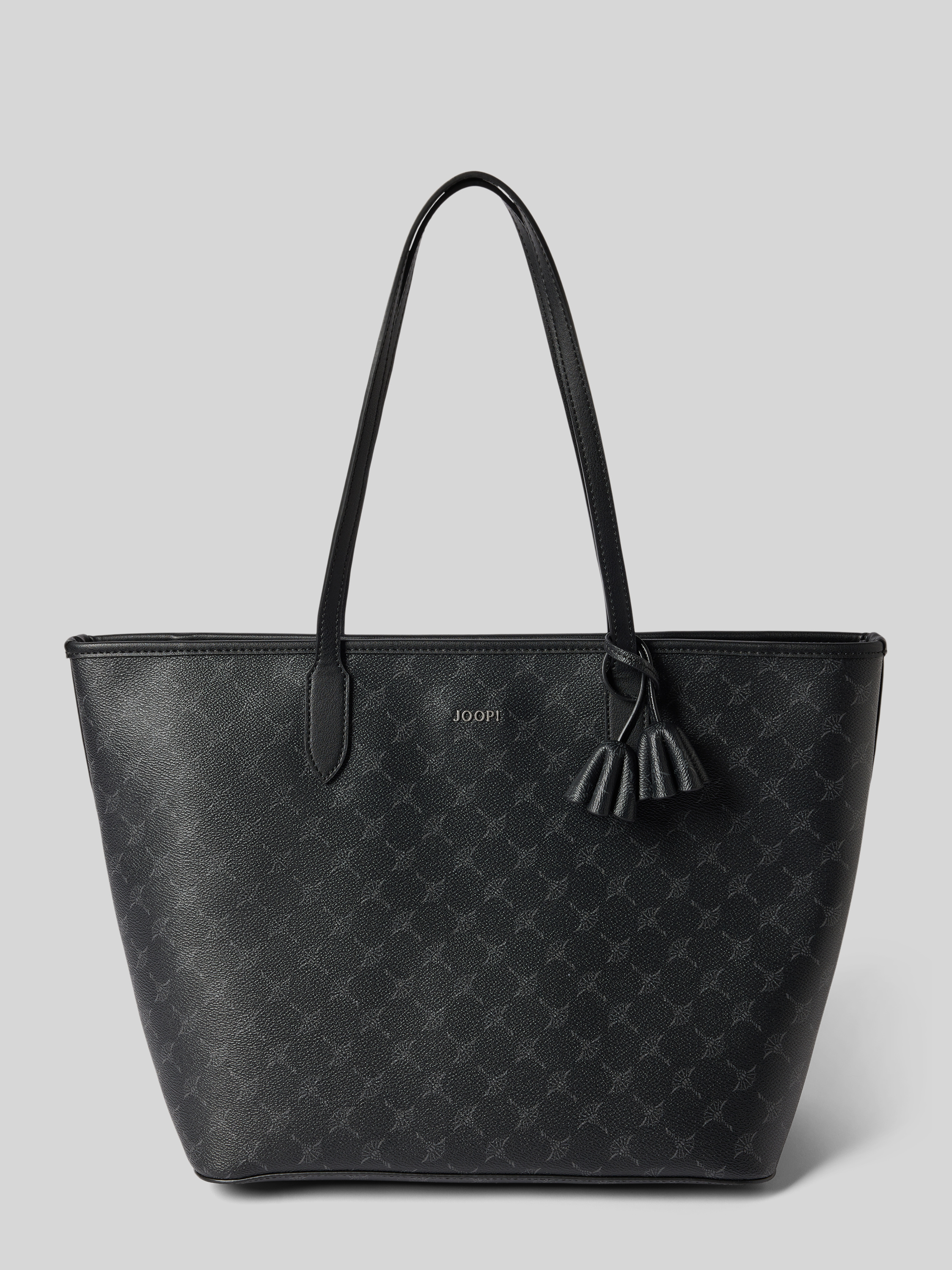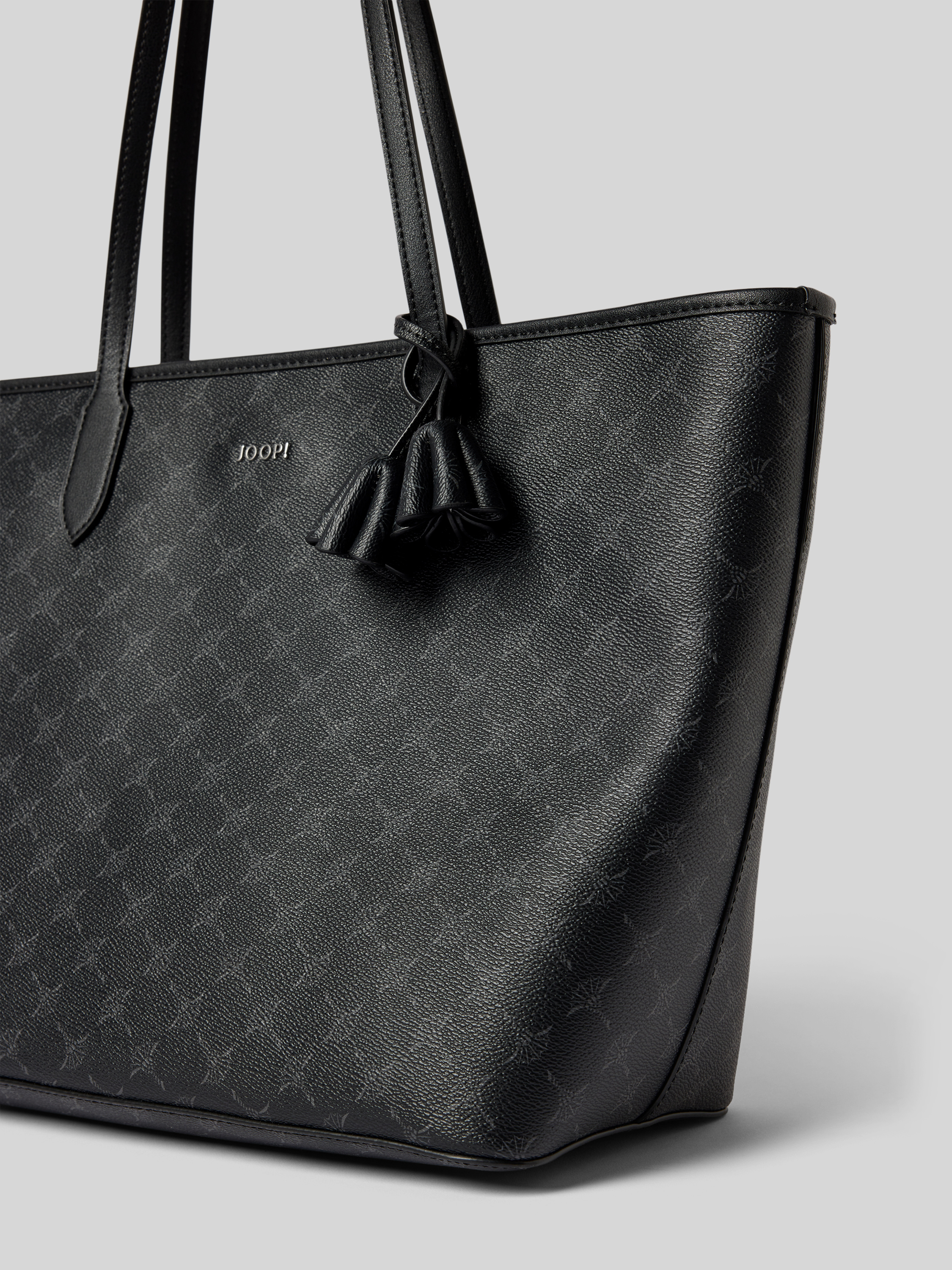 Der Damen Shopper von JOOP! im Modell 'lara' präsentiert sich mit einem Logo-Muster, das dem Alltagsbegleiter eine charakteristische Optik verleiht. Durch das großzügige Hauptfach und die praktischen Tragehenkel bleibt ausreichend Platz für persönliche Gegenstände. Mit Label-Applikation und Schulterriemen lässt sich das Accessoire unkompliziert kombinieren.