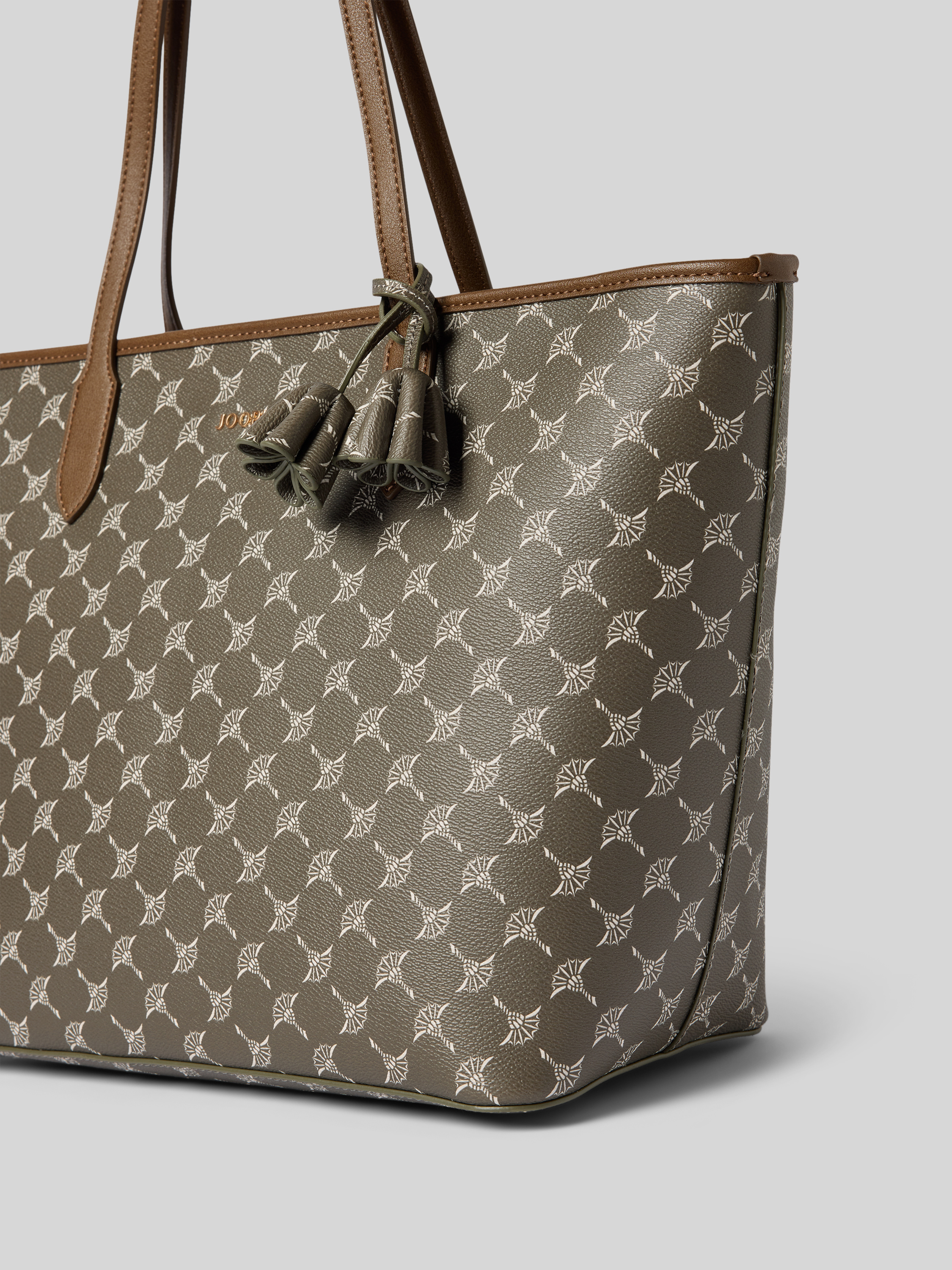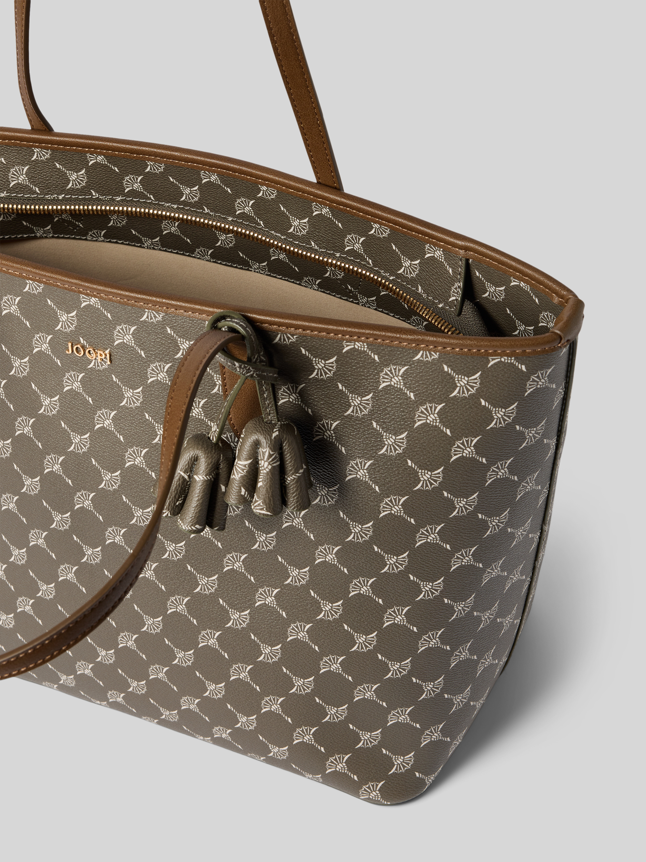 Der Damen Shopper von JOOP! im Modell 'lara' präsentiert sich mit einem Logo-Muster, das dem Alltagsbegleiter eine charakteristische Optik verleiht. Durch das großzügige Hauptfach und die praktischen Tragehenkel bleibt ausreichend Platz für persönliche Gegenstände. Mit Label-Applikation und Schulterriemen lässt sich das Accessoire unkompliziert kombinieren.