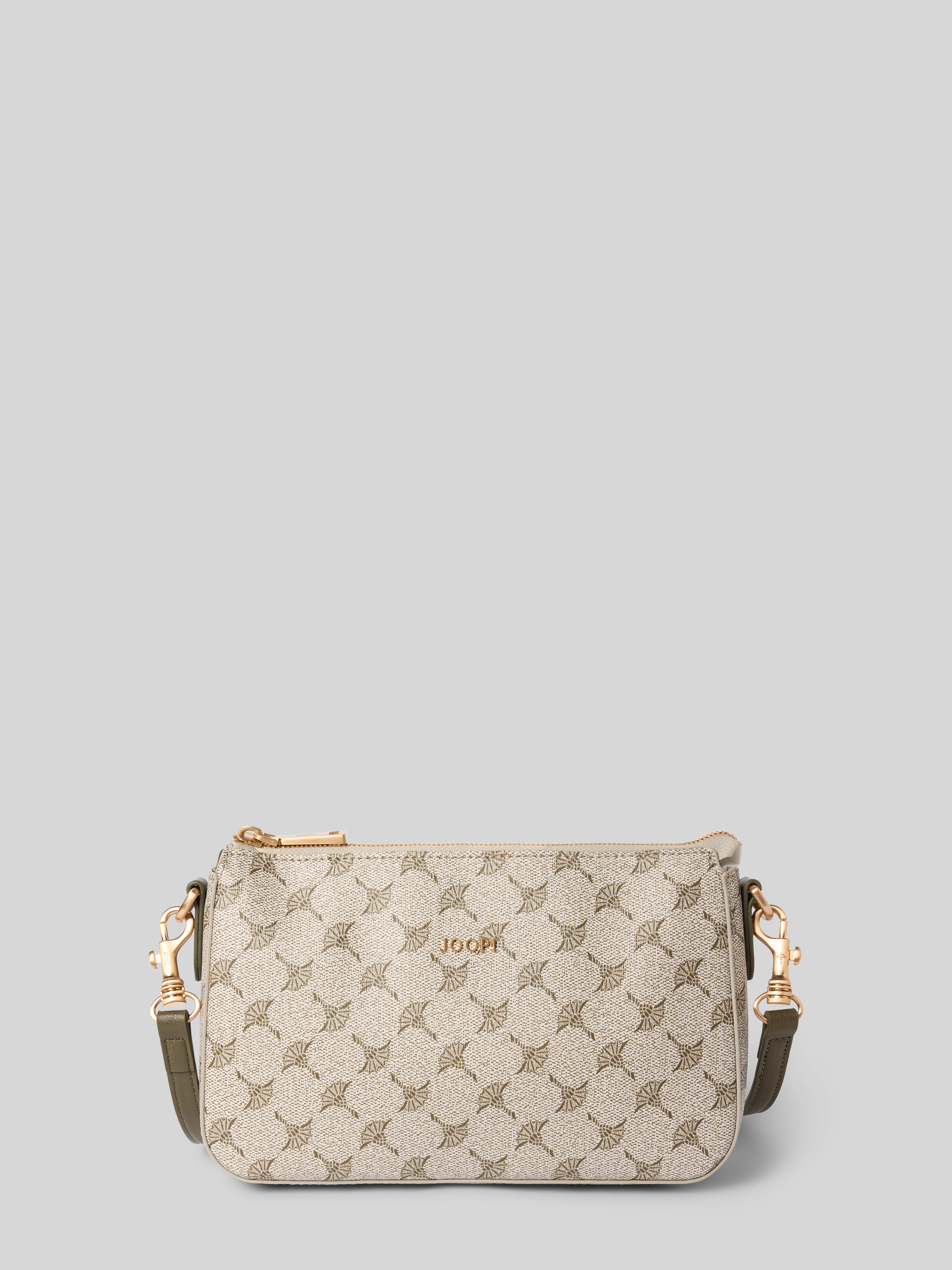 Die Schultertasche Jasmina von JOOP! fällt durch den floralen Allover-Print und die dezente Logo-Applikation auf. Dank des abnehmbaren Schulterriemens lässt sich der Look flexibel variieren, während das geräumige Hauptfach für Übersicht und Ordnung im Alltag sorgt.