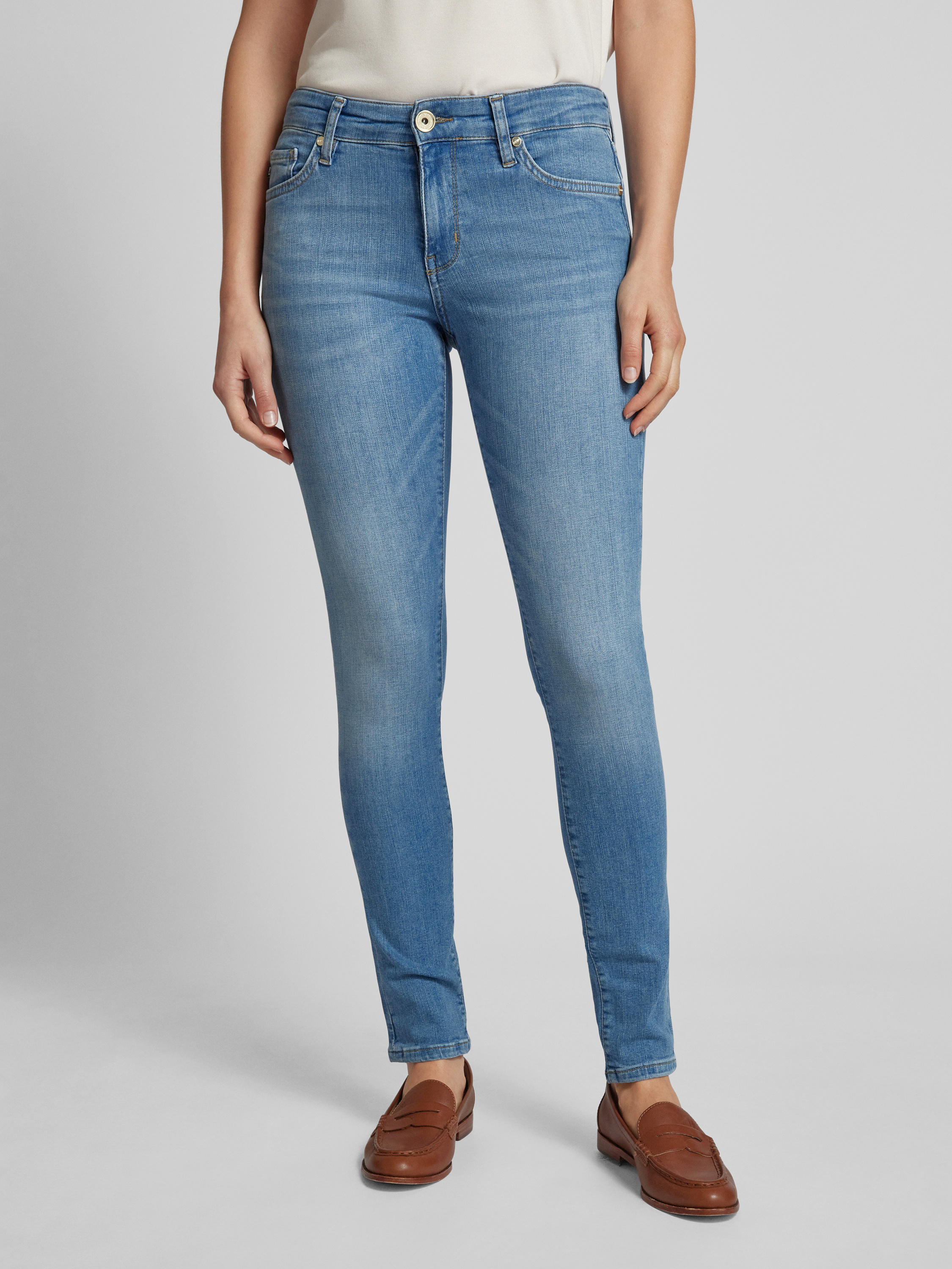 Die Damenjeans von JOOP! im Skinny Fit zeigt sich figurbetont und schmiegt sich angenehm an das Bein. Das klassische 5-Pocket-Design sorgt für einen zeitlosen Look, während dezente Label-Details die Hose unaufdringlich abrunden. So lässt sich vielseitig kombinieren.