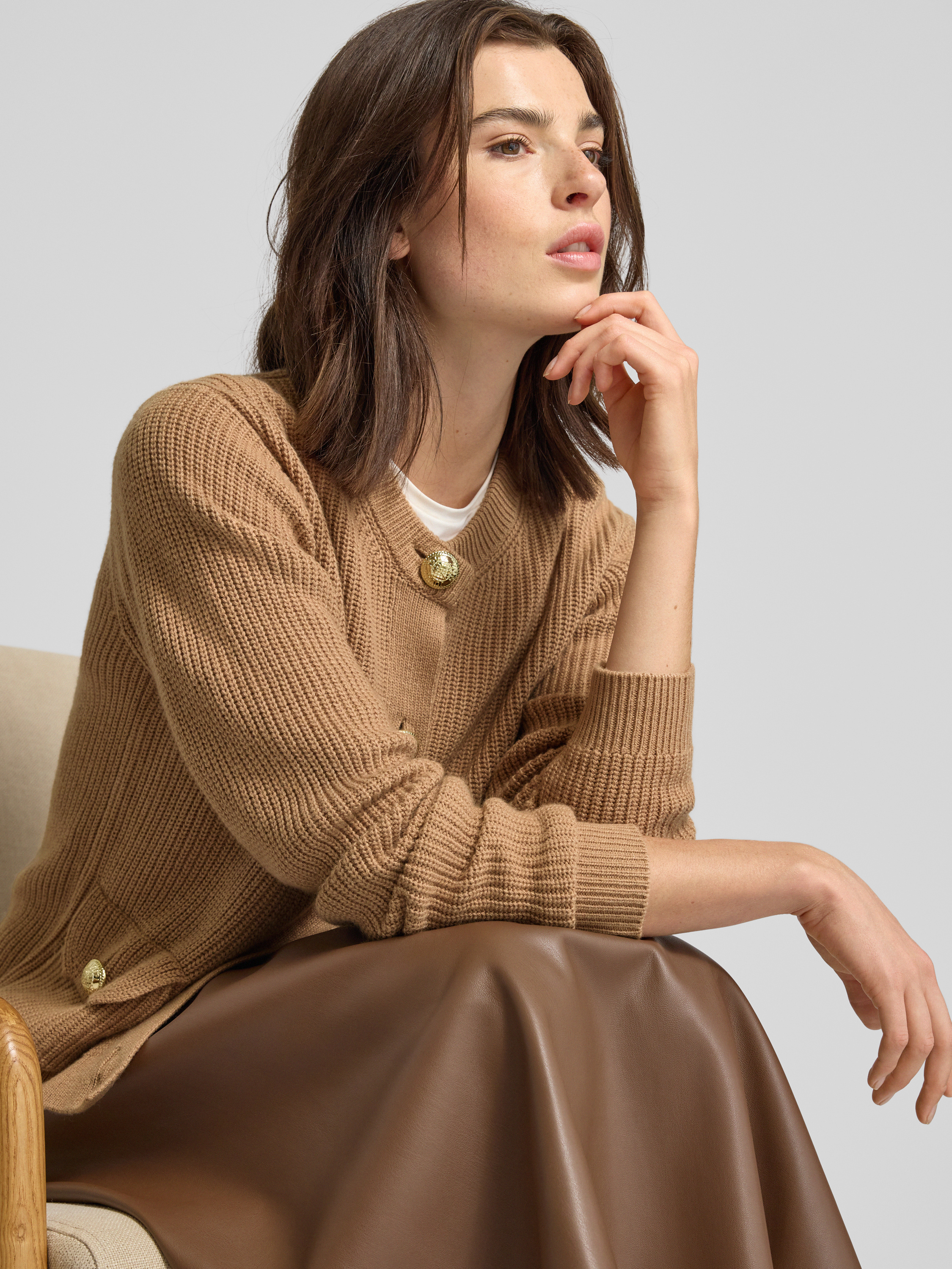 JOOP!Strickjacke mit Woll-Kaschmir-Anteil Modell 'Kimberly' in camel