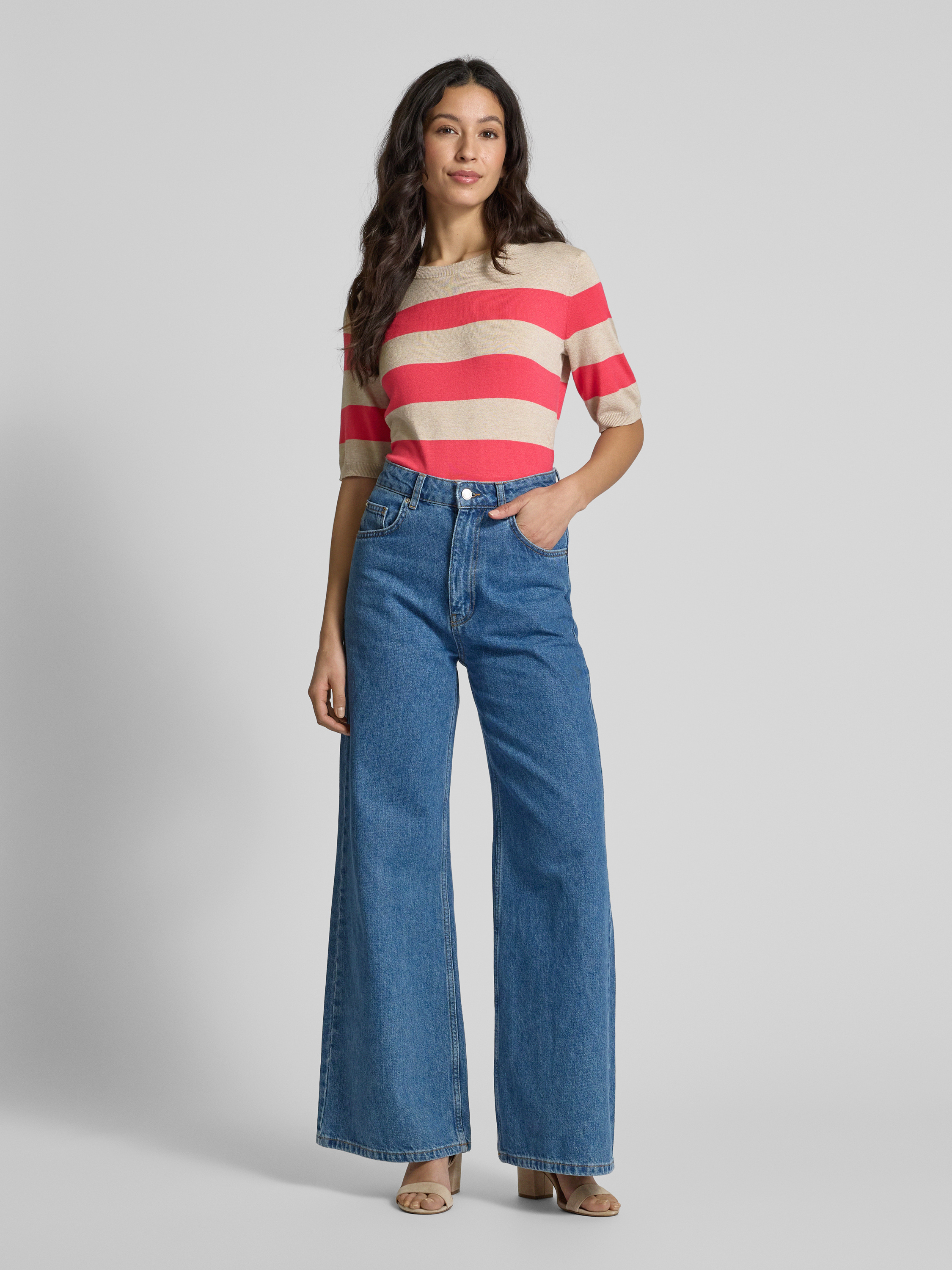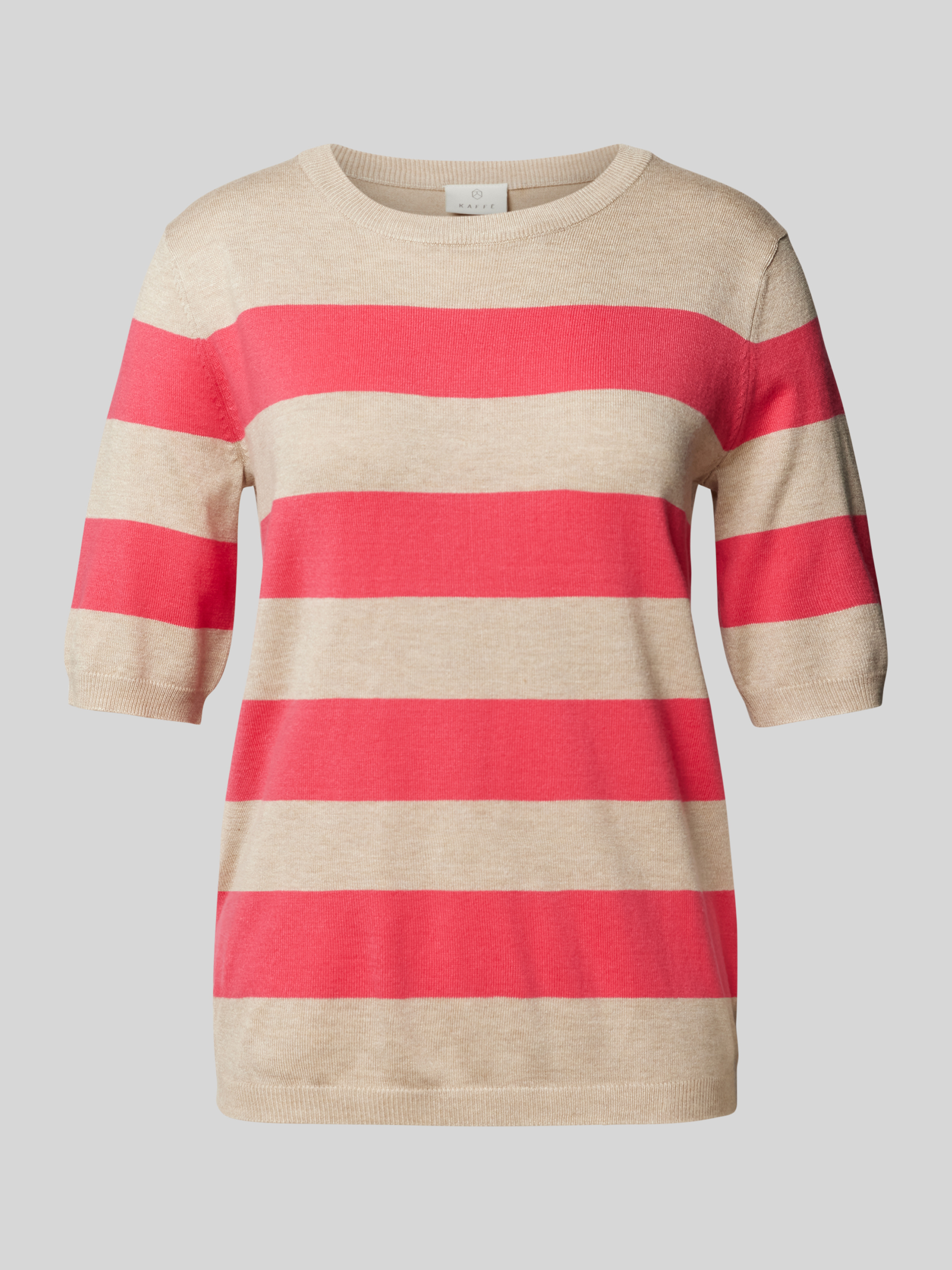 Der Strickpullover 'Mala' von Kaffe, gefertigt aus einem weichen Viskose-Mix, eignet sich hervorragend für angenehme Tragemomente. Der gerade Schnitt und der 1/2-Arm sorgen für eine bequeme Passform, während der Rundhalsausschnitt dem Design eine klassische Note verleiht. Ideal für vielseitige Kombinationen.