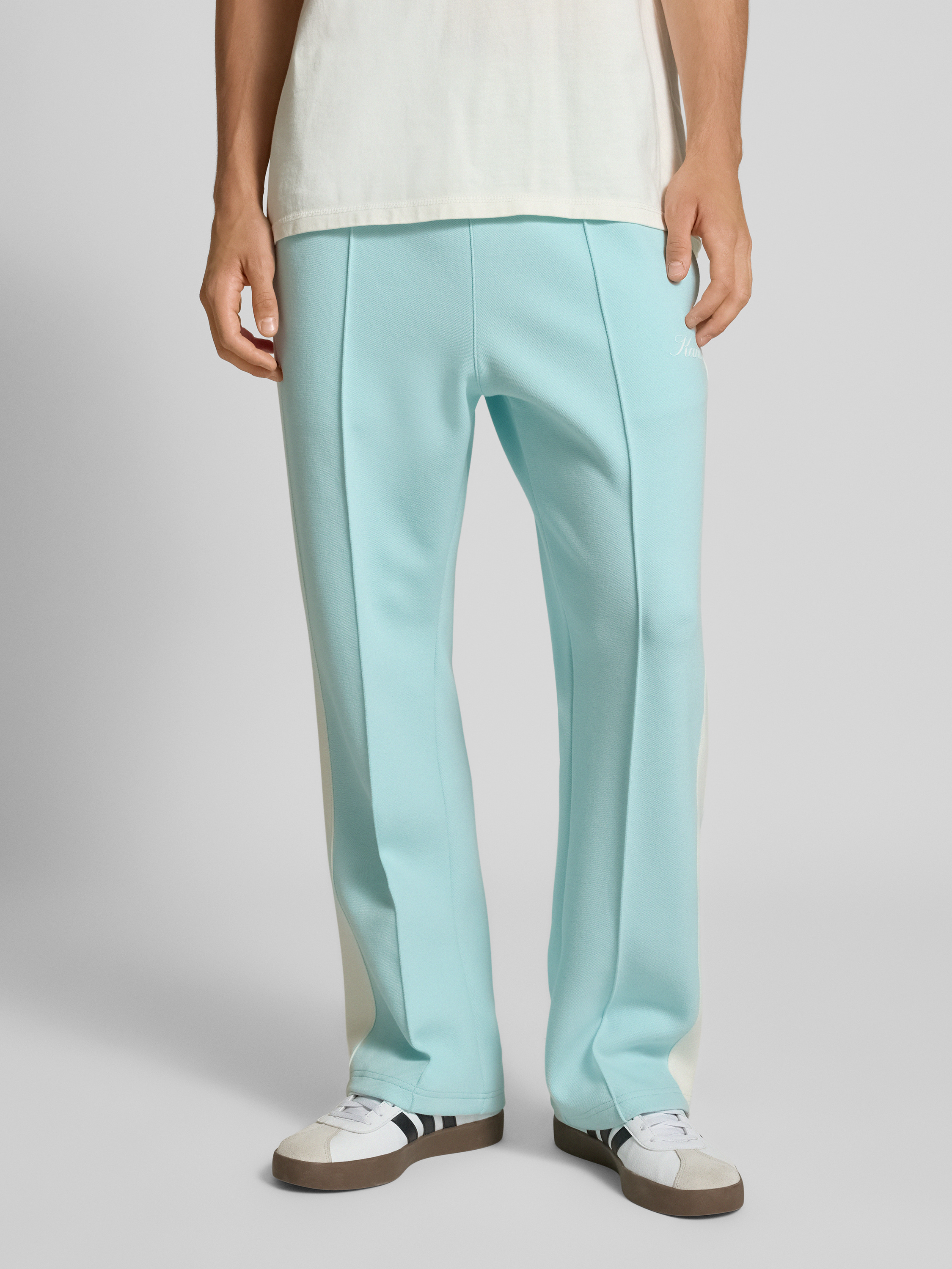 Die Flared Sweatpants von KARL KANI überzeugen durch ihren bequemen Material-Mix mit Baumwoll-Anteil. Der ausgestellte Schnitt sorgt für eine moderne Silhouette, während der elastische Bund und die praktischen Eingrifftaschen zusätzlichen Komfort bieten. Ein dezenter Label-Print rundet das Design stilvoll ab.