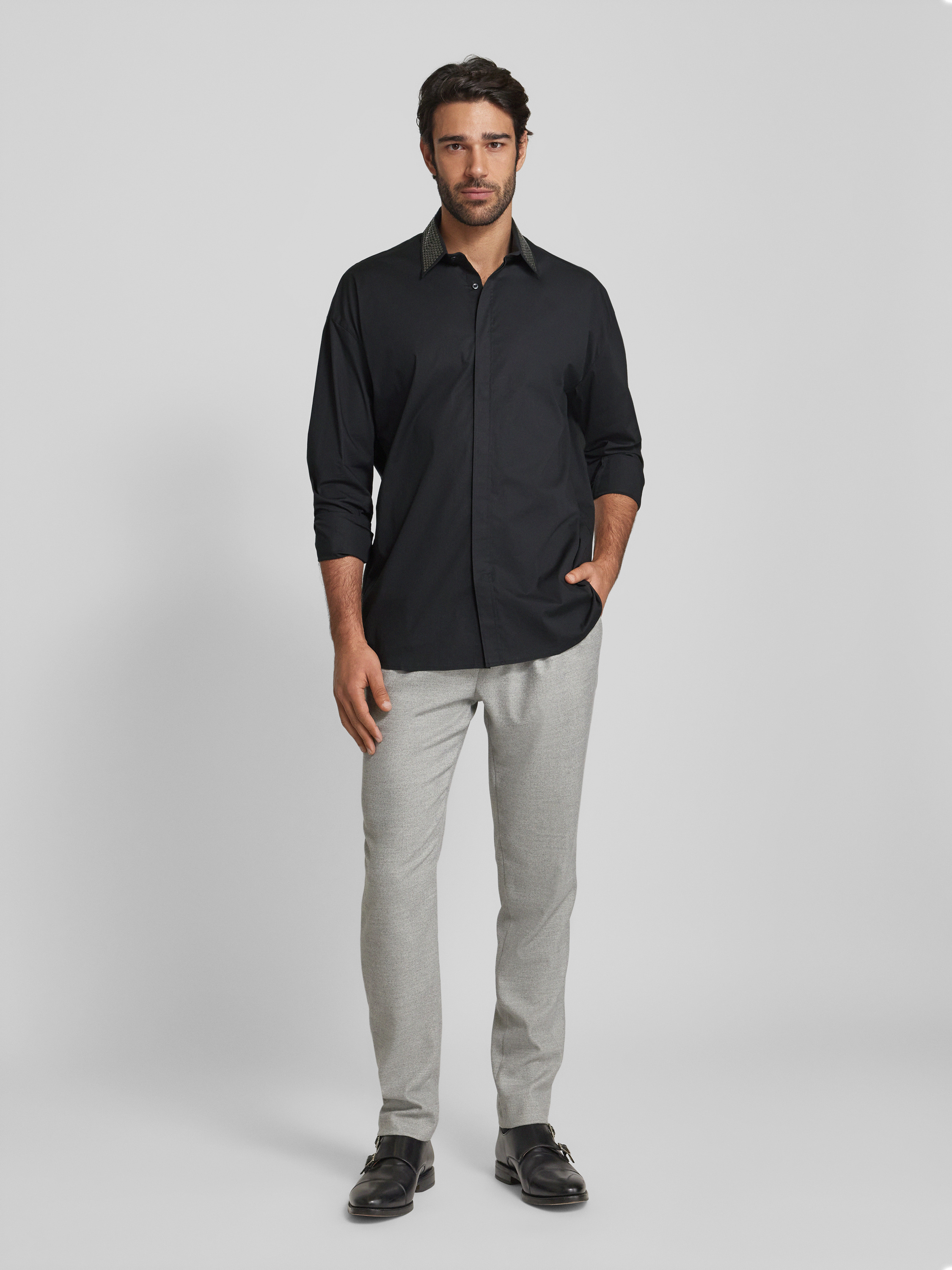 Karl LagerfeldRegular Fit Freizeithemd mit Kentkragen in black