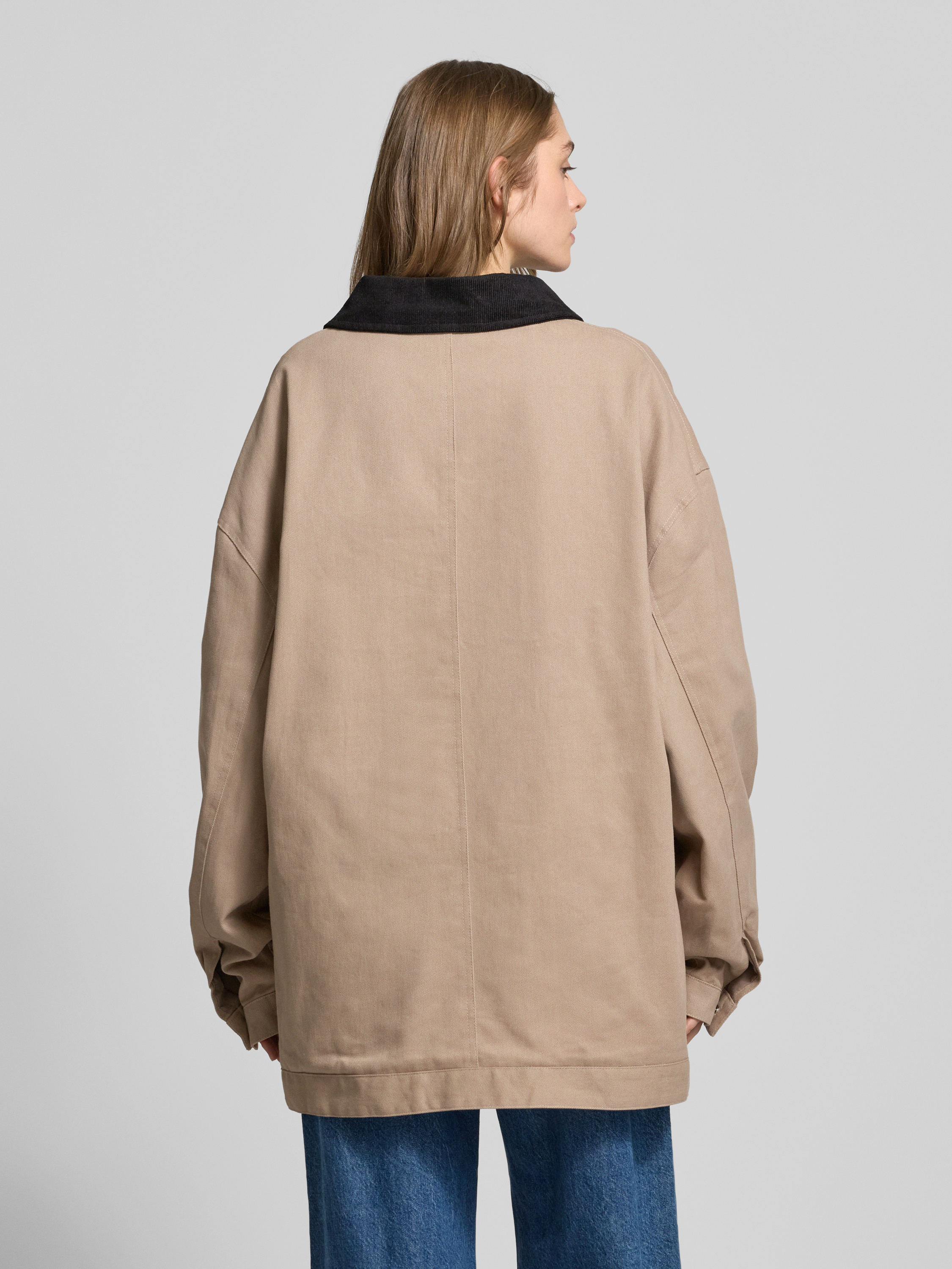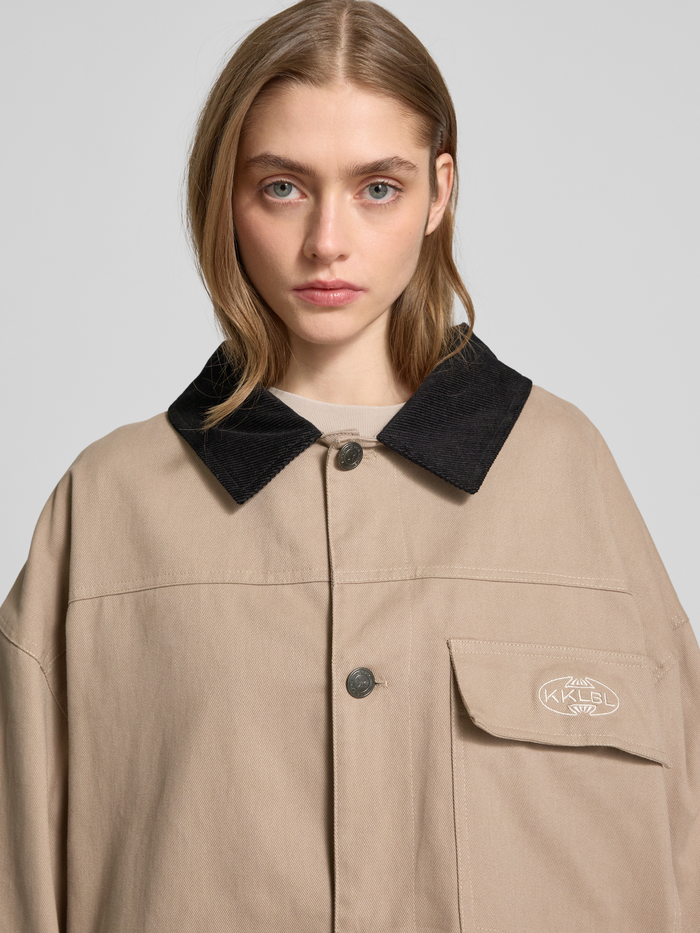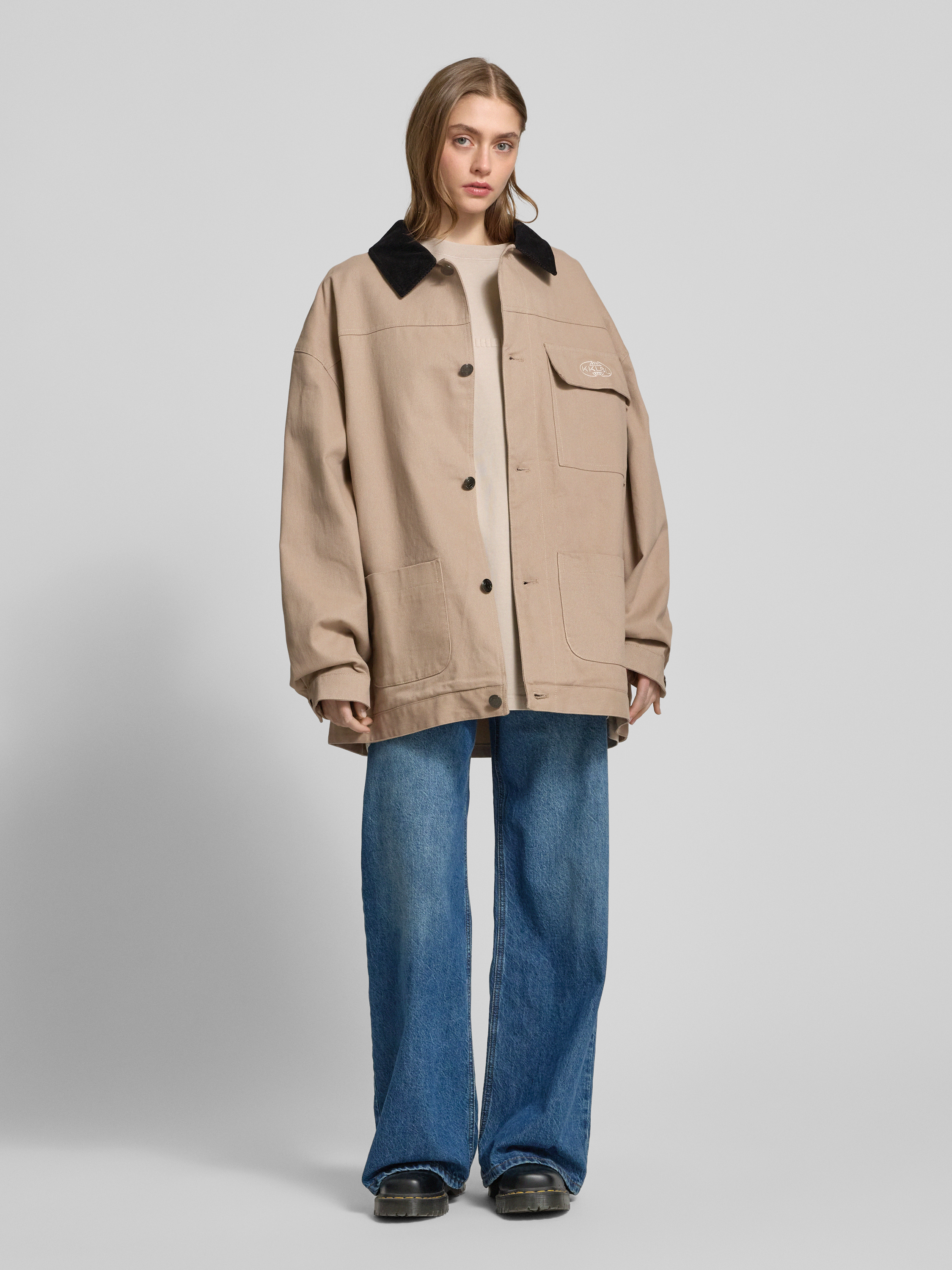 Die Jacke von Karo Kauer, gefertigt aus reiner Baumwolle, zeichnet sich durch ihren geraden Schnitt und den klassischen Umlegekragen aus. Mit durchgehender Knopfleiste und Label-Stitching wird eine dezente Eleganz erreicht. Praktische Brustpattentasche und aufgesetzte Taschen bieten zusätzlichen Komfort.