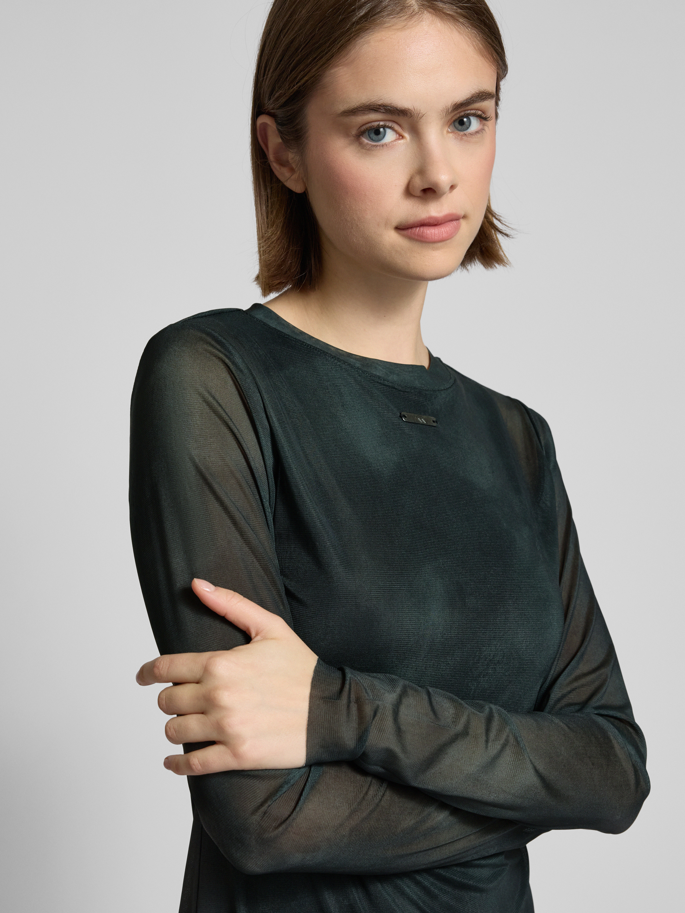 Das Minikleid von Karo Kauer verbindet einen körpernahen Schnitt mit einem Rundhalsausschnitt für einen eleganten Auftritt. Der Material-Mix mit Stretch-Anteil sorgt für angenehmen Tragekomfort. Durch das semitransparente Design und die dezente Label-Applikation entsteht ein moderner und stilvoller Look.
