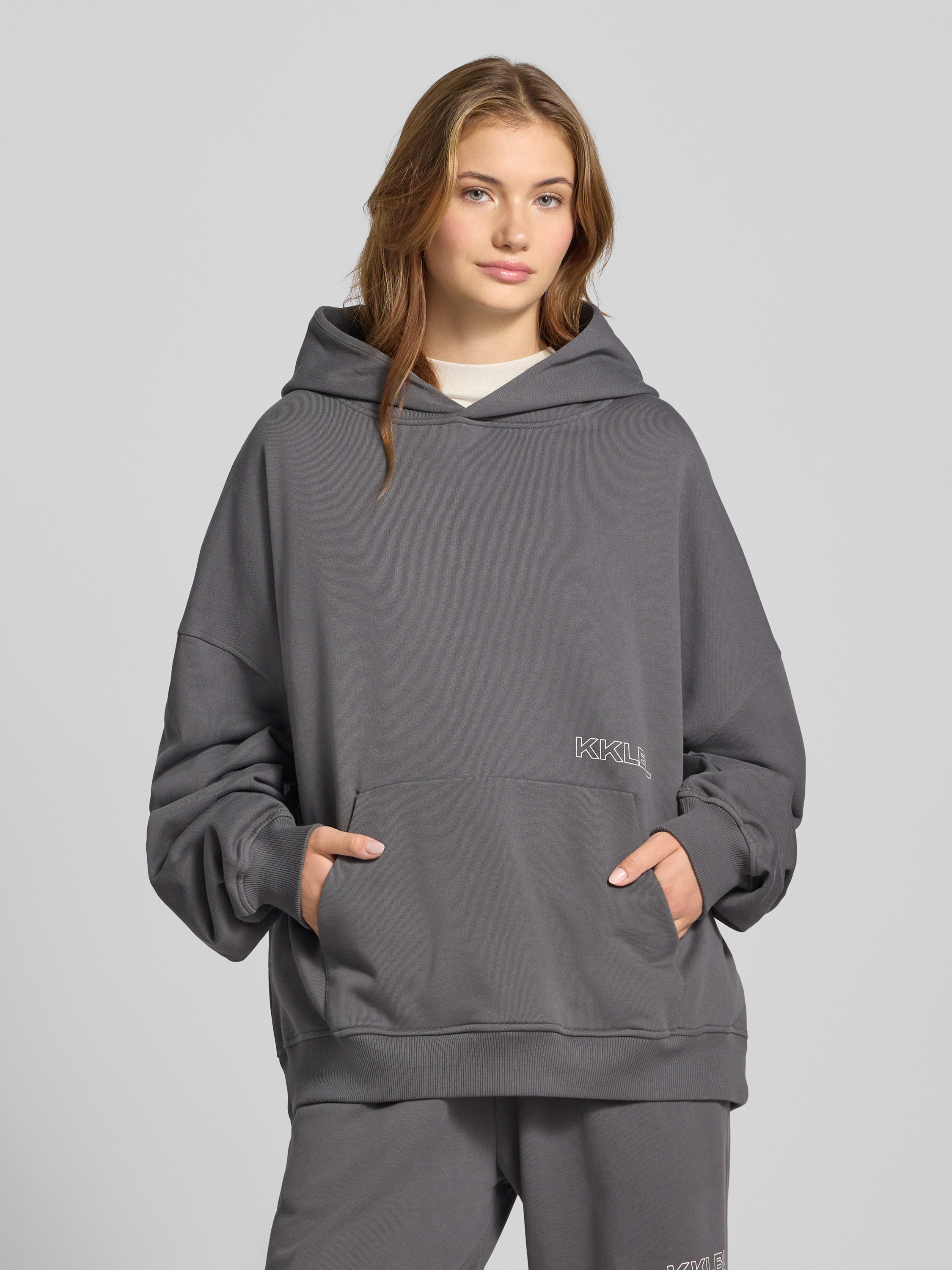 Der Karo Kauer Hoodie aus reiner Baumwolle zeichnet sich durch einen entspannten Oversized-Schnitt aus, der eine bequeme Passform gewährleistet. Die Kapuze und die überschnittenen Schultern verleihen dem Modell eine lässige Note. Känguru-Taschen und der Label-Print runden das Design funktional ab.