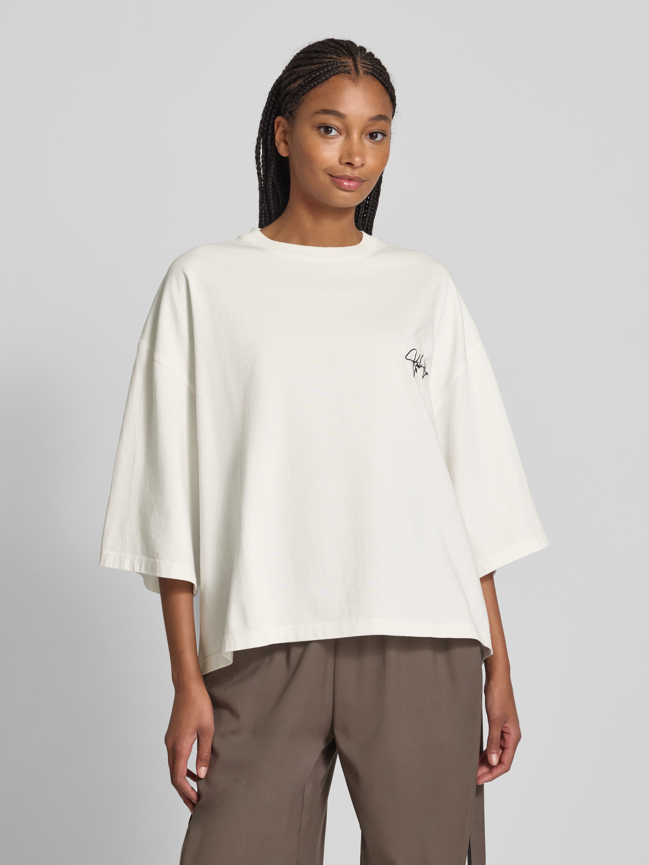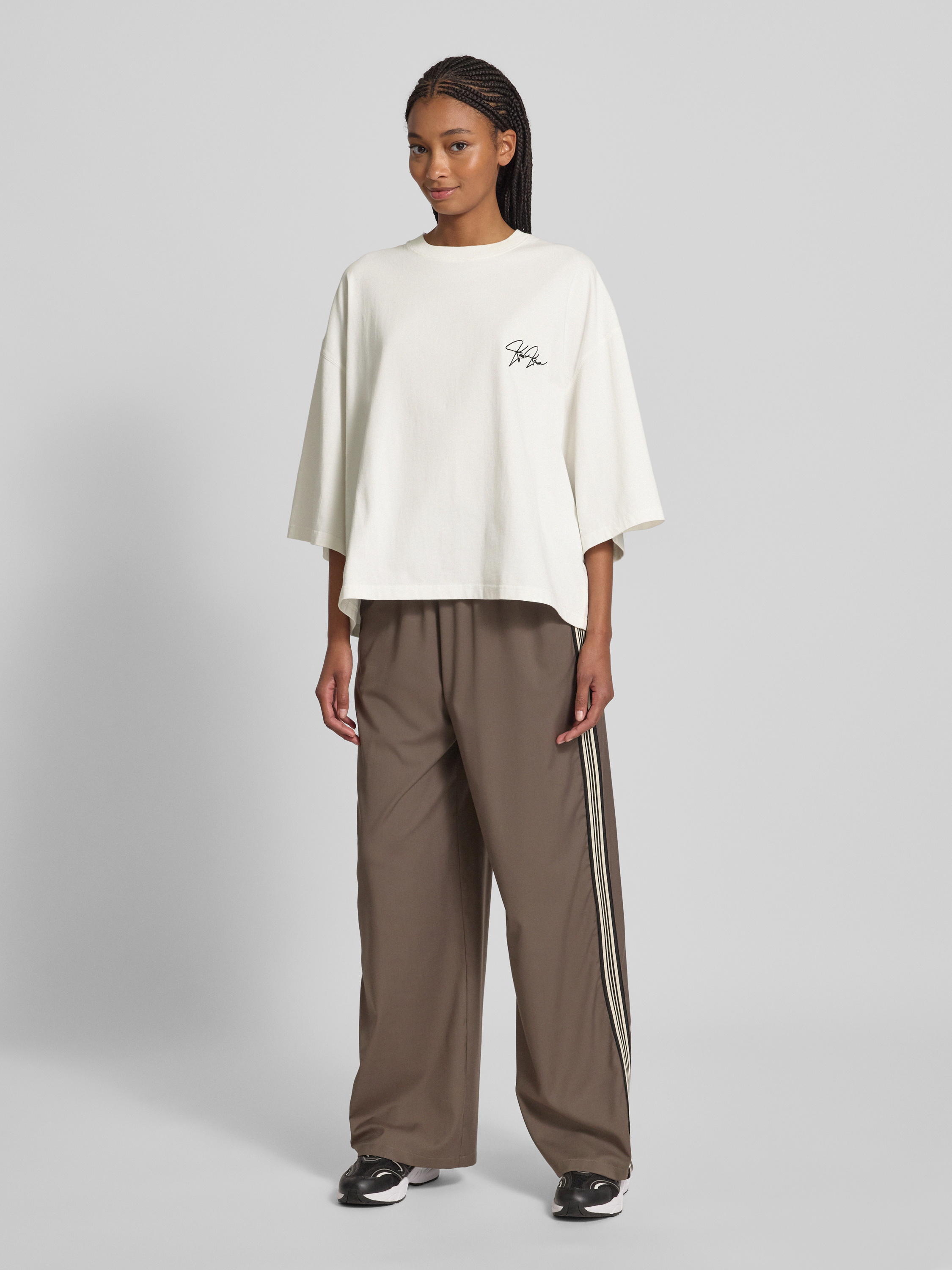 Karo KauerOversized T-Shirt mit Label-Stitching in weiss