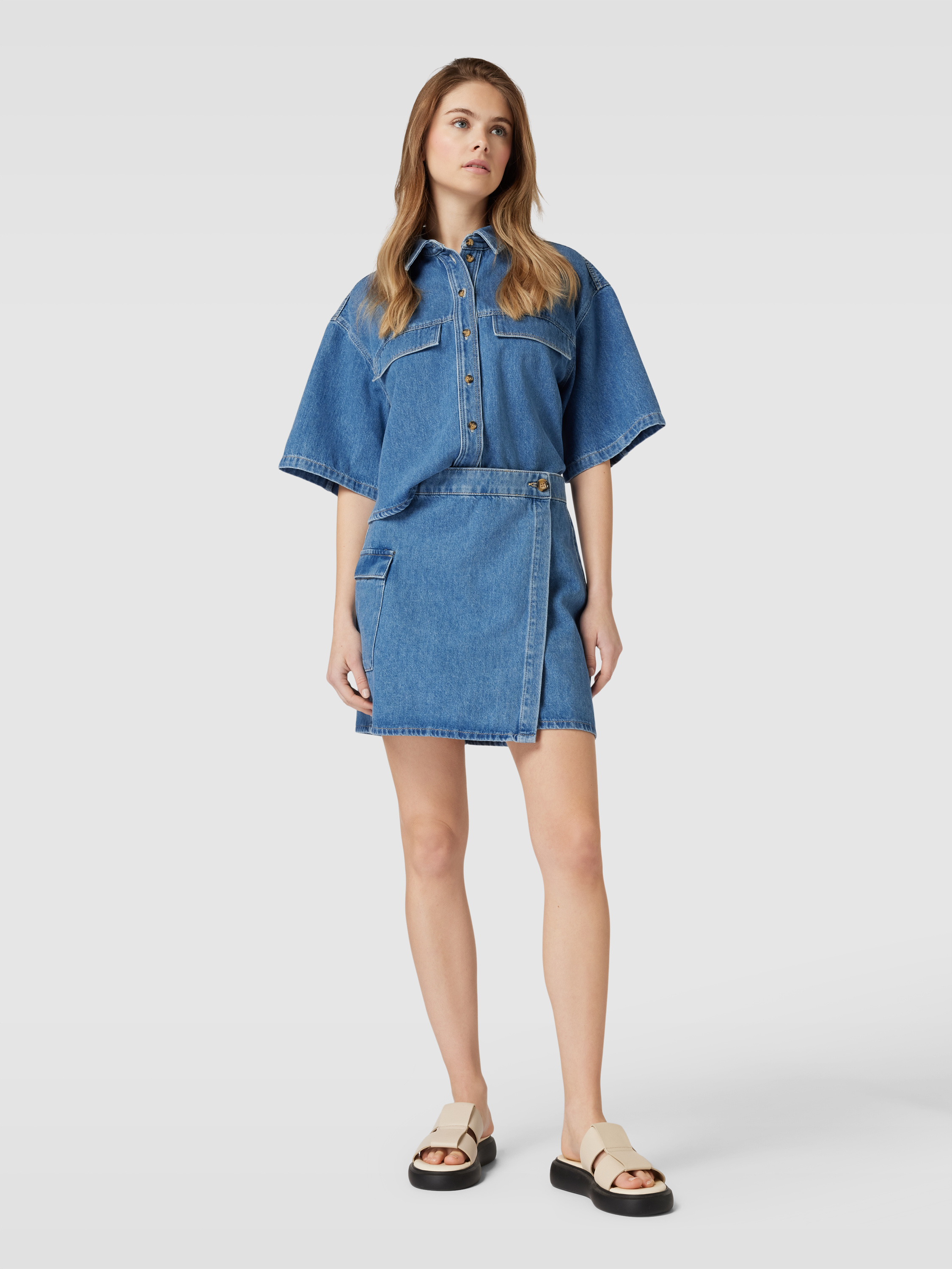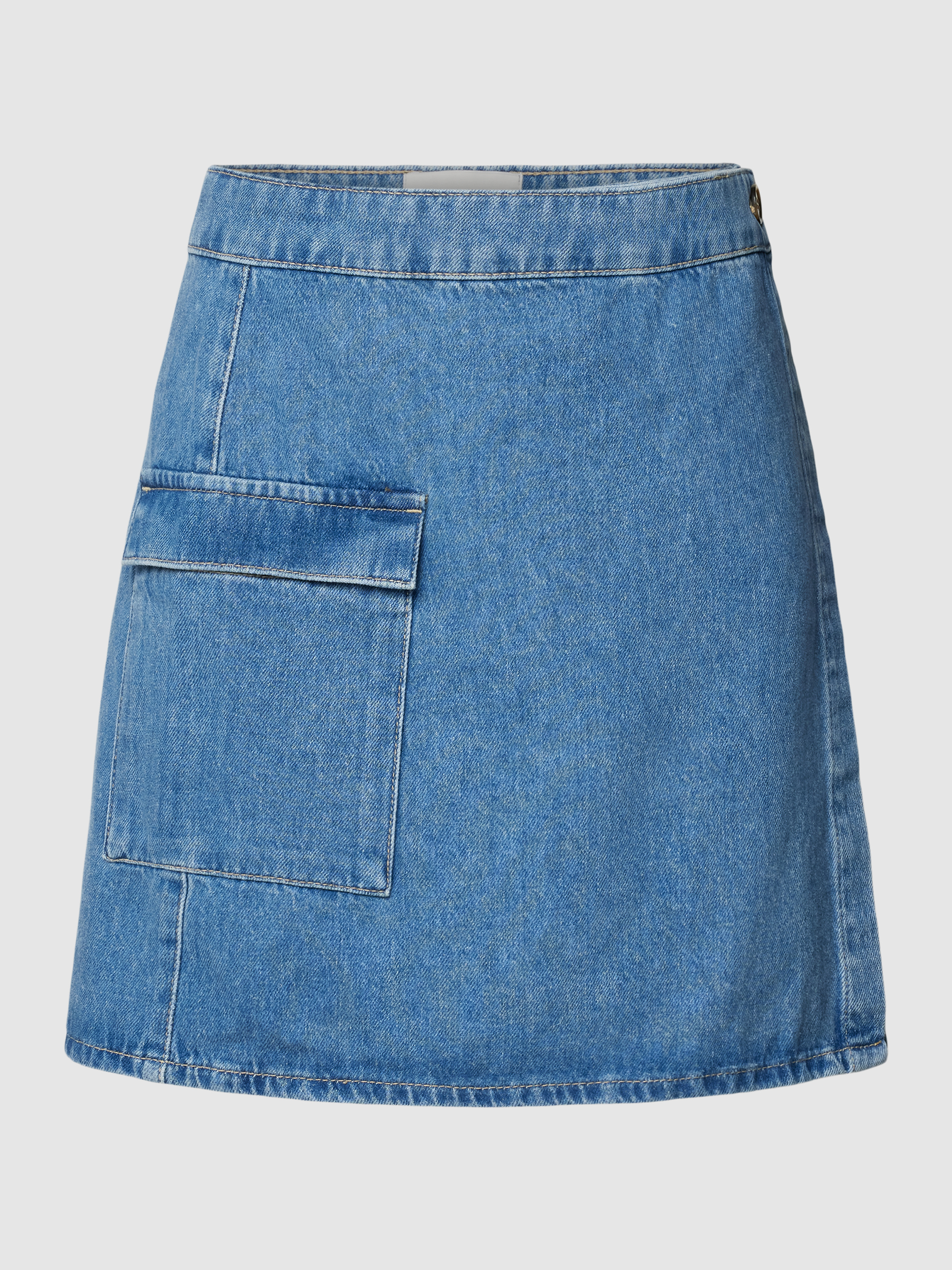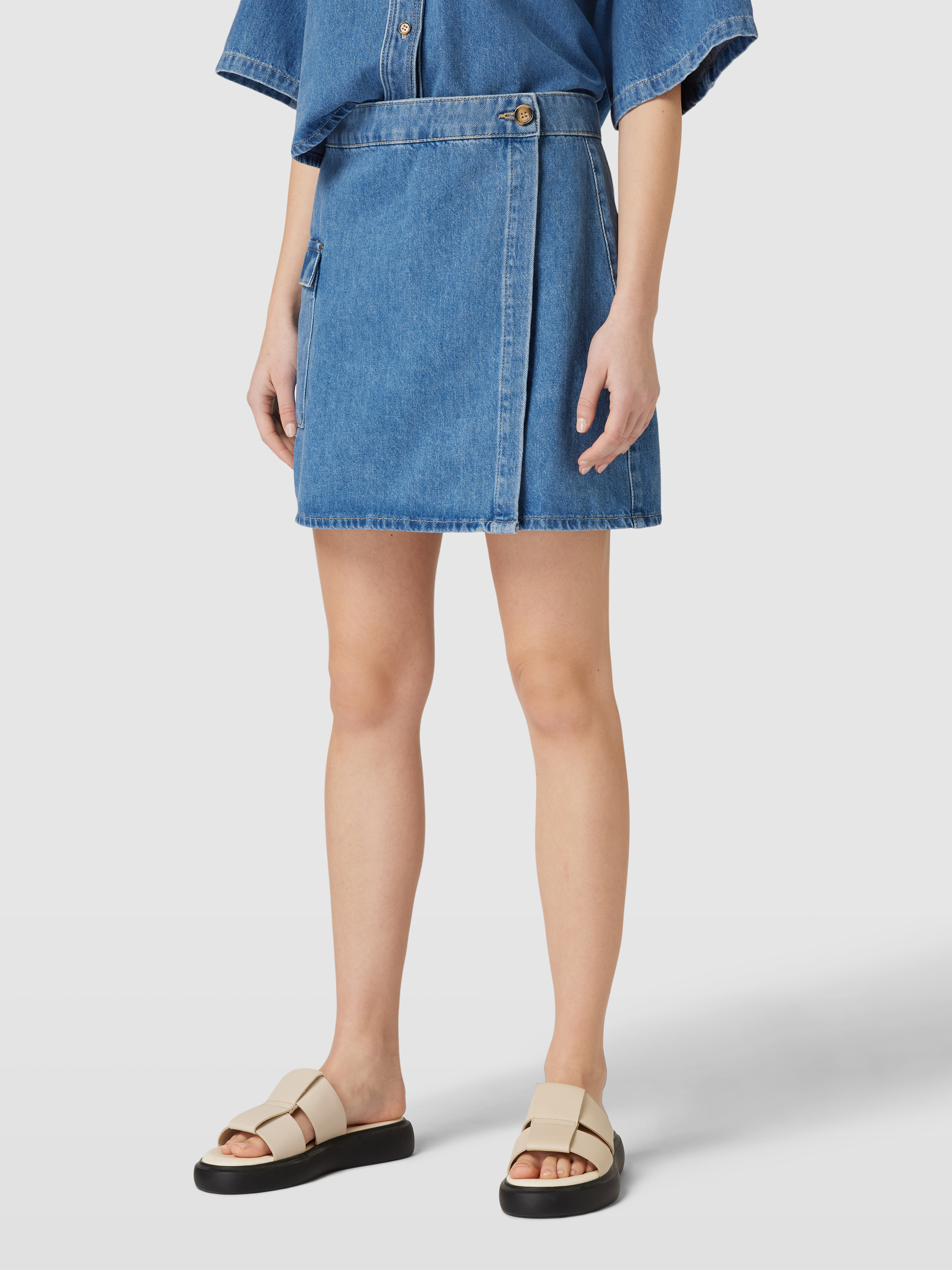 Der Jeansrock von Katharina Damm X P&C* aus reiner Baumwolle überzeugt durch seinen leicht ausgestellten Schnitt und die moderne Wickel-Optik. Als Minirock gestaltet, bietet er eine ideale Mischung aus Stil und Komfort. Praktische Eingrifftaschen ergänzen das Design funktional und modisch.