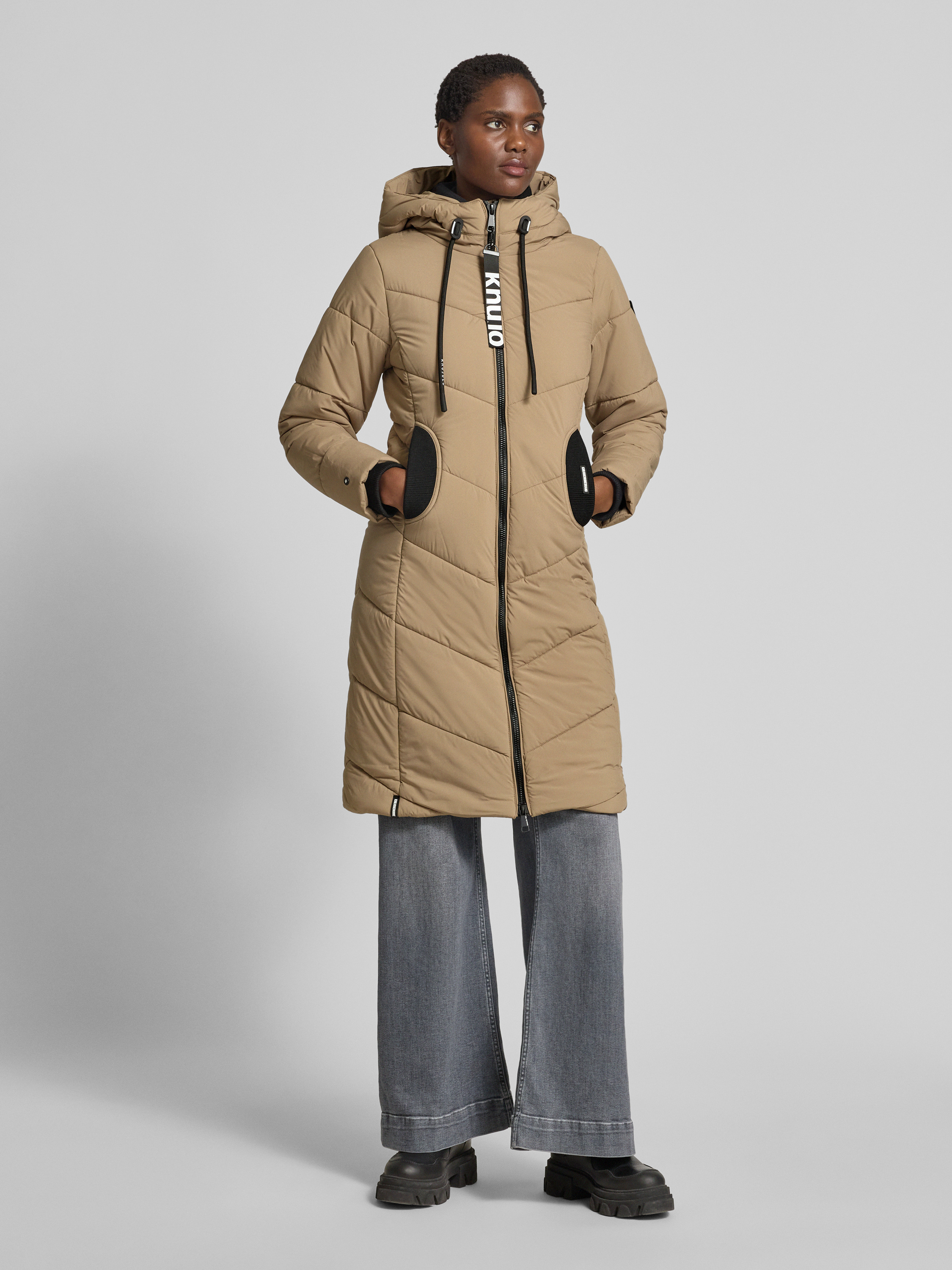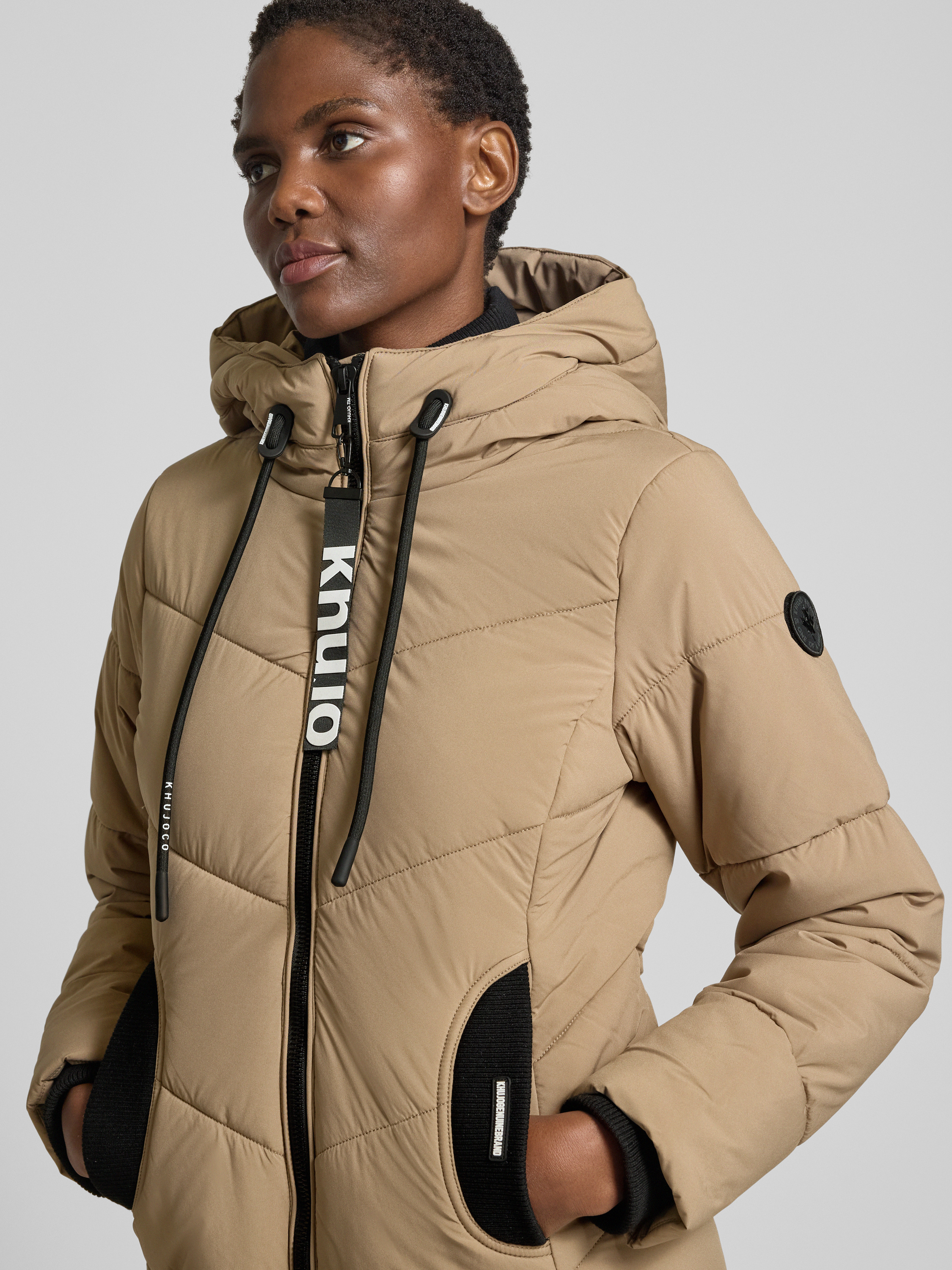 Der Damen Steppmantel von khujo Modell 'ARIBAY' schmiegt sich durch seine körpernahe Passform angenehm an und sorgt für ein komfortables Tragegefühl. Die Kapuze mit Tunnelzug hält an kühlen Tagen angenehm warm. Eingrifftaschen runden das funktionale Design praktisch ab.